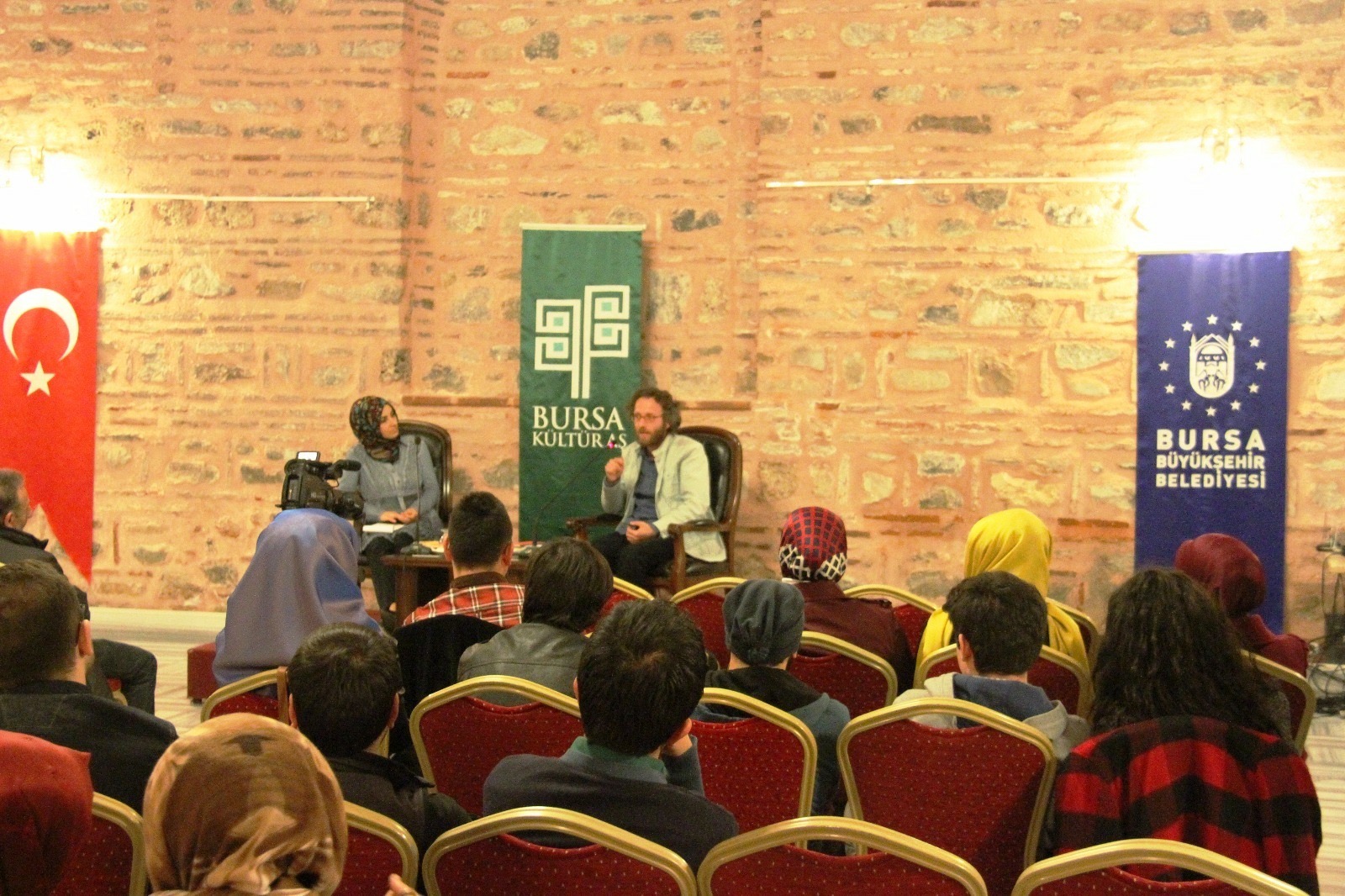 Bursa’nın kendisi için özel bir yeri bulunduğunu ifade eden Yılmaz, çok küçük yaşlardan beri sebebini bilmediği bir şekilde Bursa’ya muhabbet ve ilgi duyduğunu söyledi. Sezai Karakoç’un Kudüs’e yönelik tanımına göndermede bulunan Yılmaz, Bursa için “Gökte yapılmış yere indirilmiş bir şehir benzetmesi” yaptı. Kendisinden bahsetmeyi ve şiirleri üzerine konuşmayı pek sevmediğini dile getiren Yılmaz, kendisini kısaca son kitabına verdiği isim olan ‘’Hülya Adamı’’ olarak nitelendirdiğini ifade etti. Rumen yazar, filozof Emil M. Cioran’ın “Gerçek bende nefes darlığı yapıyor” sözüne atıfta bulunan genç şair, kendisinin de aynen bu durumda olduğunu söyledi. Yılmaz, “Bir rüya adamıyım, imgeleri olan, düşünceleri olmayan. Dünyaya okunması gereken bir metin olarak bakan ve başka dünyalarda yaşayan biriyim. Voltaire gibi olmadığı yerde mutlu olan öyle garip bir adamım” diye konuştu. “Şiir benim namusumdur, haysiyetimdir” diyen Yılmaz, bazı şairler gibi sık aralıklarla şiir yazamadığını, uzun metinler yazmayı beceremediğini, parçalı metinleri daha çok sevdiğini, şiirlerini yazarken mekândan hareket etmeyi benimsediğini ifade etti.