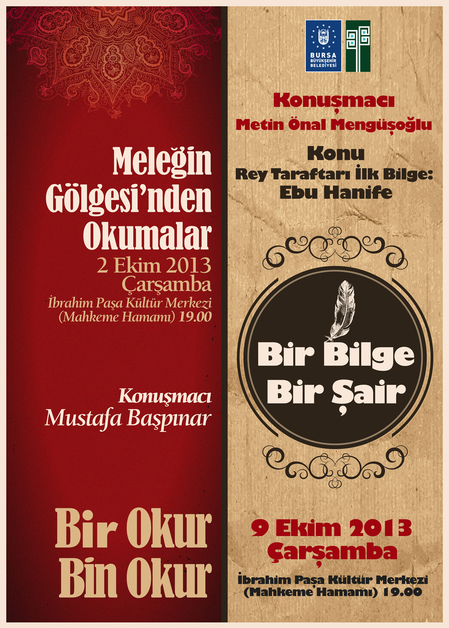 Hece Taşları ve Edebiyat Akşamları programlarıyla ayda iki kez kültürel etkinliklere ev sahipliği yapan İbrahim Paşa Kültür Merkezi, bu yıl her hafta bir etkinliğin mekânı olacak. Ekim ayında başlayacak olan yeni sezonda ‘Edebiyat Akşamları’ devam ederken öte yandan da ‘Bir Okur Bin Okur (Güncel Gece)’, ‘Türkiye’de İslamcılık Tartışmaları’, ‘Bir Bilge Bir Şair’ adlı yeni programlar başlayacak. Sanat ve edebiyat ağırlıklı programlar ile fikir ağırlıklı etkinliklerin merkezi haline gelecek olan İbrahim Paşa Kültür Merkezi, Bursa’nın yanı sıra Türkiye gündemine dair sözü olanların da buluşma noktası olacak.
