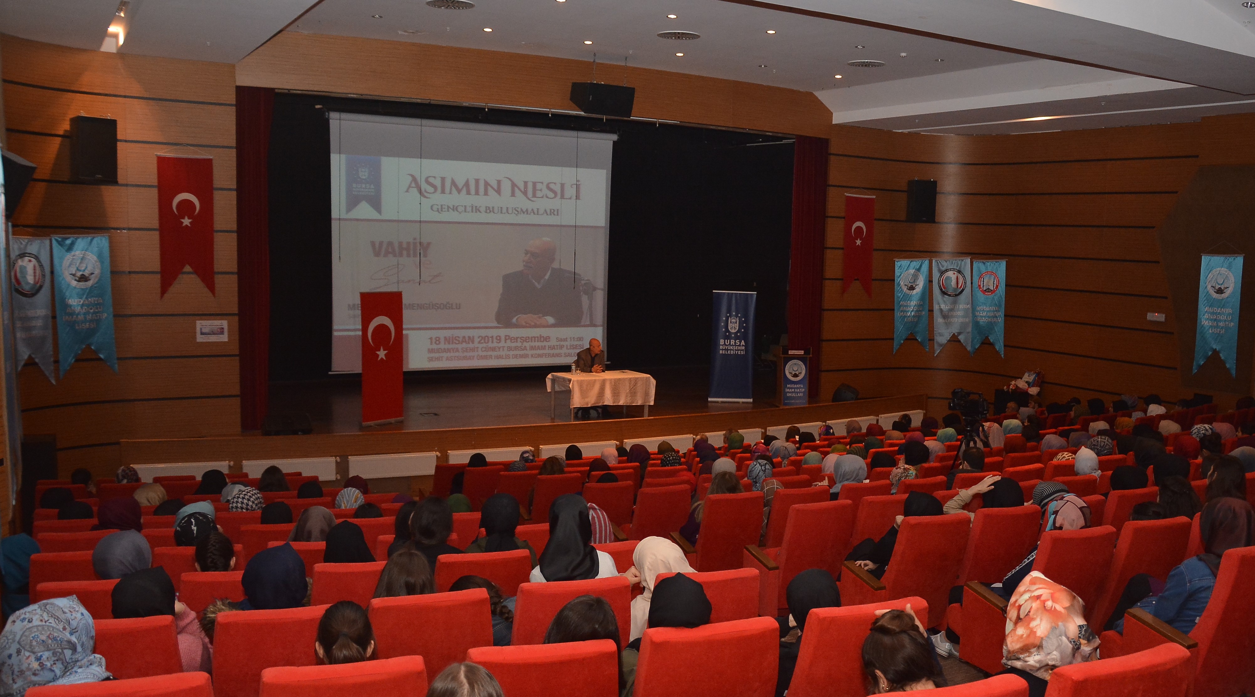 Bursa Büyükşehir Belediyesi Gençlik ve Spor Hizmetleri Şube Müdürlüğü tarafından, her ay periyodik olarak düzenlenen ve dördüncüsü yapılan ‘Asım’ın Nesli Gençlik Buluşmaları’nın Nisan ayı konuğu Metin Önal Mengüşoğlu oldu. Mudanya Şehit Cüneyt Bursa İmam Hatip Lisesi, Şehit Astsubay Ömer Halisdemir Konferans Salonu’nda yapılan etkinliğe öğrenciler büyük ilgi gösterdi. “Mucize insanın uçması değil, kelebeğin uçmasıdır” diyen Mengüşoğlu, en büyük sanatkarın Allah olduğunu ifade ederken, “Her insanın parmak izi farklıdır. 8 milyardan farklı parmak izi var yeryüzünde. Her insanda bu farklı. Bu nasıl bir sanattır. Doğa’daki her şeyin farklı bir özelliği vardır. Tabiat ise muhteşem bir sanat eseridir” diye konuştu.