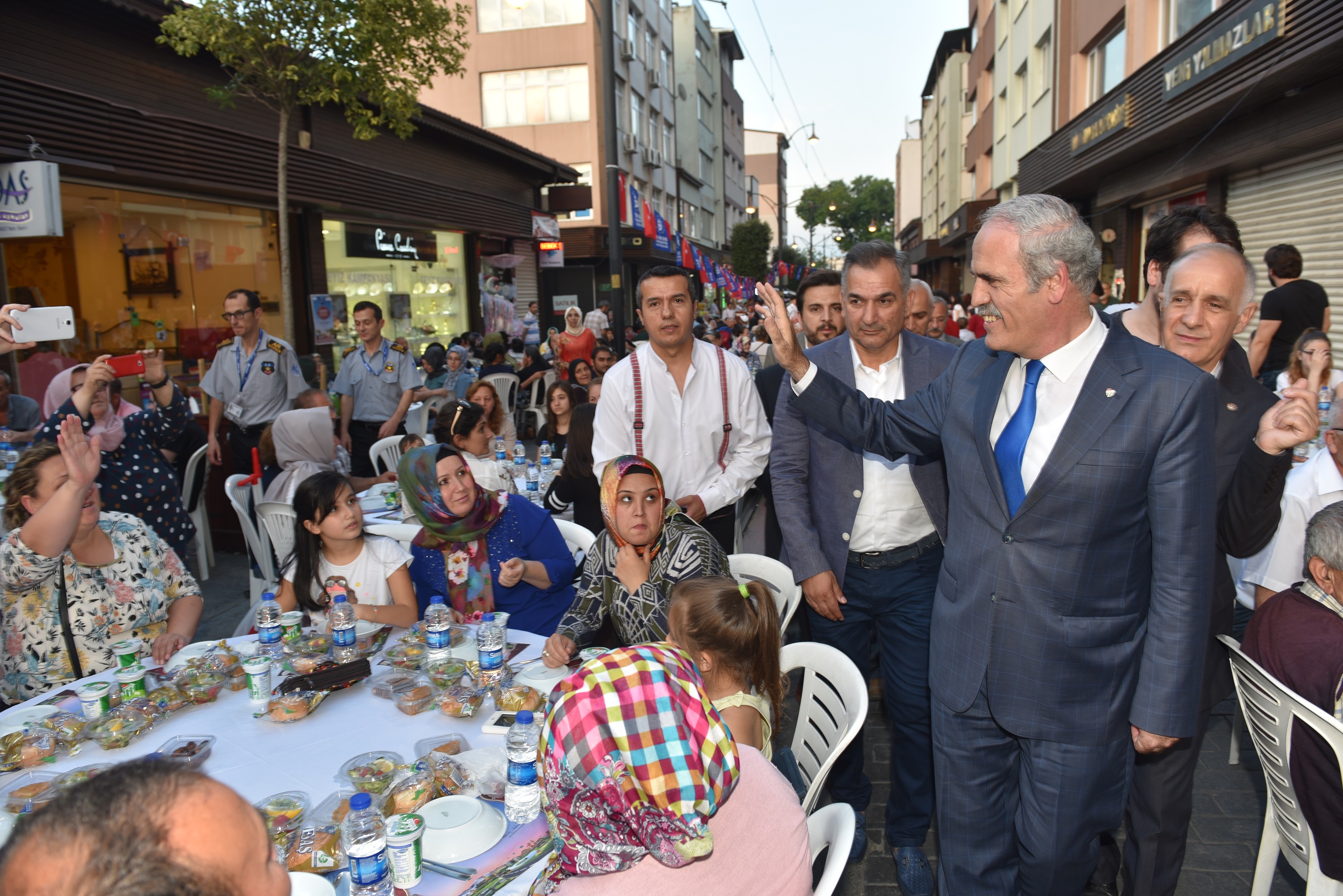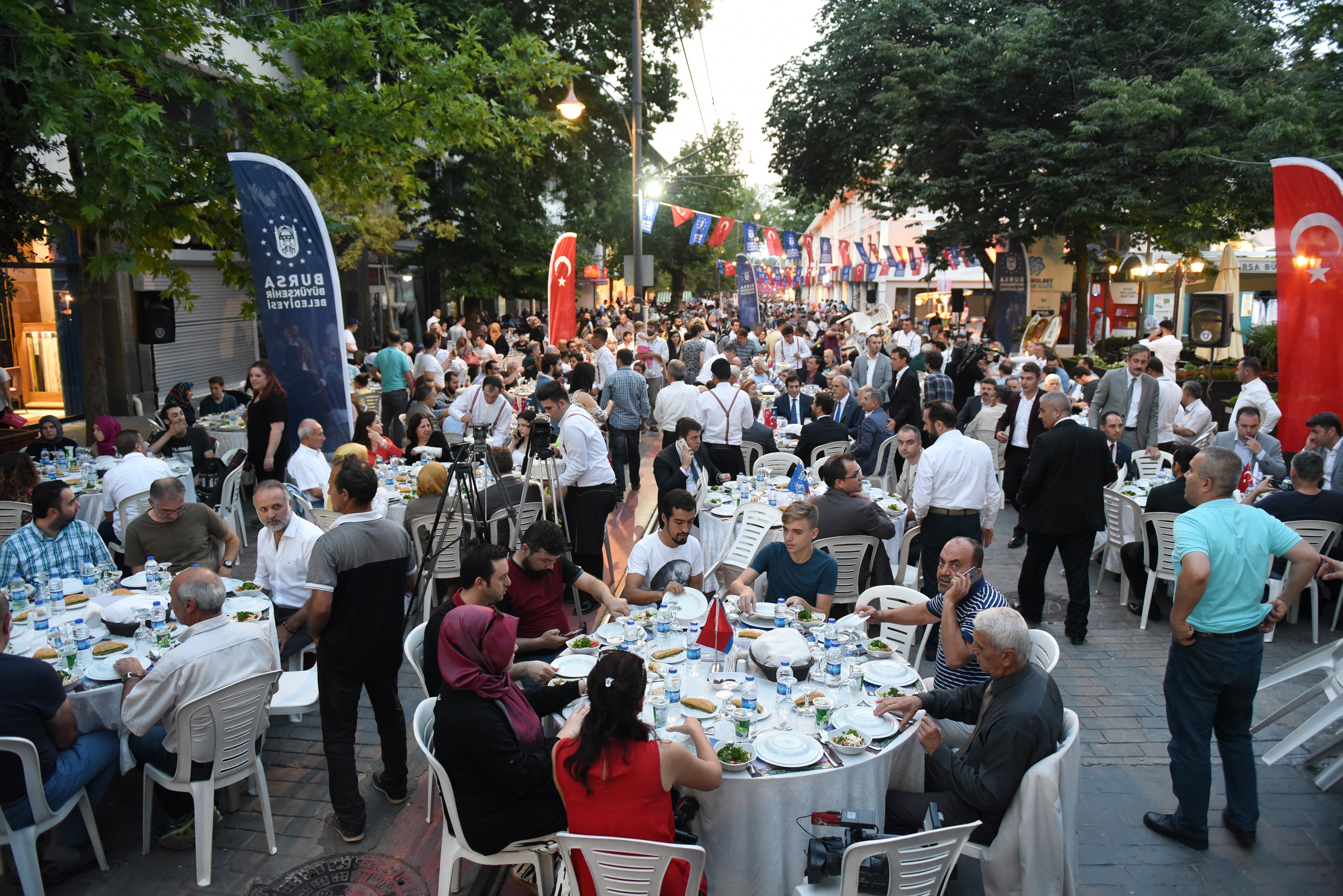 BURSA – Bursa Büyükşehir Belediye Başkanı Recep Altepe, Ramazan ayında her akşam farklı bir ilçede vatandaşlarla bir araya gelirken, bu kez Cumhuriyet Caddesi’nde düzenlenen iftarda, orucunu yaklaşık 15 bin kişiyle birlikte açtı. Başkan Recep Altepe, Bursa’nın tarihi çarşılarının artık evrensel değer olduğunu hatırlatarak, çarşıların canlanmasının şehri de canlı tutacağını söyledi.