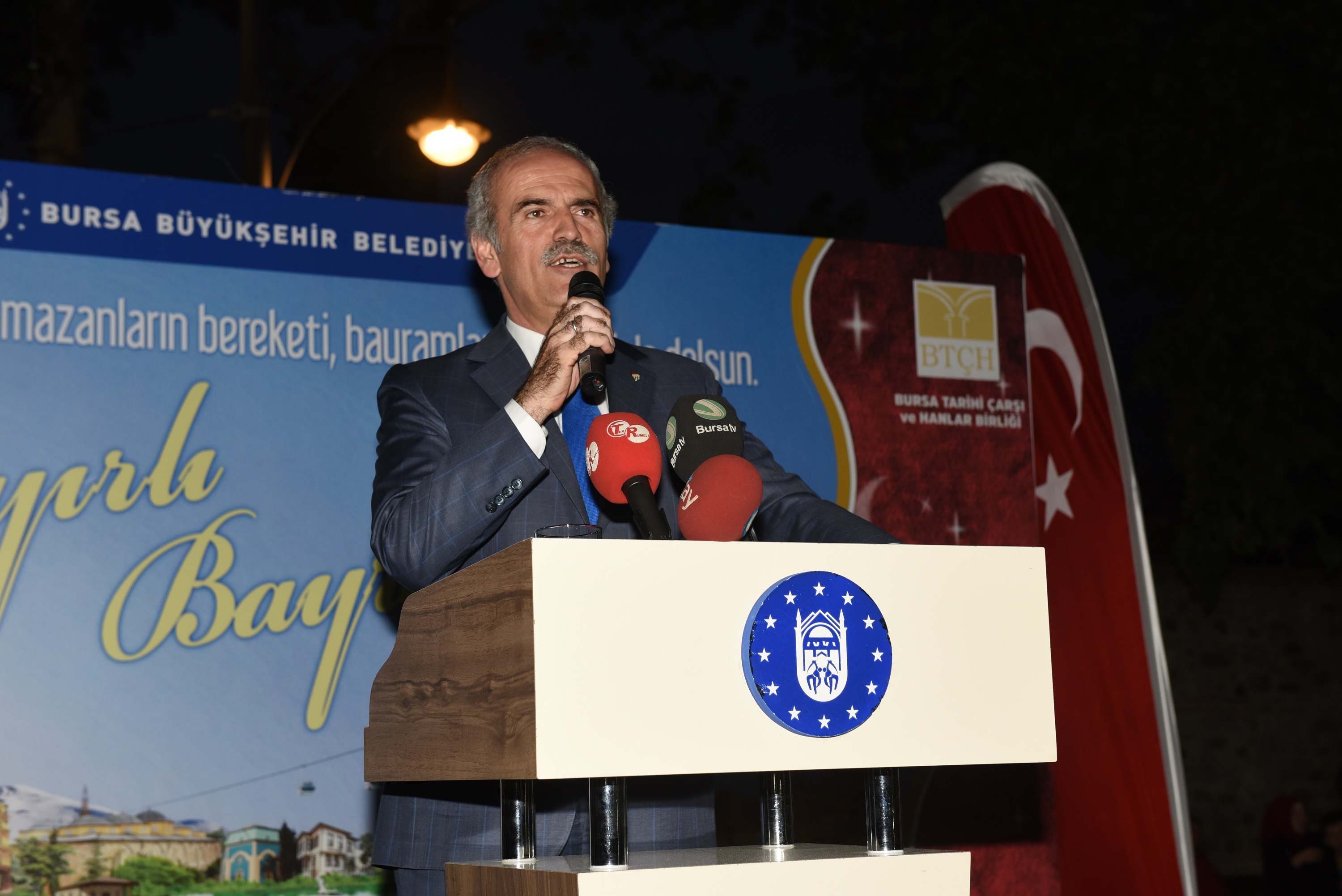 Büyükşehir Belediye Başkanı Recep Altepe, Bursa’da Ramazan ayının en güzel şekilde yaşandığını söyleyerek, “Ramazan’ın güzel buluşmalarından biri çarşımızda gerçekleşiyor. Çarşı esnafımızla birlikte, bayrama iki gün kala, halkımızın bayram alışverişine çıktığı bu yoğun günlerde, eskiden esnafın gerçekleştirdiği iftar buluşmalarını, bizler de 5 yıldır geleneksel hale getirdik” dedi.