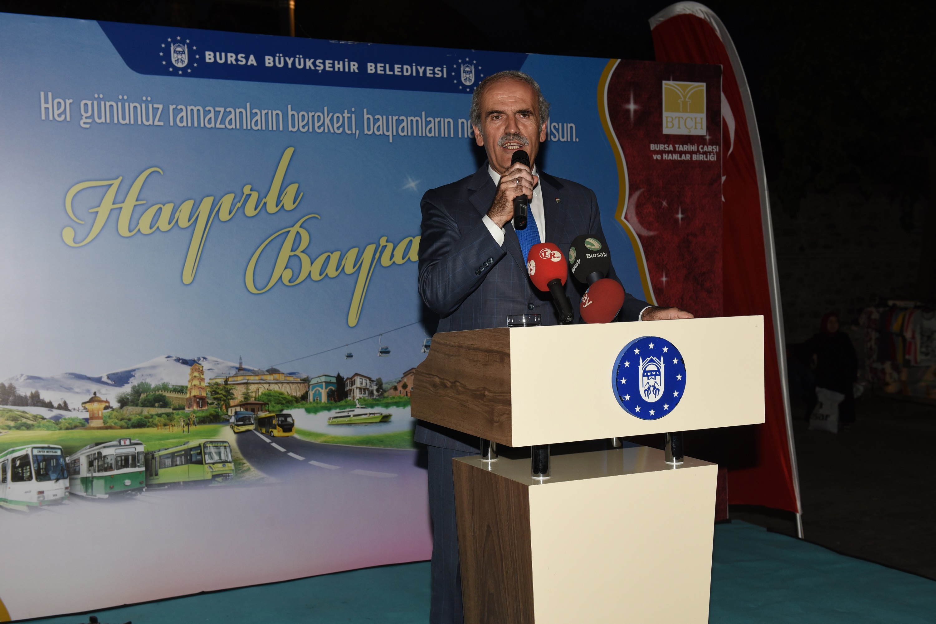- BÜYÜKŞEHİR BELEDİYE BAŞKANI RECEP ALTEPE, BURSA’NIN TARİHİ ÇARŞILARININ ARTIK EVRENSEL DEĞER OLDUĞUNU HATIRLATARAK, ÇARŞILARIN CANLANMASININ ŞEHRİ DE CANLI TUTACAĞINI SÖYLEDİ.