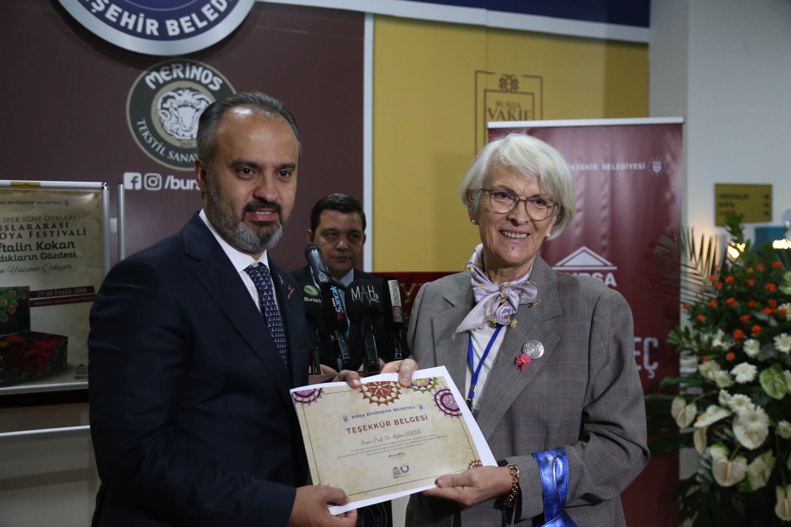 Serginin Küratörü Prof. Dr. Ayten Sürür, 2013 yılından bu yana Merinos Tekstil Sanayi Müzesi'nde tekstil tasarımı, moda tasarımı ve lif sanatları konularında yaklaşık 30 kadar sergi çalışması ve açılışı yapıldığını söyledi. Bursa'nın kültürüne sahip çıkan Bursa Büyükşehir Belediyesi'ne teşekkür eden Sürür, anavatanı Türkiye olan iğne oyasını yaşatmak, tanıtmak ve tanımak gerektiğini belirtti. Sürür, tüm katılımcılara, koleksiyonerlere, Bulgar ve Japon delegelere, atölye çalışmalarına katılanlara teşekkür etti.