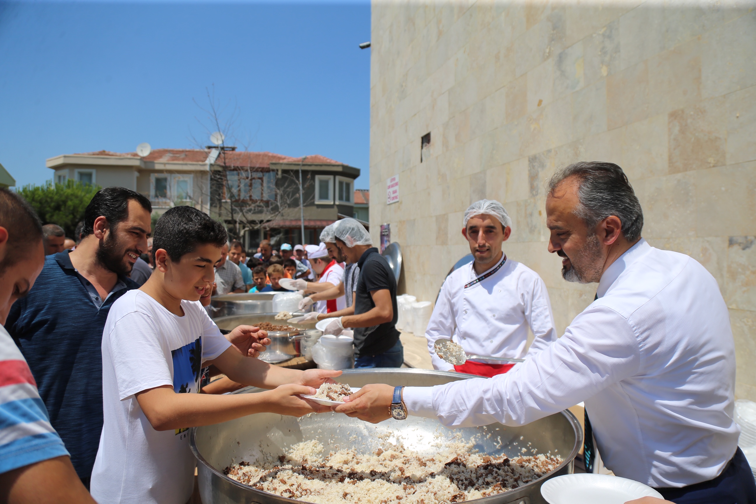 Cuma namazını Altınşehir Hacı Fahrettin Kılınç camiinde kılan Başkan Aktaş, namaz çıkışında vatandaşlara pilav ikram etti.