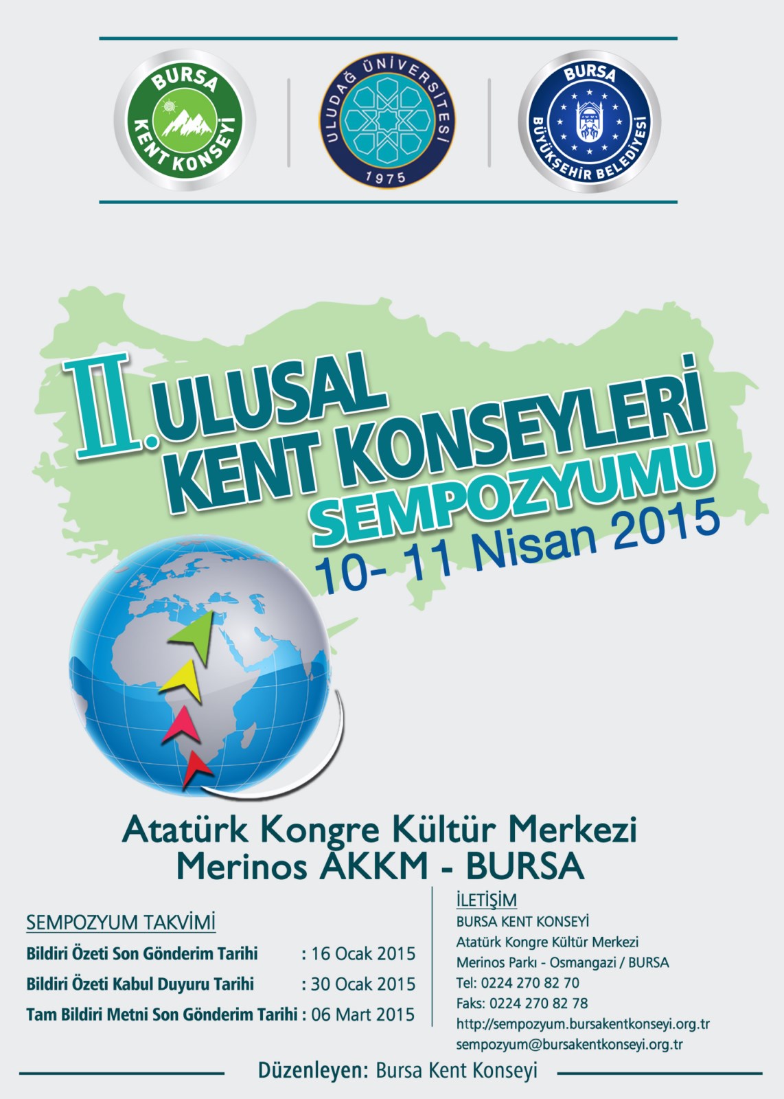 - Bursa Büyükşehir Belediyesi, Bursa Kent Konseyi ve Uludağ Üniversitesi tarafından düzenlenecek olan ‘Kent Konseyleri Sempozyumu 10-11 Nisan 2015 tarihlerinde yapılacak.