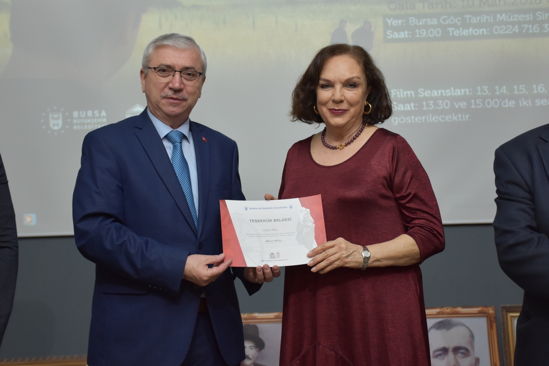 Konuşmaların ardından Başkanvekili Köse, filme emek veren yapımcı Orhan Tekeoğlu, yönetmen Nurdan Tümbek Tekeoğlu ve oyuncular Selda Alkor ile Sezai Aydın’a teşekkür belgeleri verdi.