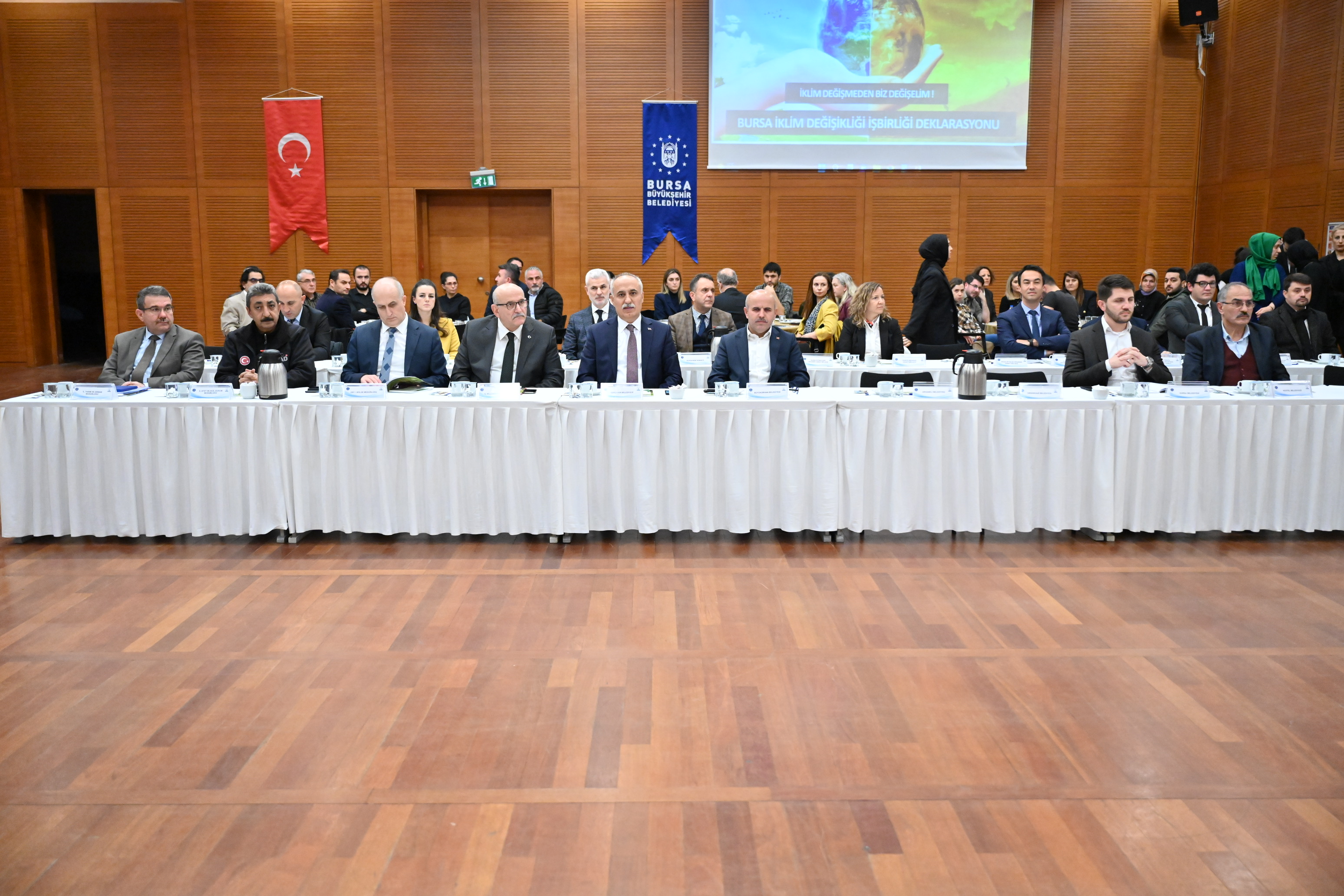 Bursa’da iklim değişikliği ile mücadele konusunda örnek adımlar atan, raylı sistem hattının uzatılmasından akıllı kavşaklara, bisiklet yollarından yenilenebilir enerji kaynaklarının kullanımına ve kente yeni yeşil alanlar kazandırılmasına kadar pek çok çalışmaya imza atan Büyükşehir Belediyesi, bu mücadeleyi toplumun geneline yaymak için düğmeye bastı. Bursa’daki tüm kamu kurum ve kuruluşları, sivil toplum örgütleri, iş dünyası, akademik ve meslek odalarının da katılımıyla, etkin mücadele sergilenmesi amacıyla, Büyükşehir Belediyesi tarafından Bursa İklim Değişikliği İşbirliği Deklarasyonu hazırlandı. Bursa’nın geleceğe sağlıklı şekilde taşınması amacıyla hazırlanan deklarasyon, Atatürk Kongre ve Kültür Merkezi Hüdavendigar Salonu’nda düzenlenen toplantı ile kamuoyuna duyuruldu.