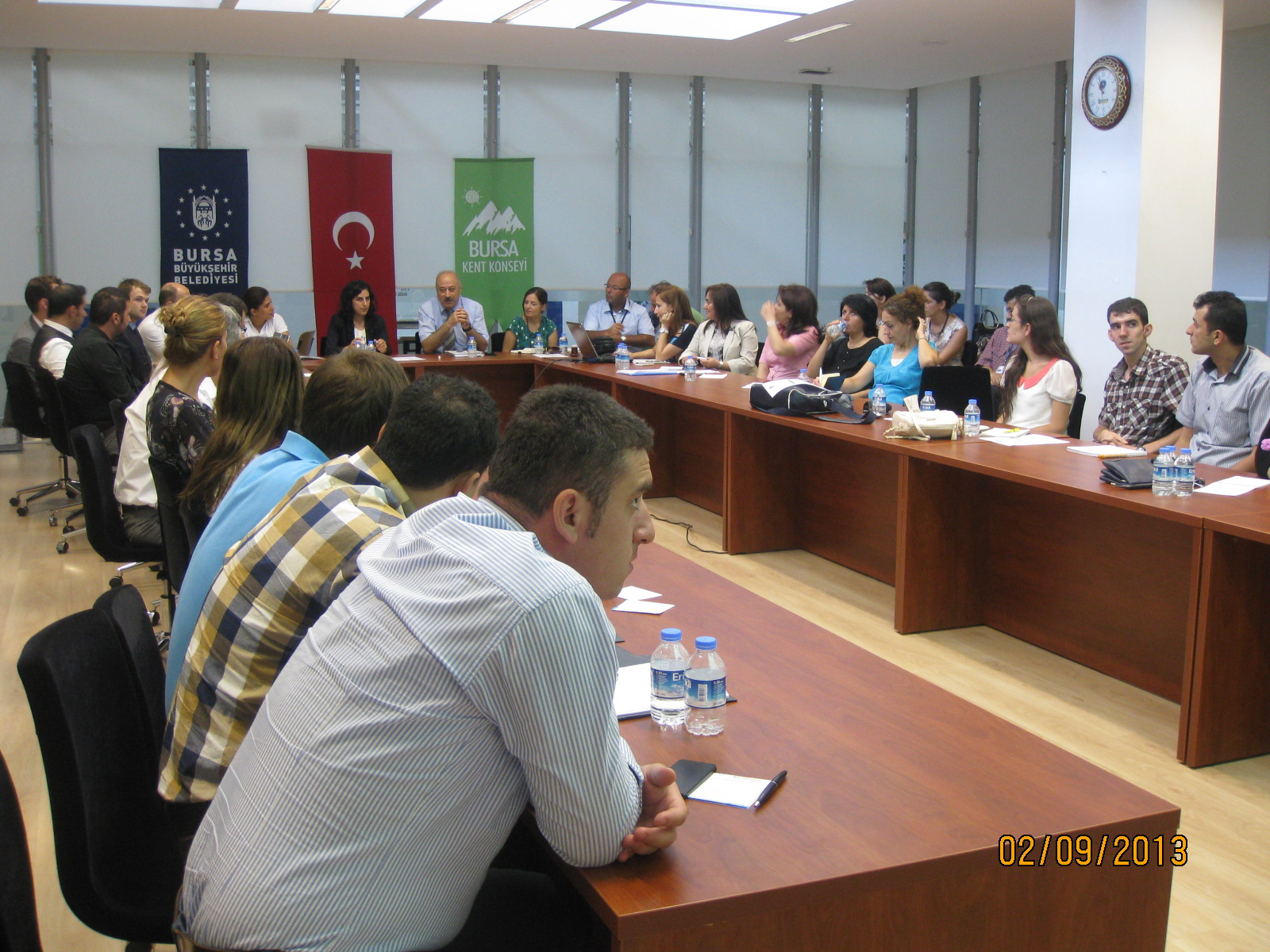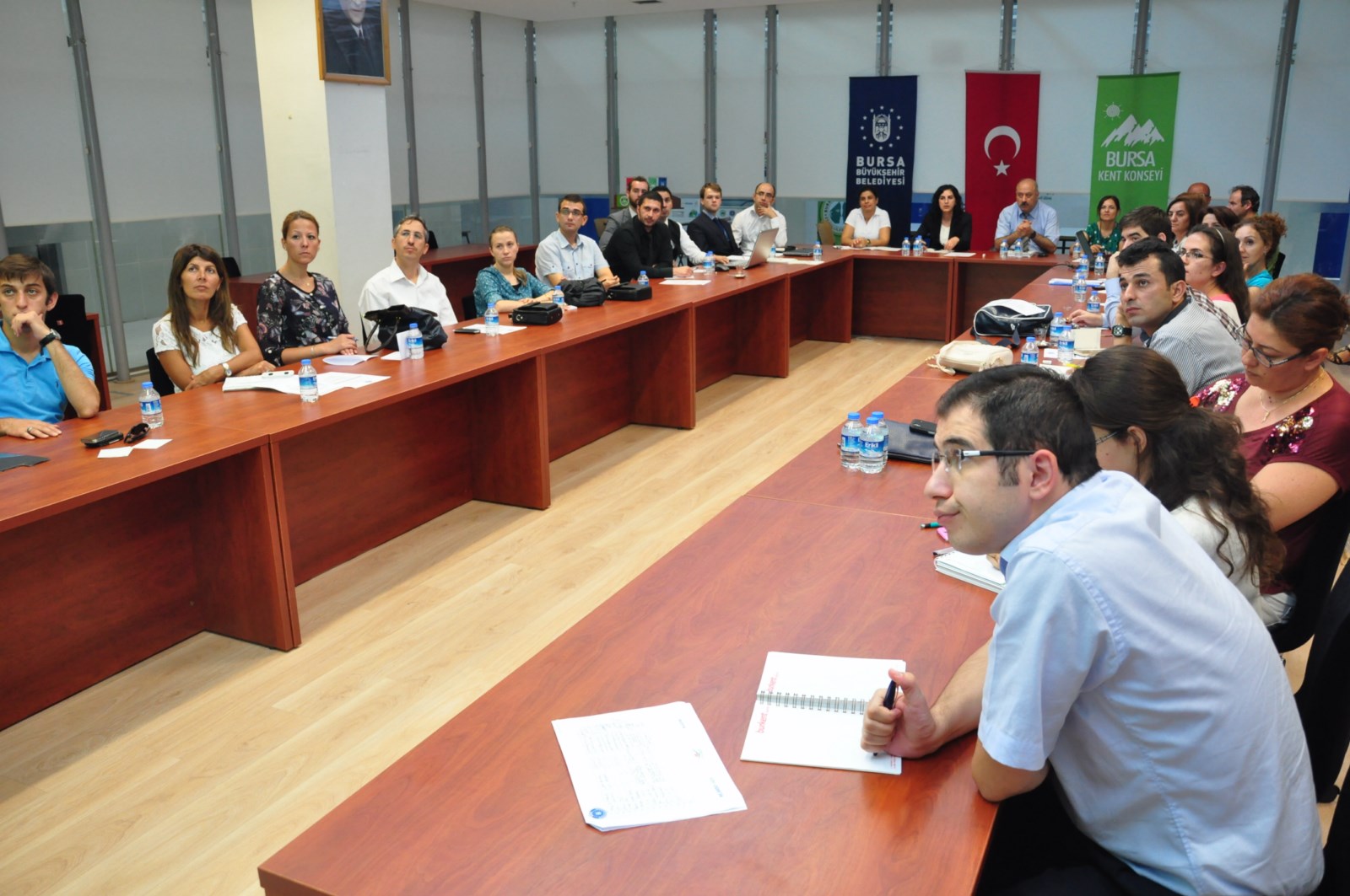 Bursa’da belediyeler başta olmak üzere ilgili kurumları projenin amacı, kapsamı ve iklim değişikliği konularında bilgilendirmek amacıyla Bursa Büyükşehir Belediyesi Çevre Koruma ve Kontrol Dairesi Başkanlığı ve Bluecern koordinasyonunda proje açılış toplantısı yapıldı. Çevre ve Şehircilik İl Müdürlüğü yetkilileri, ilçe belediyelerin temsilcileri ve Büyükşehir Belediyesinin ilgili birimlerinin katıldığı toplantıda, Büyükşehir Belediyesi Çevre Koruma ve Kontrol Dairesi Başkanı Bahattin Kuşoğlu, iklim değişikliği çalışmalarında belediyelerin rolleri ve Büyükşehir Belediyesi’nin projeden beklentilerini anlattı. Bluecern temsilcisi İzzet Ceren, proje paydaşlarının rolleri, Çevre ve Şehircilik Bakanlığı temsilcisi Çevre Mühendisi Kader Tuğan, Türkiye’de iklim değişikliği alanında ulusal ve uluslararası ölçekte gerçekleştirilen çalışmalar ve danışman firma olan Ricardo- AEA’dan uzman Neil Walmsley ve Raphael Sibille; iklim uyum stratejilerinin geliştirilmesine yönelik Avrupa ölçeğinde yapılan çalışmalar hakkında bilgi verdi.