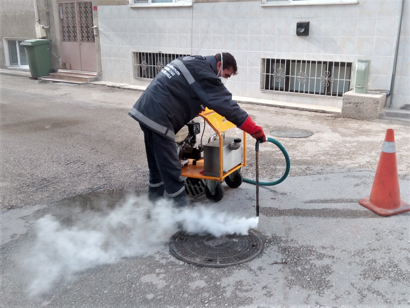 Bursa Büyükşehir Belediyesi Sağlık İşleri Dairesi Başkanlığı Veteriner Hizmetleri Şube Müdürlüğü, ilaçlama faaliyetlerine kış aylarında da kesintisiz devam ediyor. Yaz dönemine hazırlık kapsamında 17 ilçede 90 adet personel, 16 kamyonet ve 26 sisleme makinası ile yaklaşık 53 bin adet irili ufaklı sivrisinek üreme noktası kış aylarında da kontrol altında tutuluyor. Sivrisinek, karasinek, hamamböceği ve benzeri haşerelerin bulunabileceği atık su kanalları, rögar, fosseptik, kullanılmayan bodrumlar ve yer altındaki benzeri oluşumlar, sıcak sisleme (biyosidal ürün uygulaması) yöntemiyle periyodik olarak ilaçlanıyor.