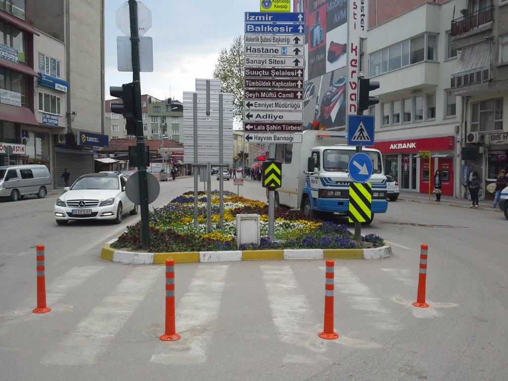 Büyükşehir sınırlarının ilk sınırı haline getirmesinin ardından mücavir alana yeni bağlanan 10 ilçede hizmetlere start veren Büyükşehir Belediyesi Ulaşım Daire Başkanlığı’na bağlı Trafik Şube Müdürlüğü ekipleri Mustafakemalpaşa, Karacabey ve Yenişehir ilçelerindeki trafik yön tabelalarına çeki düzen getirmeye başladı. Çalışmalar kapsamında kavşaklarda ana yol tali yol çalışmaları, kavşak içi bilgi ve yön levhalarının yenilenmesi, turistik yerlerin yön bilgi levhalarının eksik olanların montajı, hasarlı olanların da yenilenmesi sağlandı. Ana caddelerde yaya geçidi levhalarının eksik olanları tamamlanırken, eski olanlar da yenileri ile değiştirildi. Yaya geçidine araç parkının önlenmesine yönelik delinatör montajları yapılırken, yine ana cadde üzerindeki okul giriş ve çıkışlarına trafik güvenliği sağlamak amacıyla hız kesici setler yapıldı.