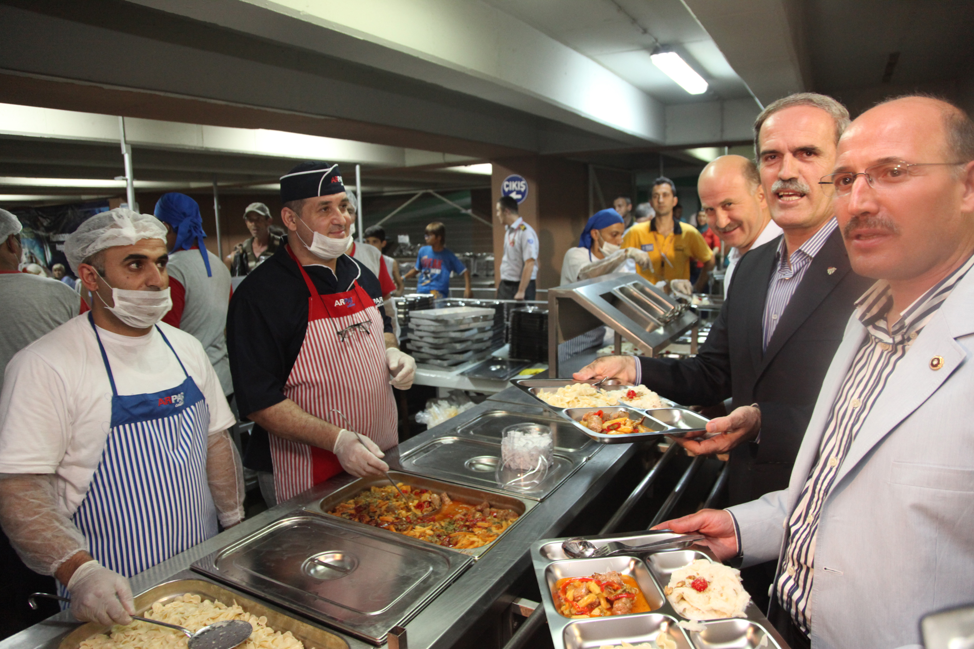Bursa Büyükşehir Belediyesi’nin en önemli sosyal belediyecilik faaliyetlerinden biri olan ve her yıl düzenlenerek geleneksel hale getirilen aşevinde yine ilk iftar heyecanı yaşandı. Aşevinde sıraya girip tabldot yemeğini alan vatandaşlar, iftar saatinin gelmesini büyük bir heyecan içerisinde bekledi. Büyükşehir Belediye Başkanı Recep Altepe, AK Parti Bursa milletvekilleri Mustafa Öztürk ve Tülin Erkal Kara, AK Parti Bursa İl Başkan Yardımcısı Cemalettin Torun da ilk iftarlarını vatandaşlarla birlikte açtı. Servis masasının arkasına geçip vatandaşlara yemek dağıtan protokol üyeleri, ezanın okunmasının ardından yemeklerini de yine vatandaşlarla birlikte yedi.