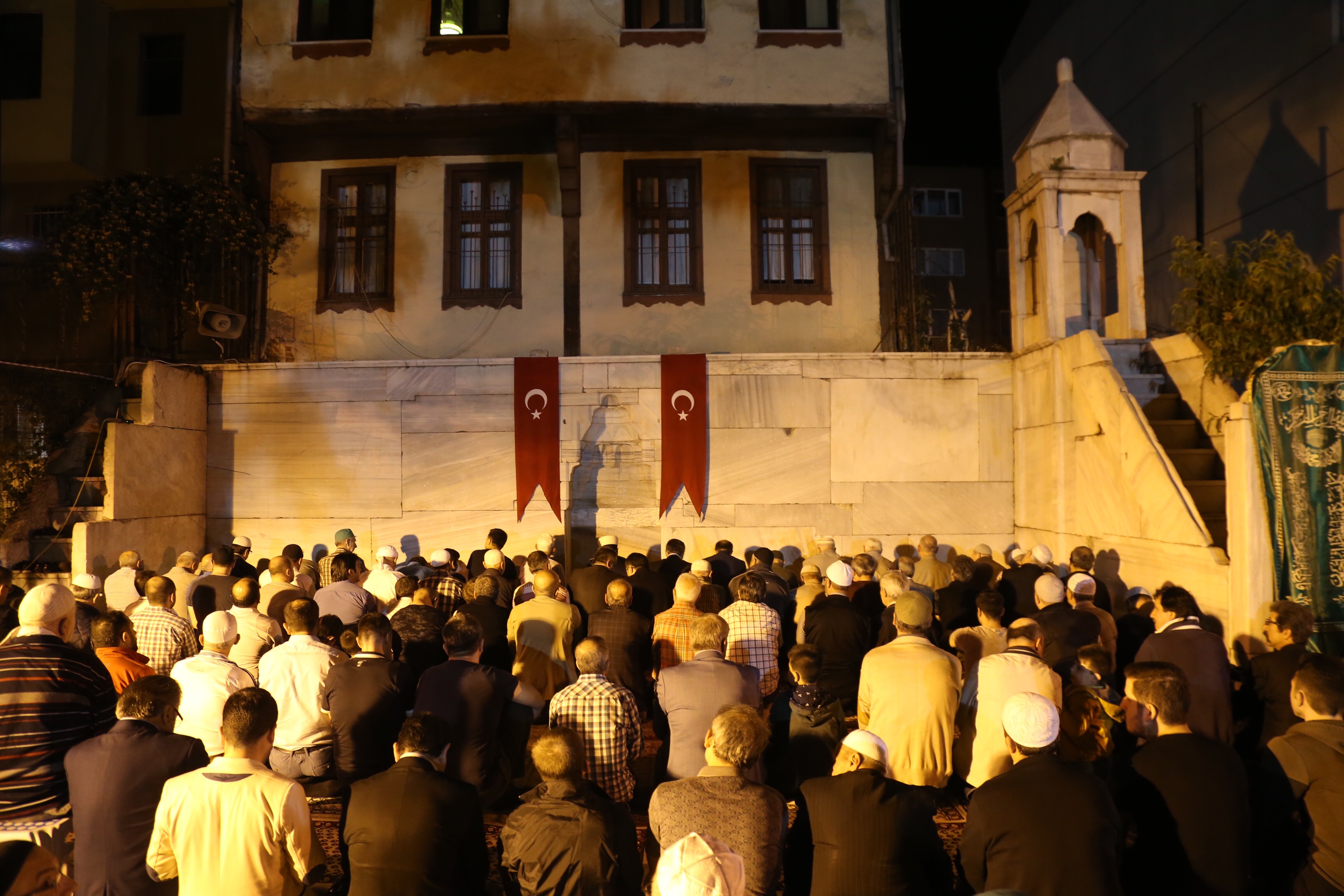 Bursa’da açık havada teravih kılmak isteyen vatandaşlar, Namazgah Mescidi’ne akın etti. Osmanlı ordularının sefer öncesi uğradığı ve topluca namaz kıldığı tarihi mescit, Ramazan ayının ilk dakikalarında doldu taştı. Merkez Yıldırım ilçesindeki mescit, şehrin birçok bölgesinden vatandaşları bir araya getirdi. Büyükşehir Belediye Başkanı Alinur Aktaş da Ramazan ayının ilk teravih namazını vatandaşlarla birlikte Namazgah Mescidi’nde eda etti. Yaşanan teravih coşkusuna, Başkan Aktaş’ın yanı sıra AK Parti İl Başkanı Ayhan Salman ile Yıldırım Belediye Başkanı İsmail Hakkı Edebali de ortak oldu.