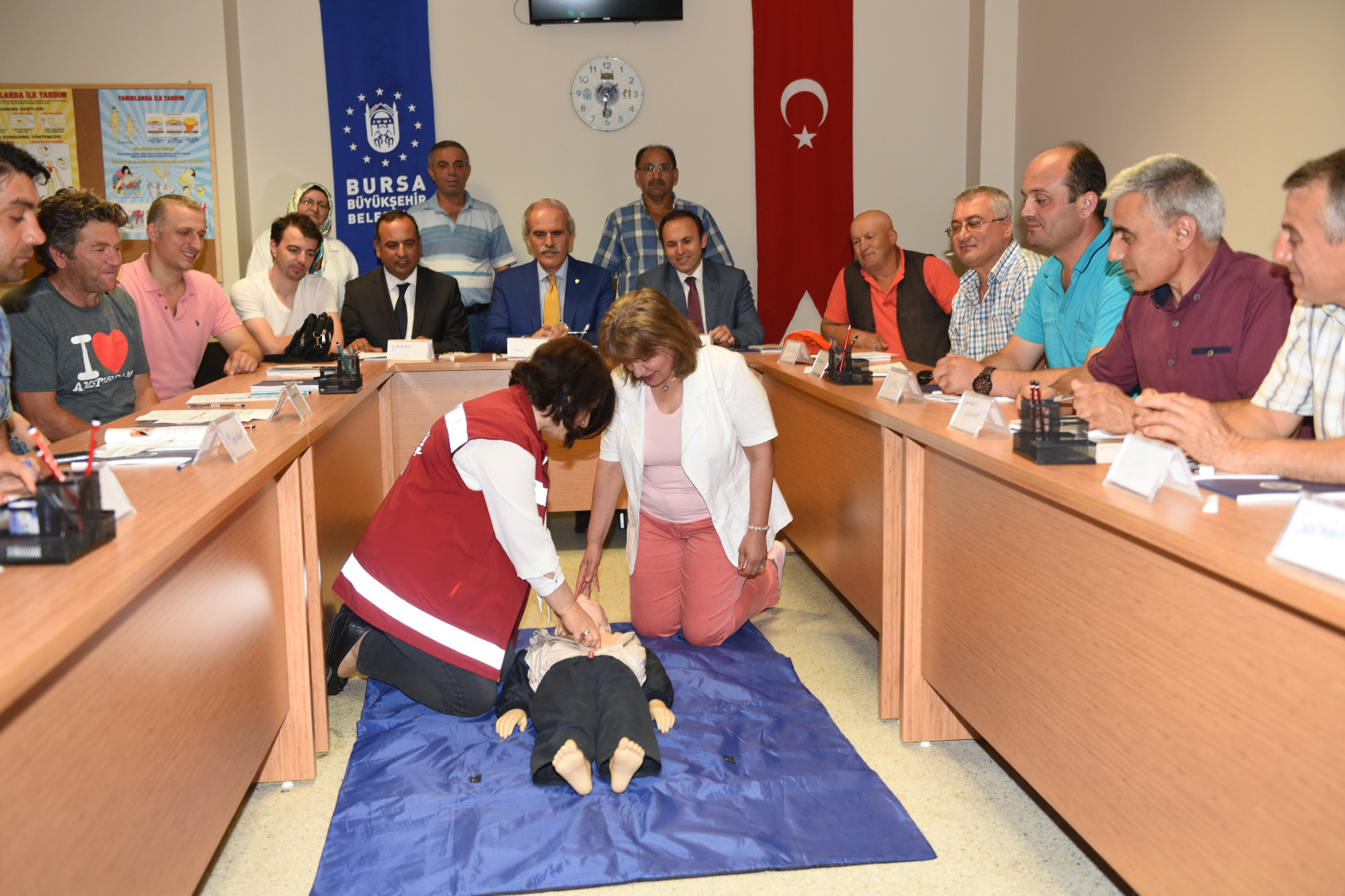 Bursa Büyükşehir Belediyesi Yeni Hizmet Binası, C Blok kat B1’de hizmet veren merkezde, itfaiye personelinin ilkyardım eğitimine de katılan Başkan Altepe, acil yardım hizmetlerinin önemine değindi.
