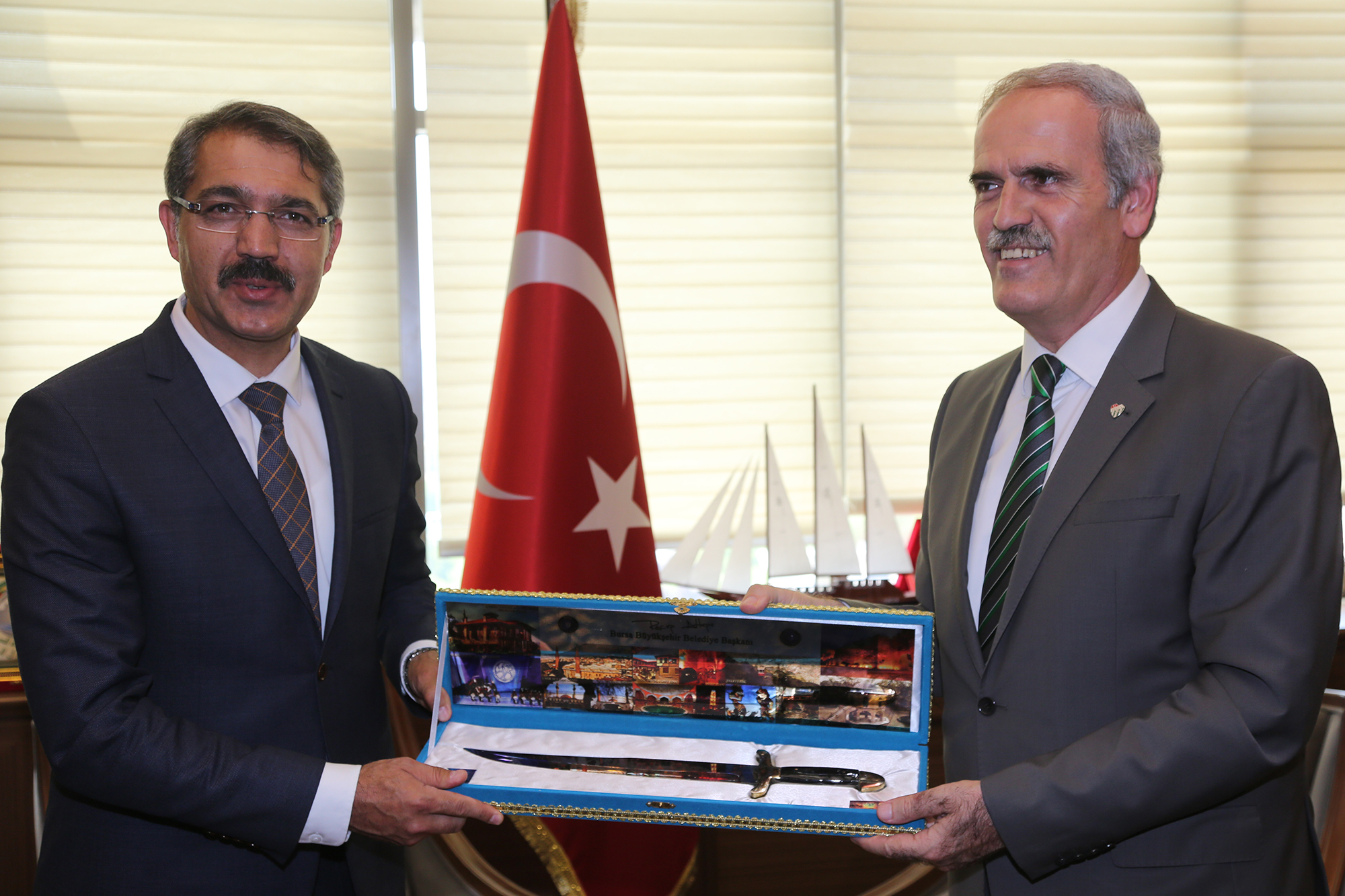 İmza töreninin ardından Başkan Altepe ve Bekler, birbirlerine Bursa ve Turhal’a özgü hediyeler verdi.