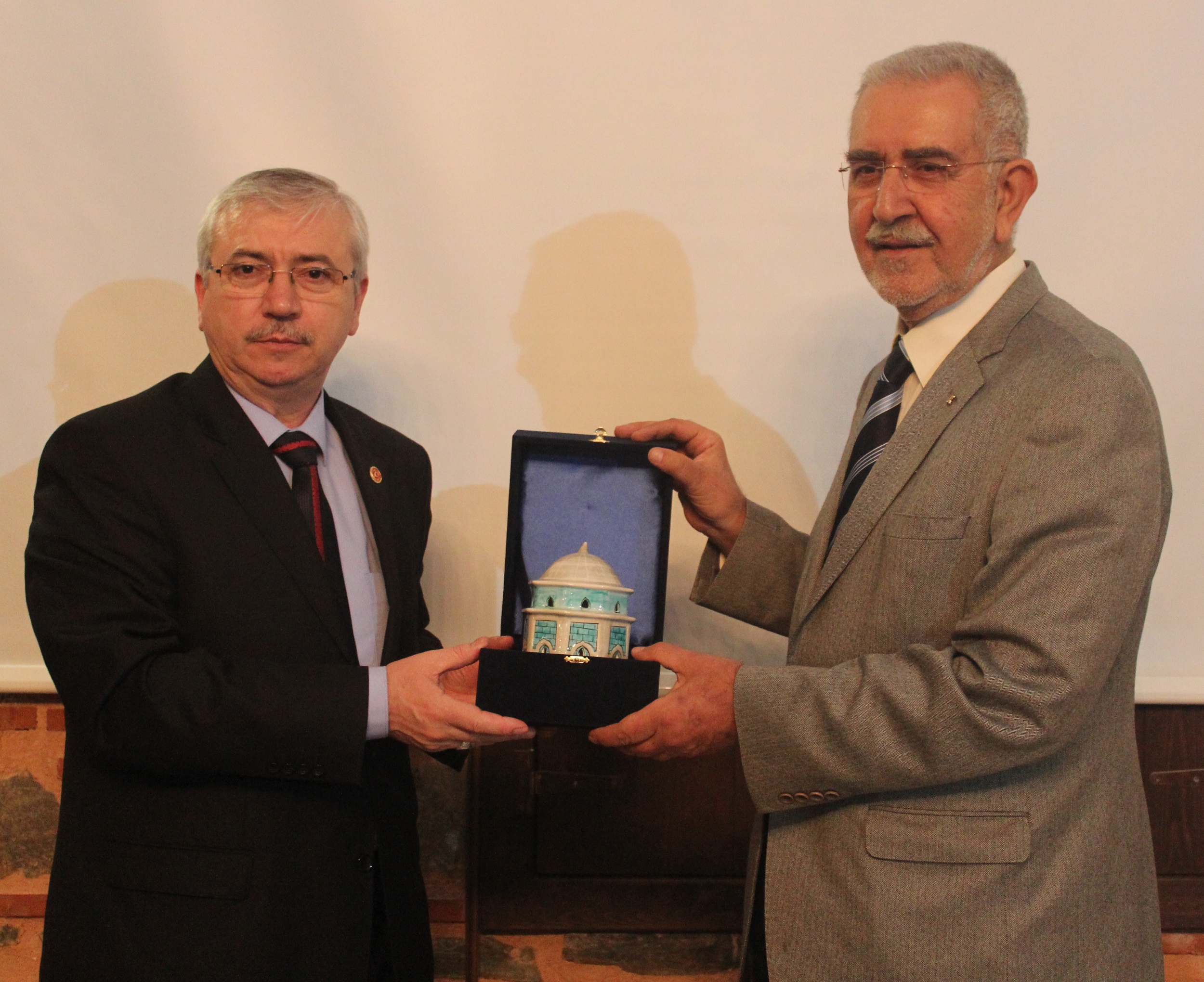 Büyükşehir Belediyesi Başkanvekili Şükrü Köse, ilgiyle izlediği programın sonunda Tuğrul İnançer’e BUSMEK kursiyerlerinin el işçiliğiyle yapılan çini Yeşil Türbe’yi hediye etti.