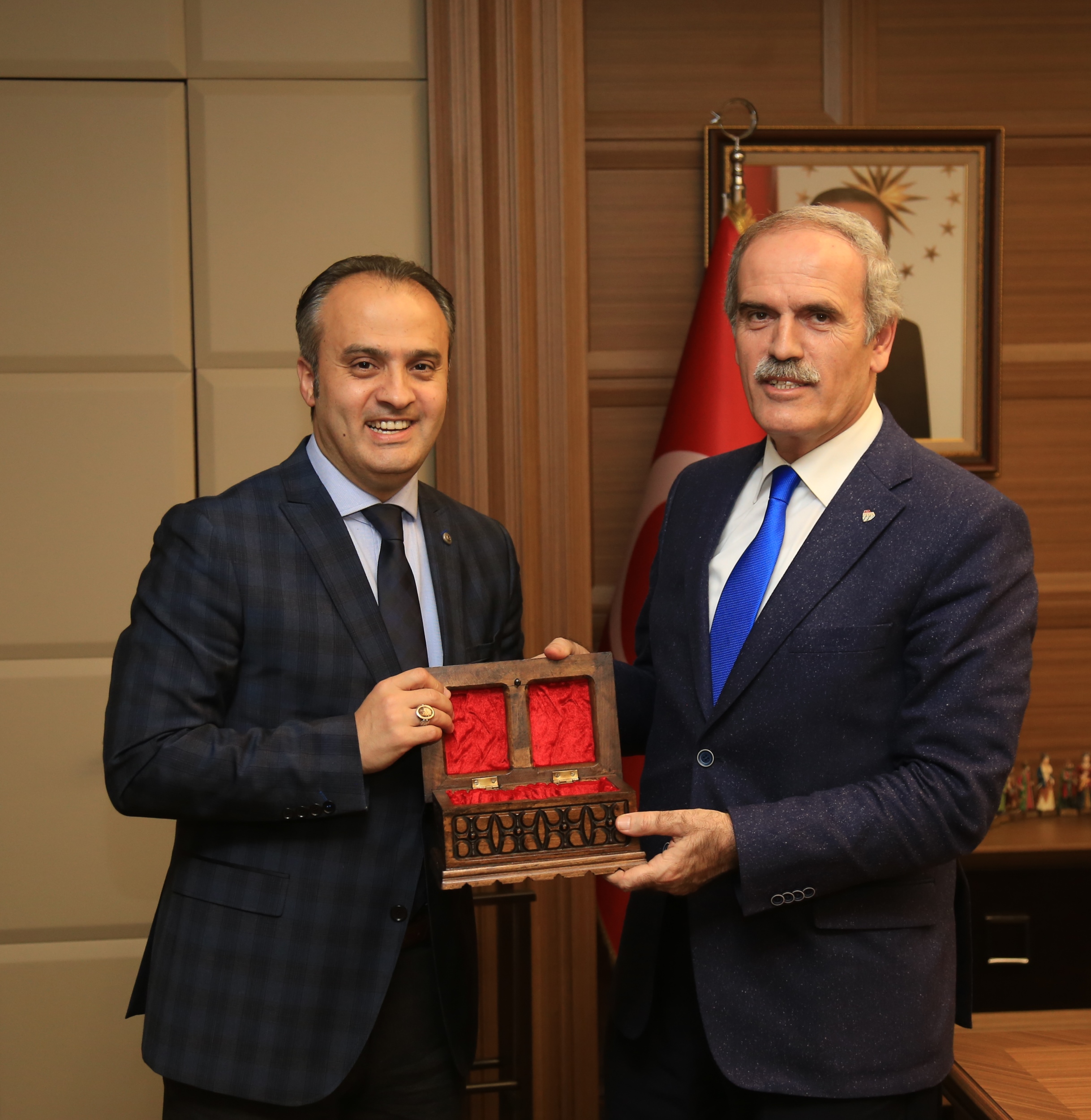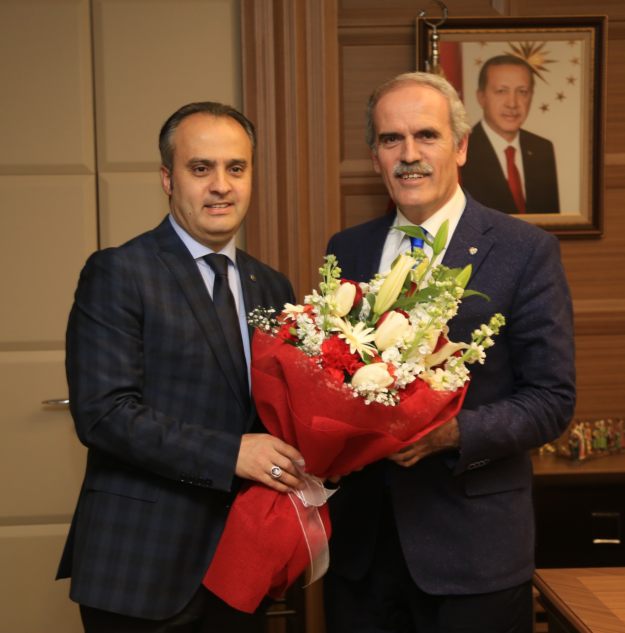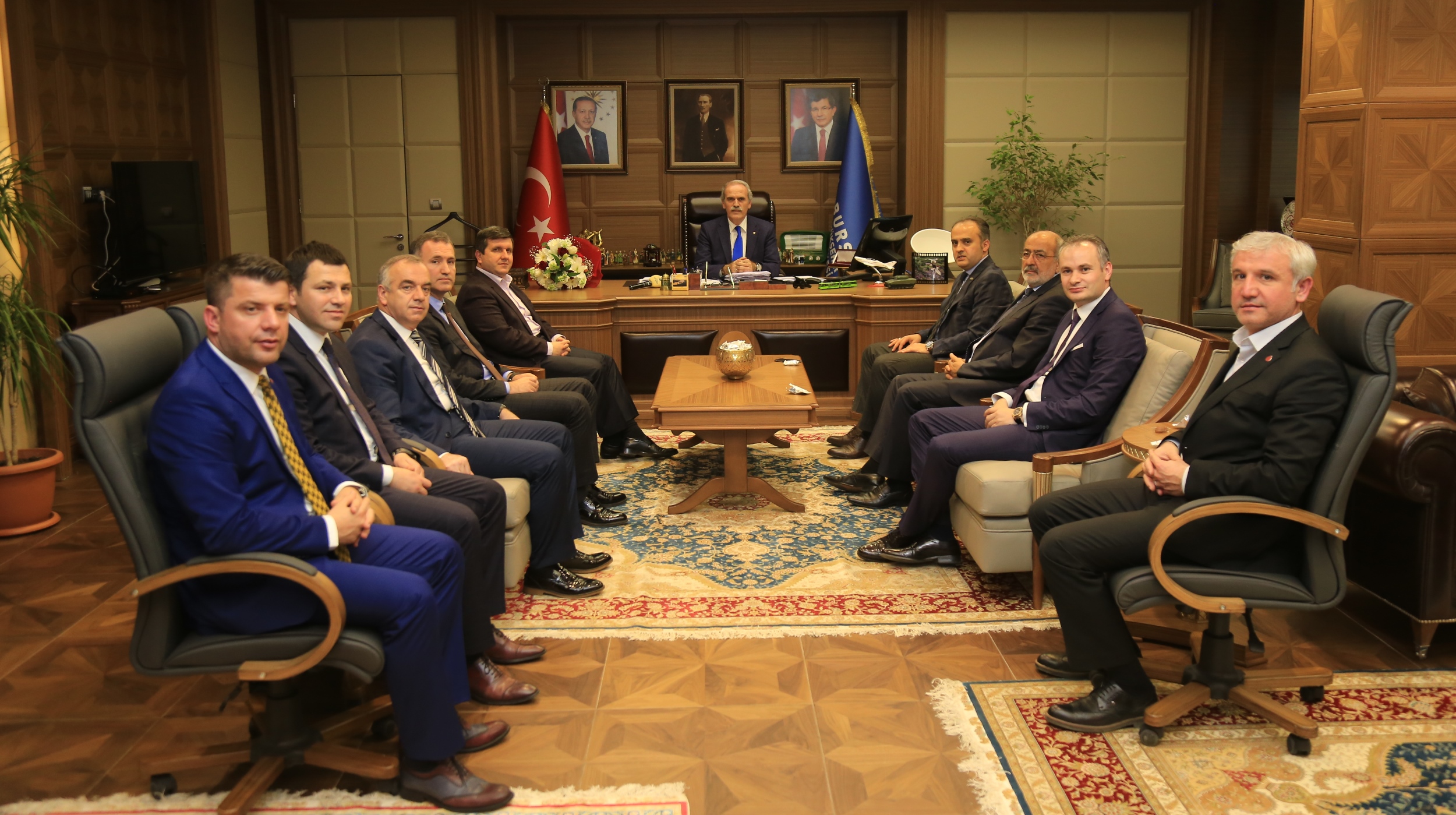 Büyükşehir Belediye Başkanı Recep Altepe, İnegöl Belediye Başkanı Alinur Aktaş, AK Parti İnegöl İlçe Başkanı Adem Demirel ve başkan yardımcılarıyla Büyükşehir Belediyesi yeni hizmet binasında görüştü. İnegöl Belediye Başkanı Alinur Aktaş, Bursa’ya uzun yıllar sonra kazandırılan yeni hizmet binasından dolayı “hayırlı olsun” dileğinde bulunduğu Başkan Altepe’ye, ilçelerine verdiği desteklerden dolayı da teşekkür etti. Aktaş, İnegöl’ün Büyükşehir Belediyesi’nin gücünü her zaman hissettiğini de sözlerine ekledi.