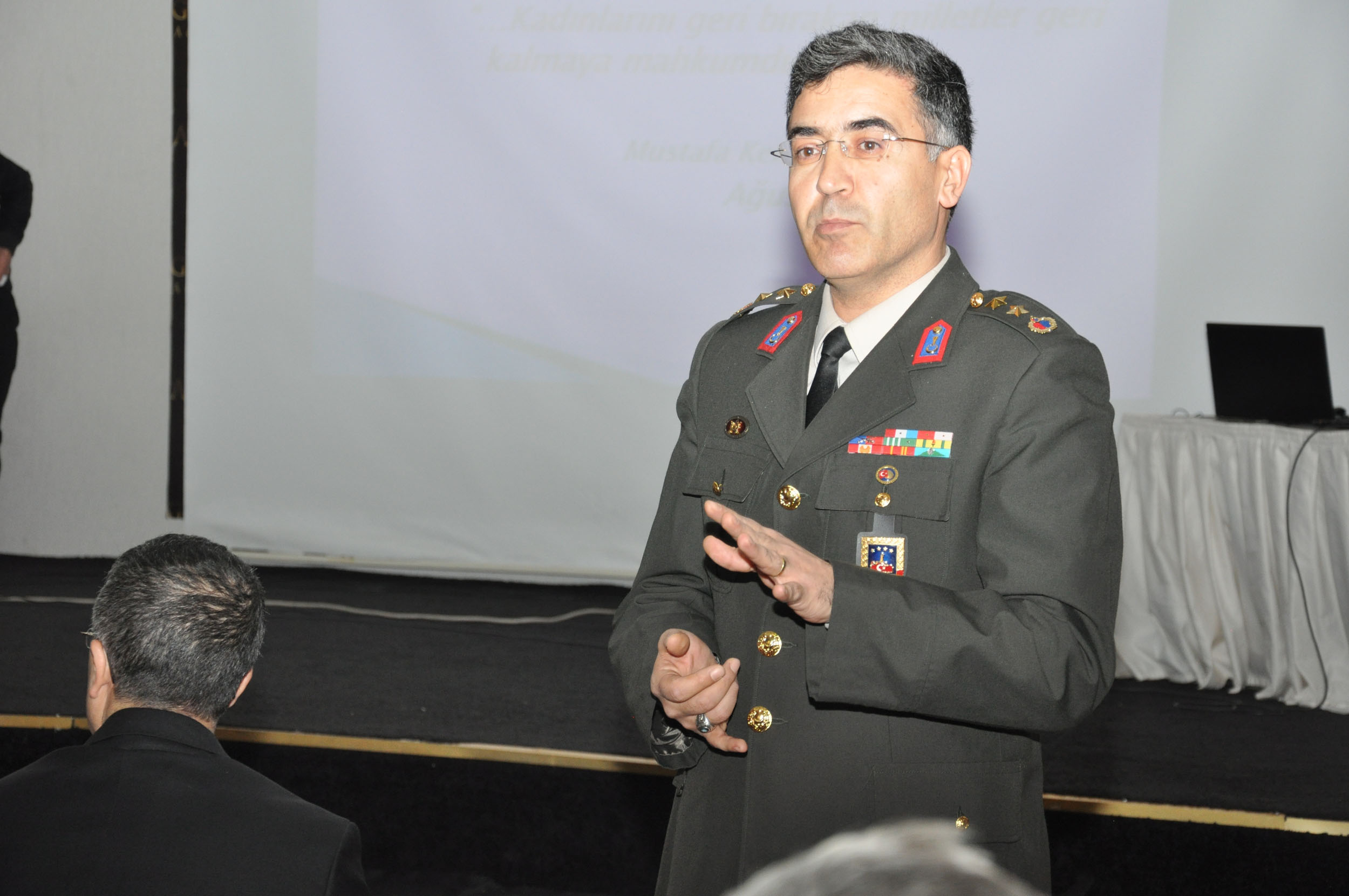 İl Jandarma Komutanlığı Harekat Eğitim Şube Müdürü Yarbay Servet Yeğit, muhtarların hem kanaat önderi, hem de kamu görevlisi olduğu hatırlattı. Bu anlamda muhtarların bazı görev ve sorumlulukları bulunduğunu belirten Yeğit, jandarmanın kadına yönelik şiddeti muhtarlarla işbirliği yaparak önleyeceğini anlattı. Aile içi şiddet karşısında muhtarların hemen ihbarda bulunmasını etmesini isteyen Yeğit, etrafa da örnek olmalarını istedi.