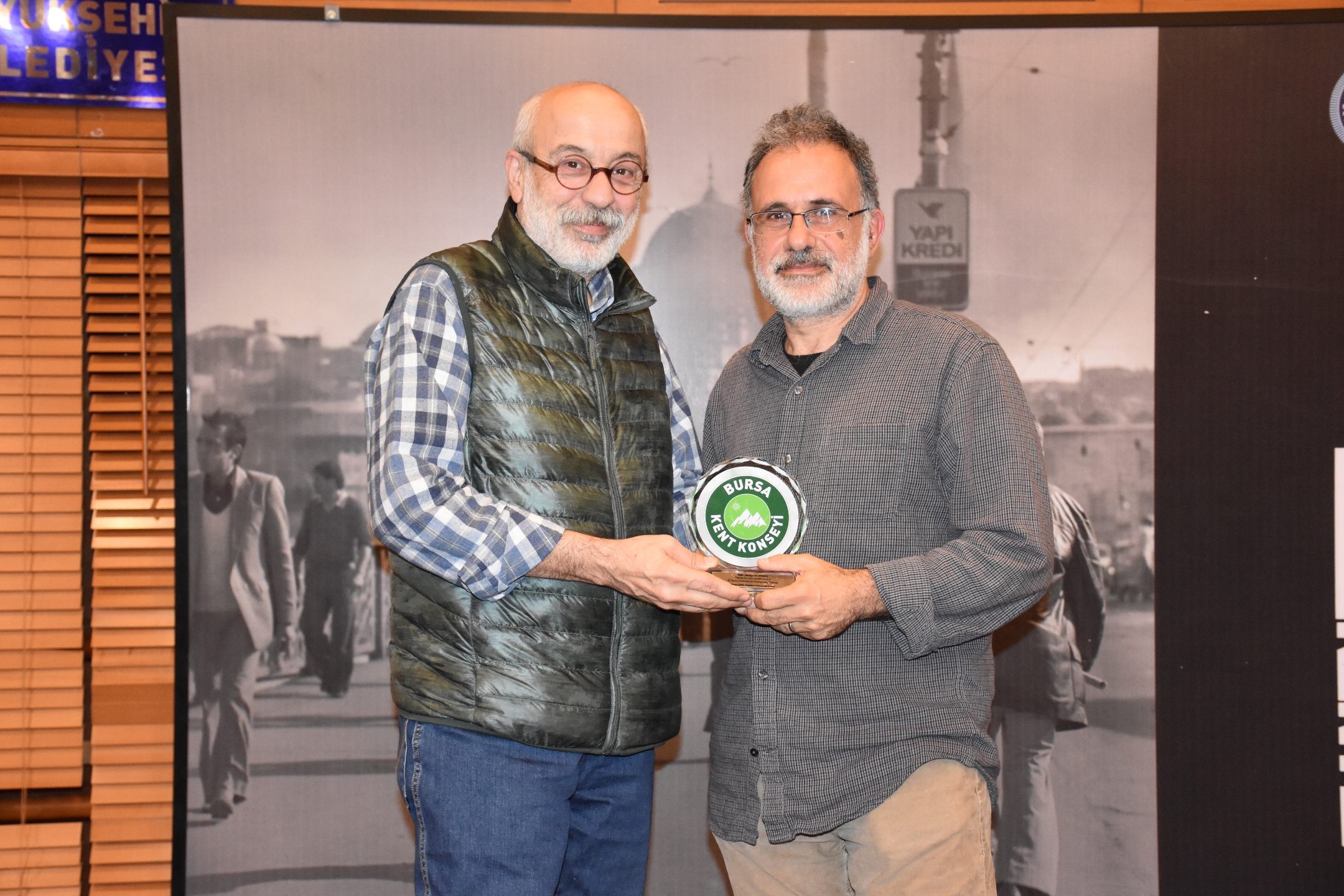 Konuşmaların ardından Festival Danışma Kurulu üyesi Hasan Şenyüksel tarafından sanatçı George Georgiou’ya günün anısına plaket takdim edildi.