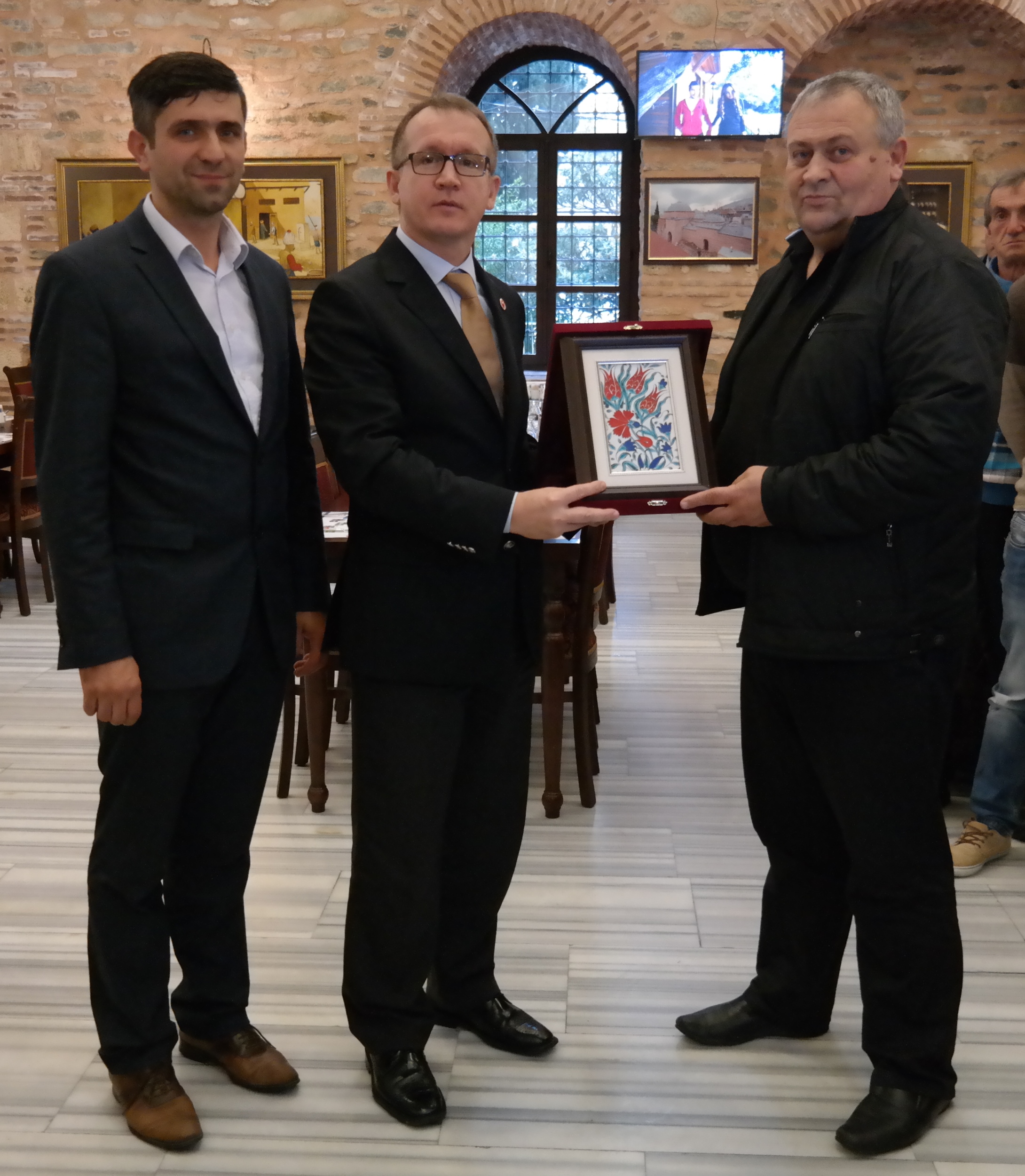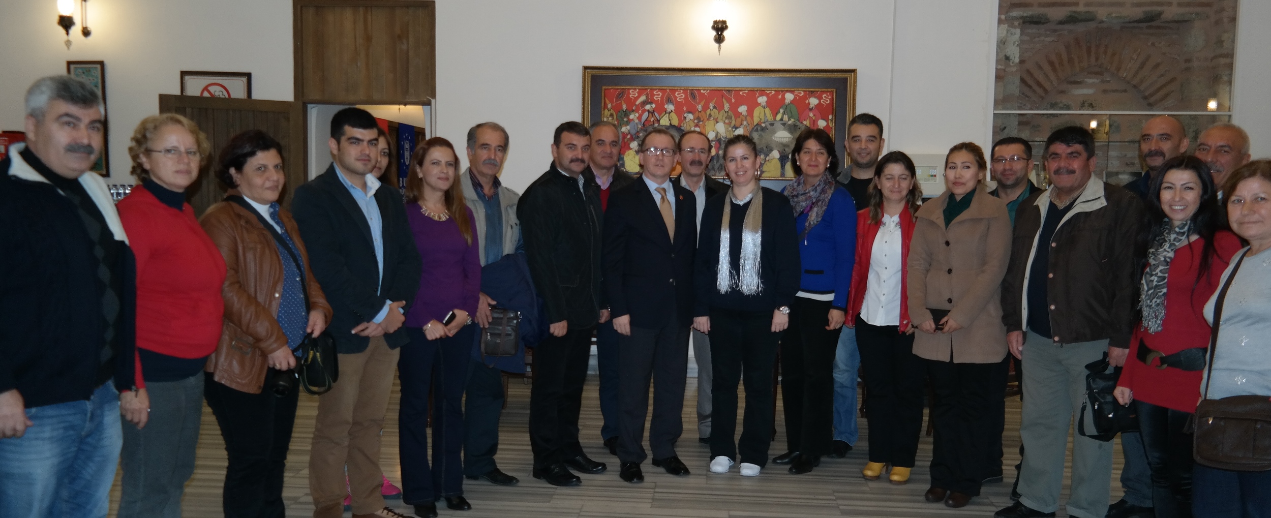 Büyükşehir Belediyesi Başkanvekili Abdülkadir Karlık, teleferik çalışmaları hakkında bilgi edinmek üzere kente gelen Mersin Toroslar Belediyesi heyeti ve Bulgaristan’dan gelen Pomaklar heyeti ile Kayıhan Hamamı Sosyal Tesisleri’nde bir araya geldi. Konuklara Bursa hakkında bilgiler veren Karlık, ziyaretin ardından heyet temsilcilerine Bursa’ya özgü hediyeler takdim etti.