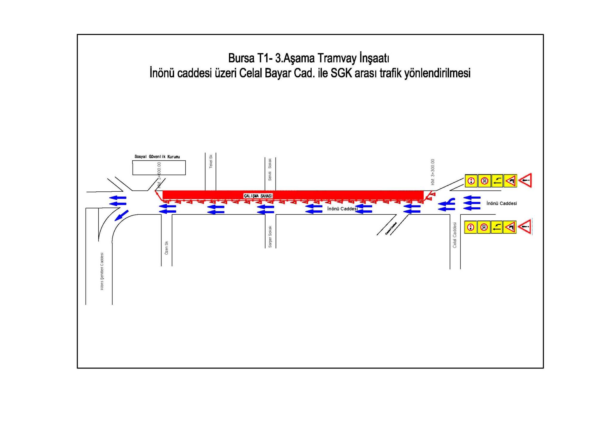 Büyükşehir Belediyesi Ulaşım Dairesi Başkanlığı tarafından yapılan açıklamaya göre; Büyükşehir Belediyesi’nin ulaşım şirketi BURULAŞ tarafından sürdürülen T1 tramvay hattı çalışmaları İnönü Caddesi’nde de başlıyor.