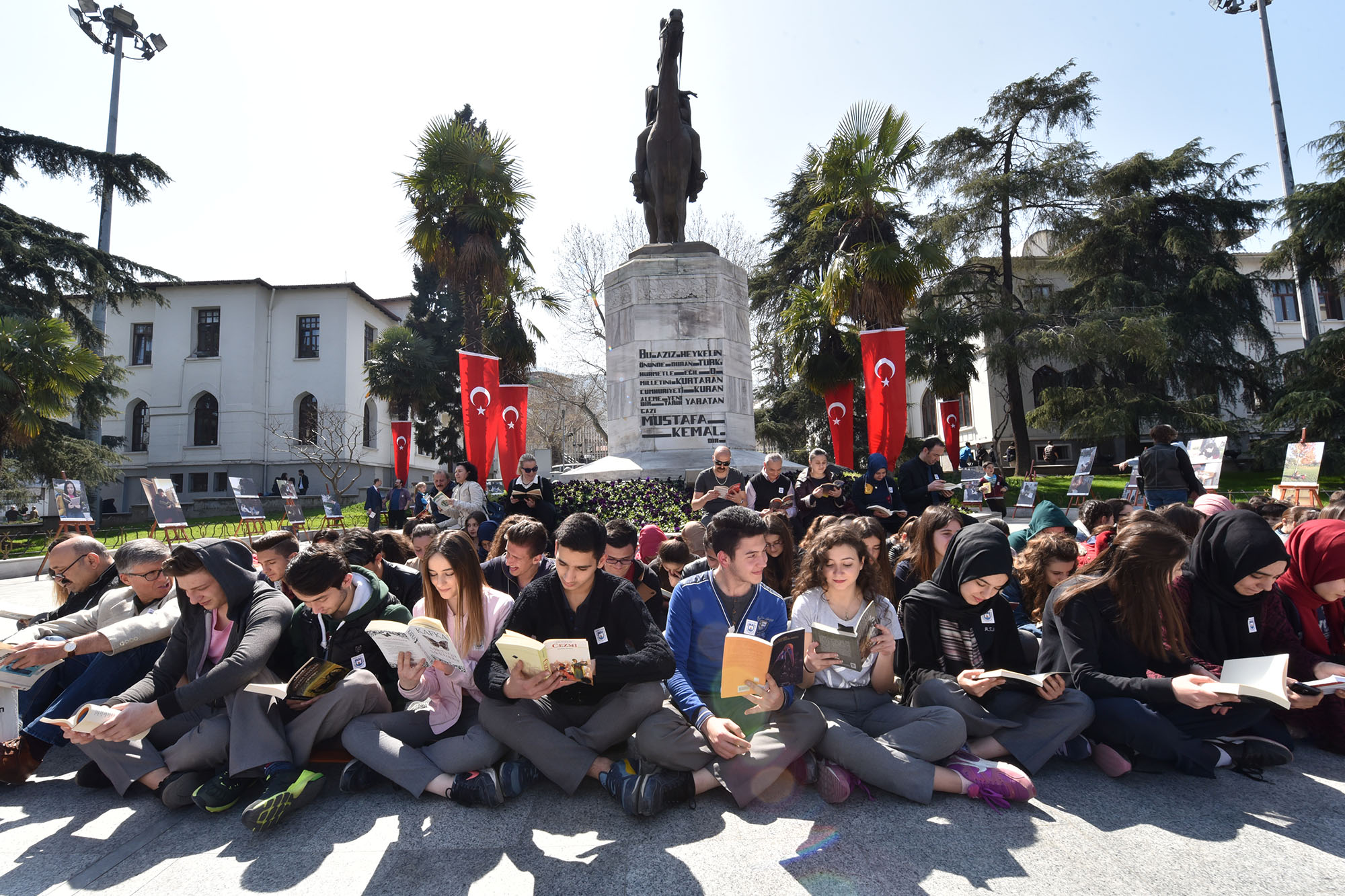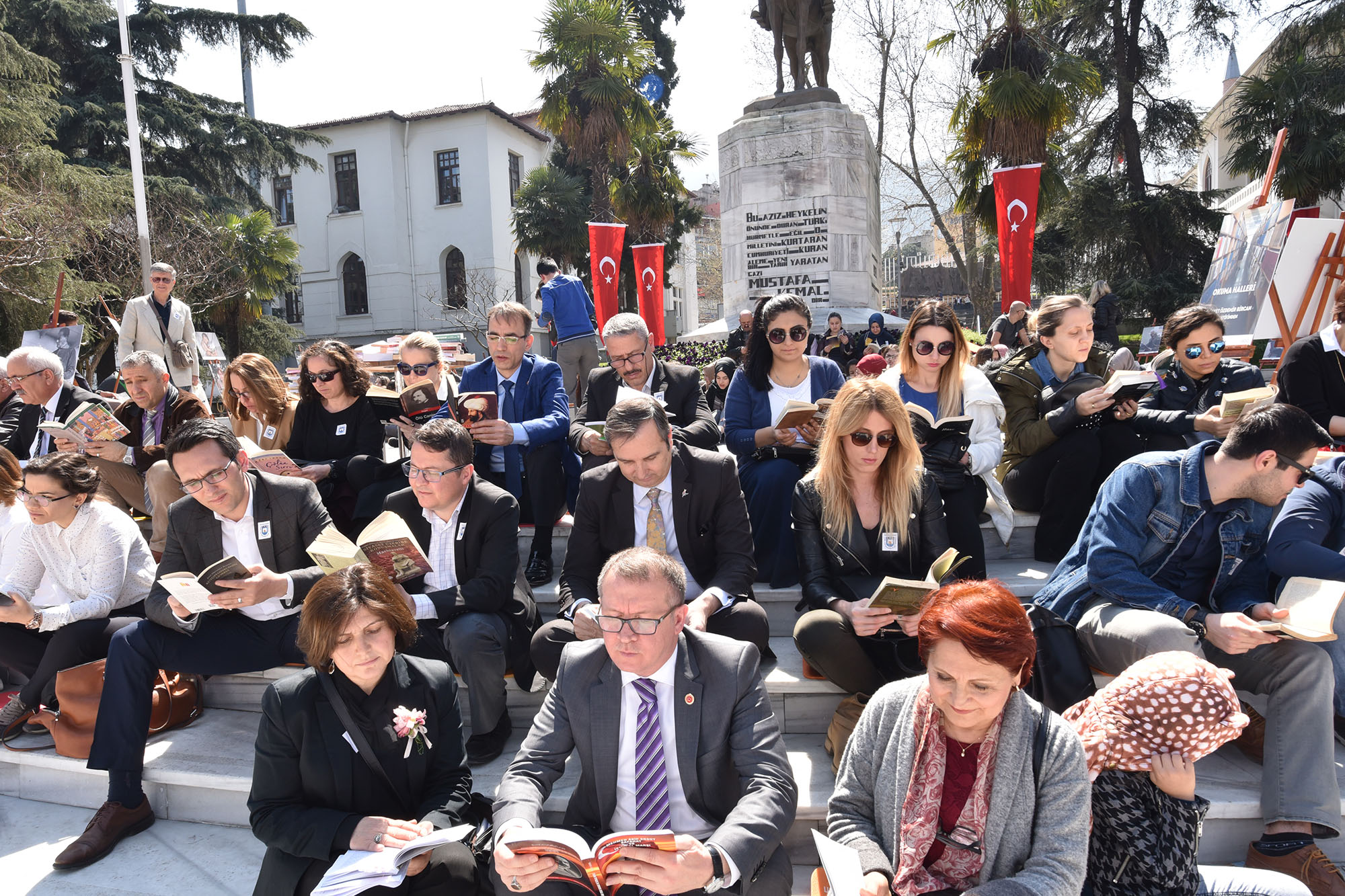 - ‘53. Kütüphaneler Haftası’ etkinlikleri kapsamında ‘İnsan Her Yerde Okur’ fikriyle bir araya gelen vatandaşlar, Heykel’de Atatürk Anıtı önünde hep birlikte kitap okudu.