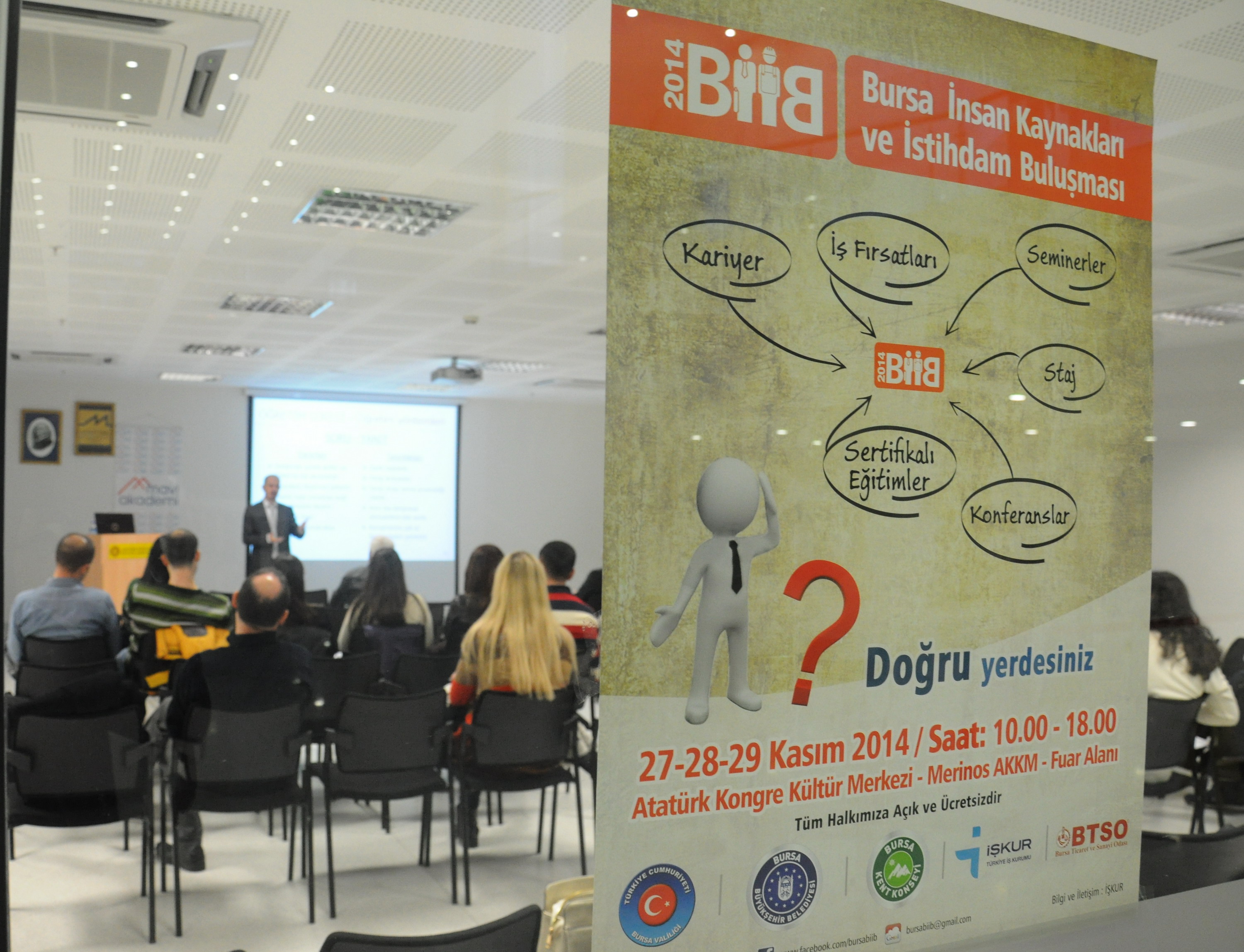 Bursa Valiliği, Bursa Büyükşehir Belediyesi, Bursa Kent Konseyi (BKK), Bursa Çalışma ve İş Kurumu (İŞKUR Bursa) ve Bursa Ticaret ve Sanayi Odası’nın (BTSO) işbirliğiyle yapılan BİİB 2014, zengin içeriğiyle devam ediyor. Atatürk Kongre Kültür Merkezi’nin (Merinos AKKM) tüm salonlarının kullanıldığı programda, bir yandan Fuar Alanı’nda firma temsilcileriyle iş arayanlar buluşurken, bir yandan da konferans, seminer ve sertifikalı eğitimler sürüyor.