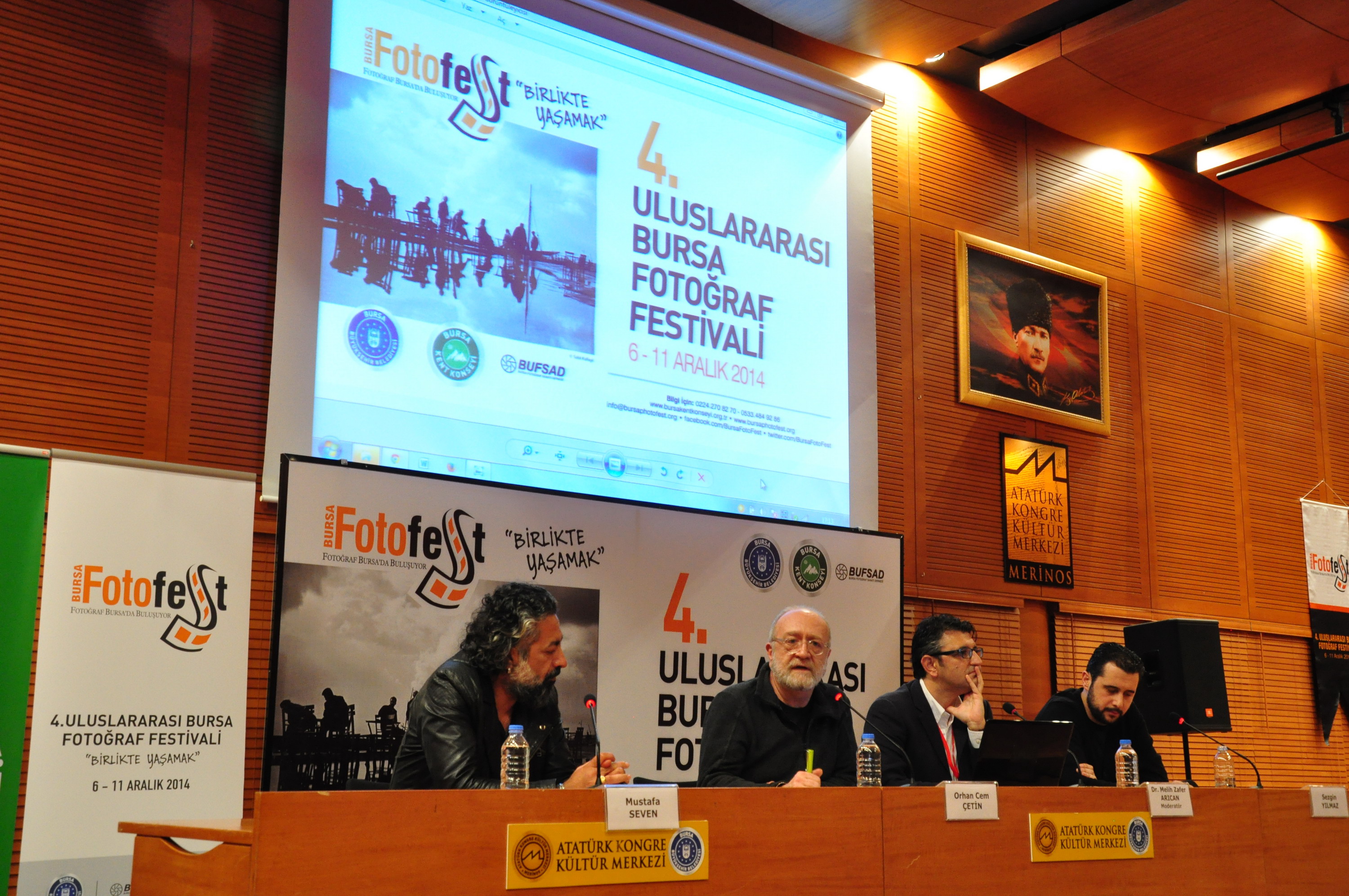 Bursa’yı fotoğraf sanatının merkezi haline getiren 4. Uluslararası BursaFotoFest, Atatürk Kongre Kültür Merkezi’nde zengin içeriğiyle devam ediyor. Merinos Kongre Kafe’deki portfolyo değerlendirmelerinde fotoğraf tutkunları, dünyaca ünlü fotoğraf sanatçıları Carlos Spottorno, İzzet Keribar, Kamil Fırat ve Park Jongwoo ile birebir görüşme imkanı buldu. Merinos AKKM seminer salonlarında ise Prof. Dr. Levend Kılıç tarafından ‘Eski fotoğraf yeni fotoğraf’, Orhan Cem Çetin tarafından ise ‘Fotoğrafçıların birlikte yaşaması’ konulu sunum yapılarak katılımcılara bilgiler aktarıldı.