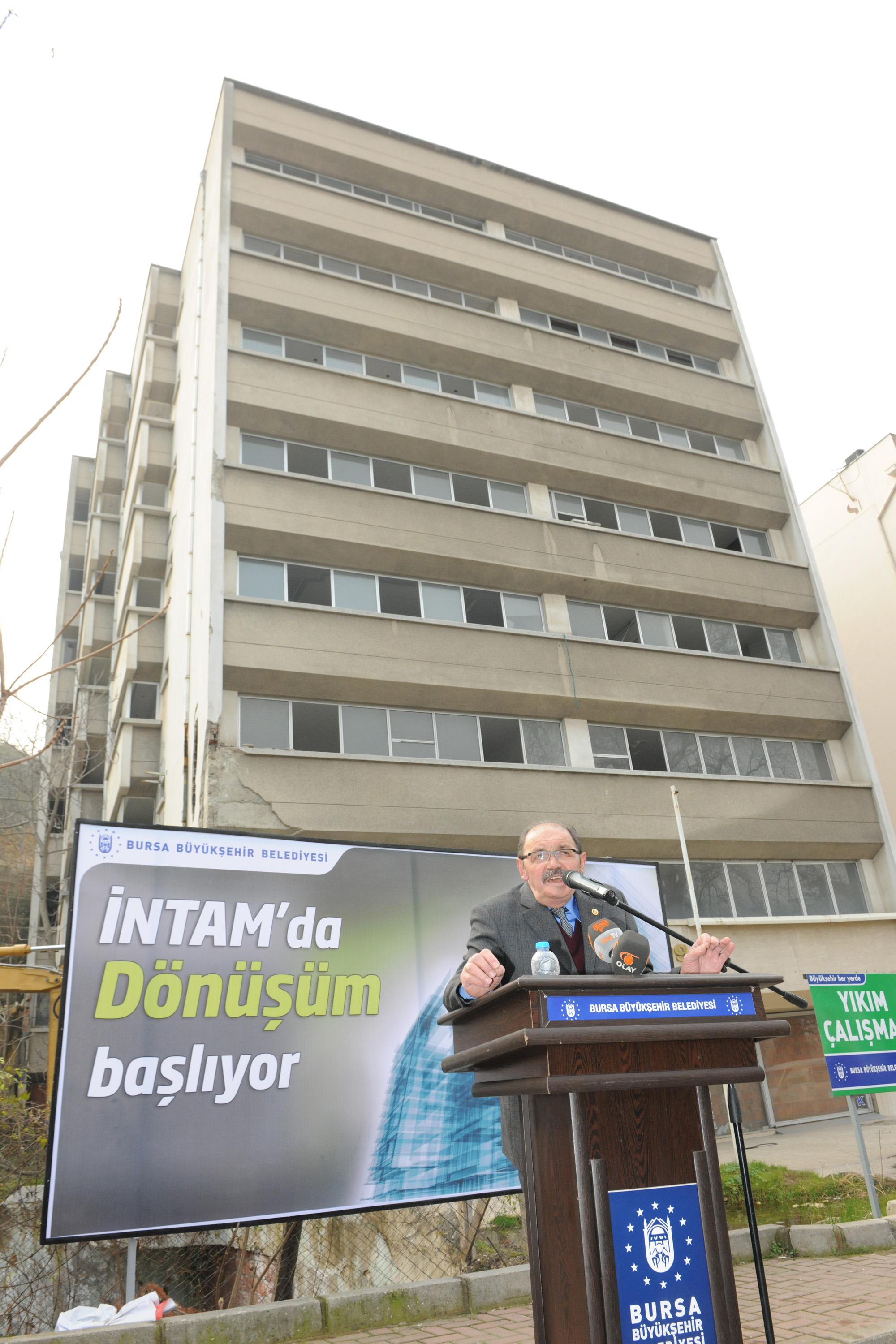 Bursa’yı daha sağlıklı ve yaşanılabilir bir kent haline getirmek amacıyla ulaşımdan çevreye, altyapıdan spora kadar her alanda önemli çalışmalara imza atan Büyükşehir Belediyesi, kentin en prestijli bölgelerinden Çekirge’de 2006 yılında yaşanan heyelan sebebiyle çöken İntam bloklarının bulunduğu alanla ilgili dönüşüm çalışmalarının da startını verdi. Heyelanın ardından çöken İntam 95 ve 97 Bloklarının hemen yanında bulunan ve ağır hasan gördüğü için o günden bu yana boş duran İntam 99 bloğunun yıkımına başlandı. İntam’daki hak sahiplerinin yanı sıra Çekirge halkı tarafından da merakla beklenen yıkım için düzenlenen törene Büyükşehir Belediye Başkanı Recep Altepe’nin yanı sıra Bursa Kent Konseyi Başkanı Mehmet Semih Pala, Çekirge Mahallesi Muhtarı Mehmet Taşkeser, belediye ve il genel meclisi üyeleri, çevre mahalle muhtarları, Büyükşehir Belediyesi bürokratları ve hak sahipleri katıldı.