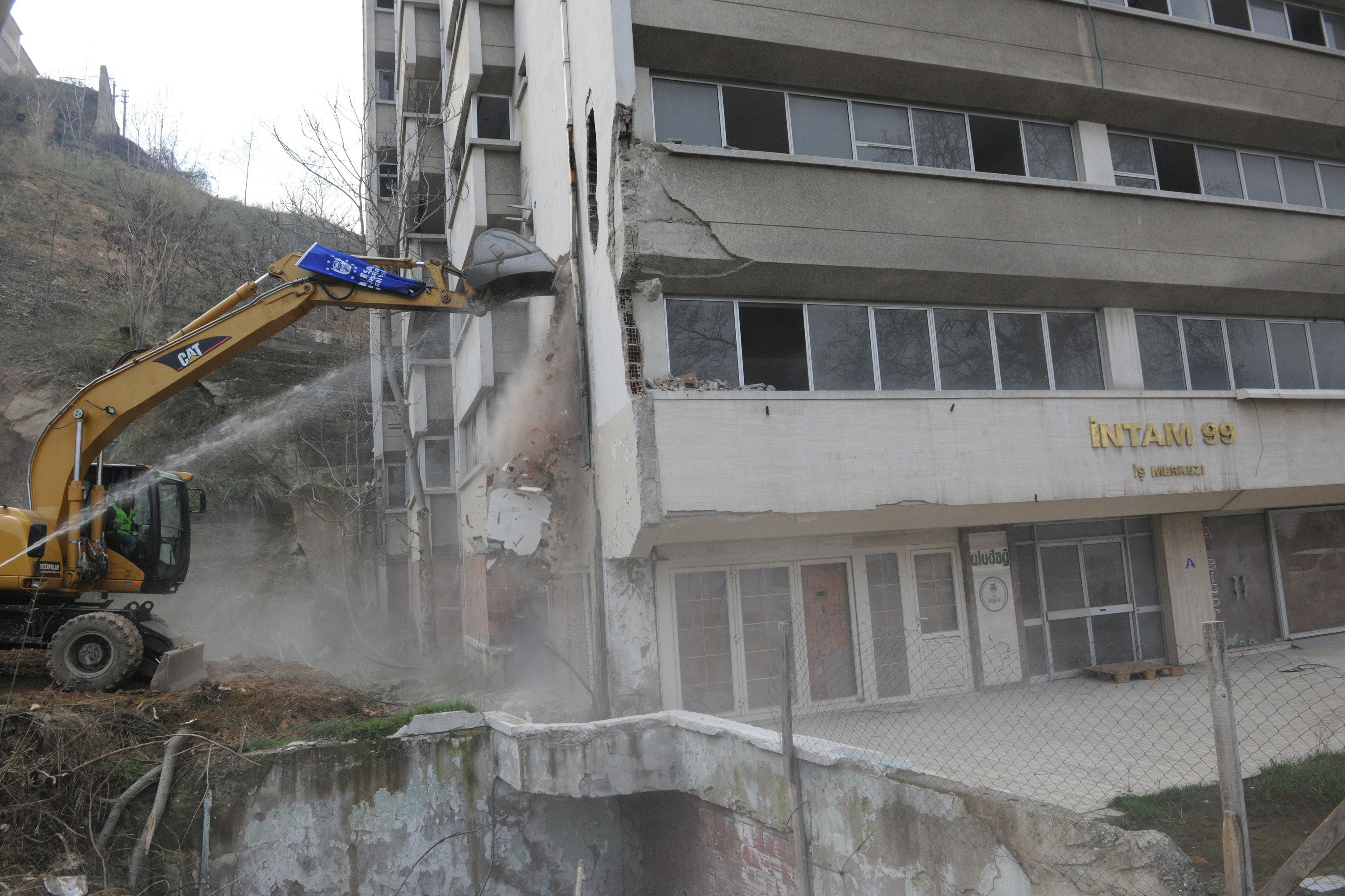 - BURSA BÜYÜKŞEHİR BELEDİYESİ, 2006 YILINDA YAŞANAN HEYELANIN ARDINDAN GÖÇEN İNTAM BLOKLARININ BULUNDUĞU ALANDAKİ DÖNÜŞÜM ÇALIŞMALARINI, AĞIR HASARLI OLDUĞU İÇİN BOŞ DURAN 99 BLOĞUNUN YIKIMIYLA BAŞLATTI.