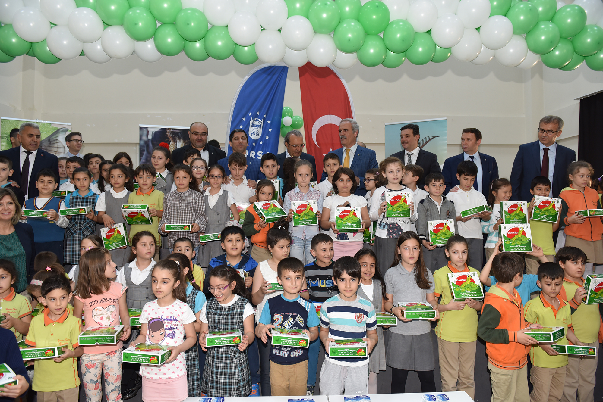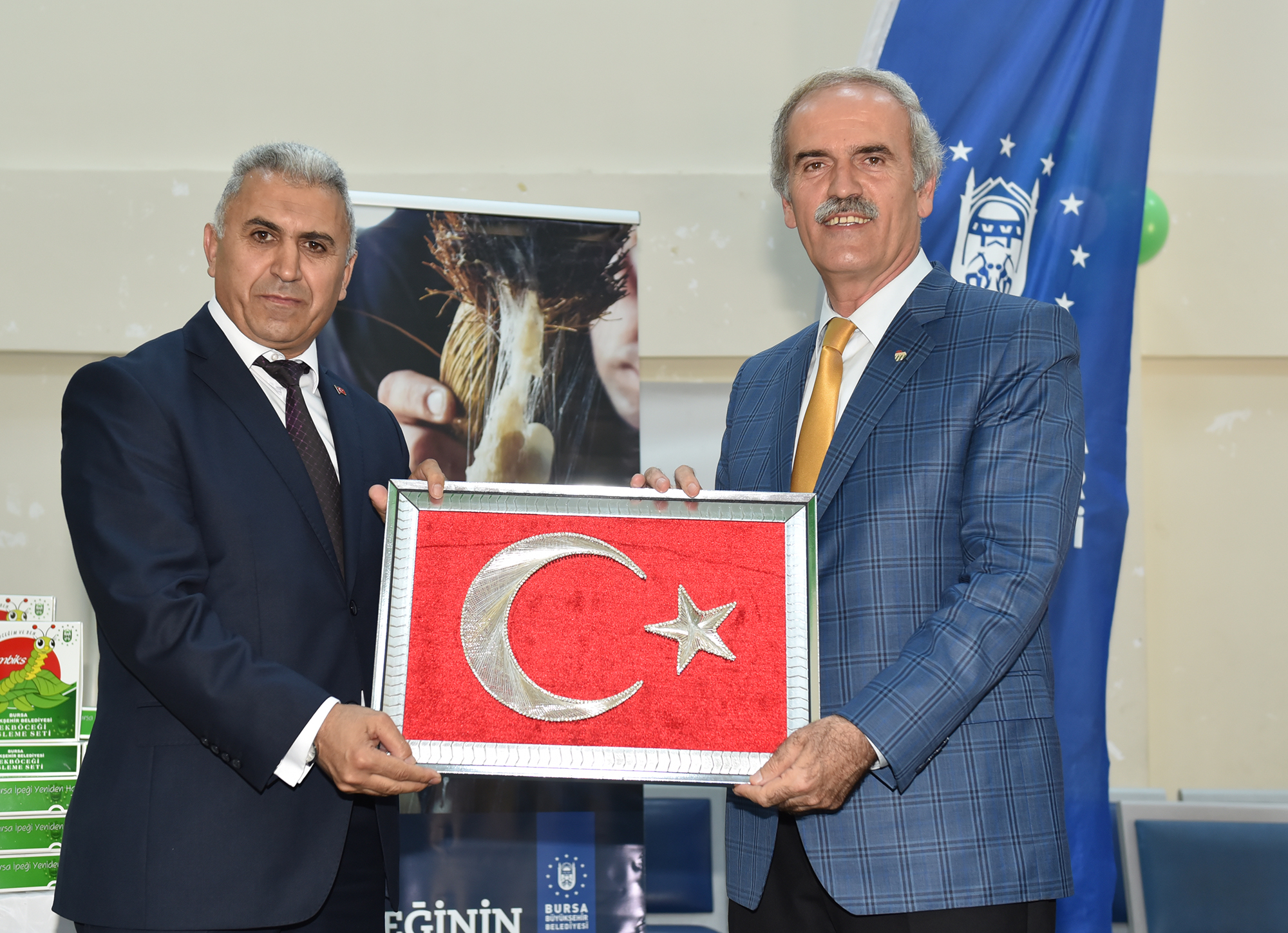 Yıldırım Kaymakamı Mehmet Aydın ve Yunus Emre İlkokulu Müdürü Erdal Karataş da Bursa’nın en önemli değerini yeniden canlandırmak için verdiği mücadele nedeniyle Büyükşehir Belediye Başkanı Recep Altepe’ye teşekkür etti. Okul Müdürü Karataş, günün anısına Başkan Altepe, Türk Bayrağı işli bir tablo hediye etti.