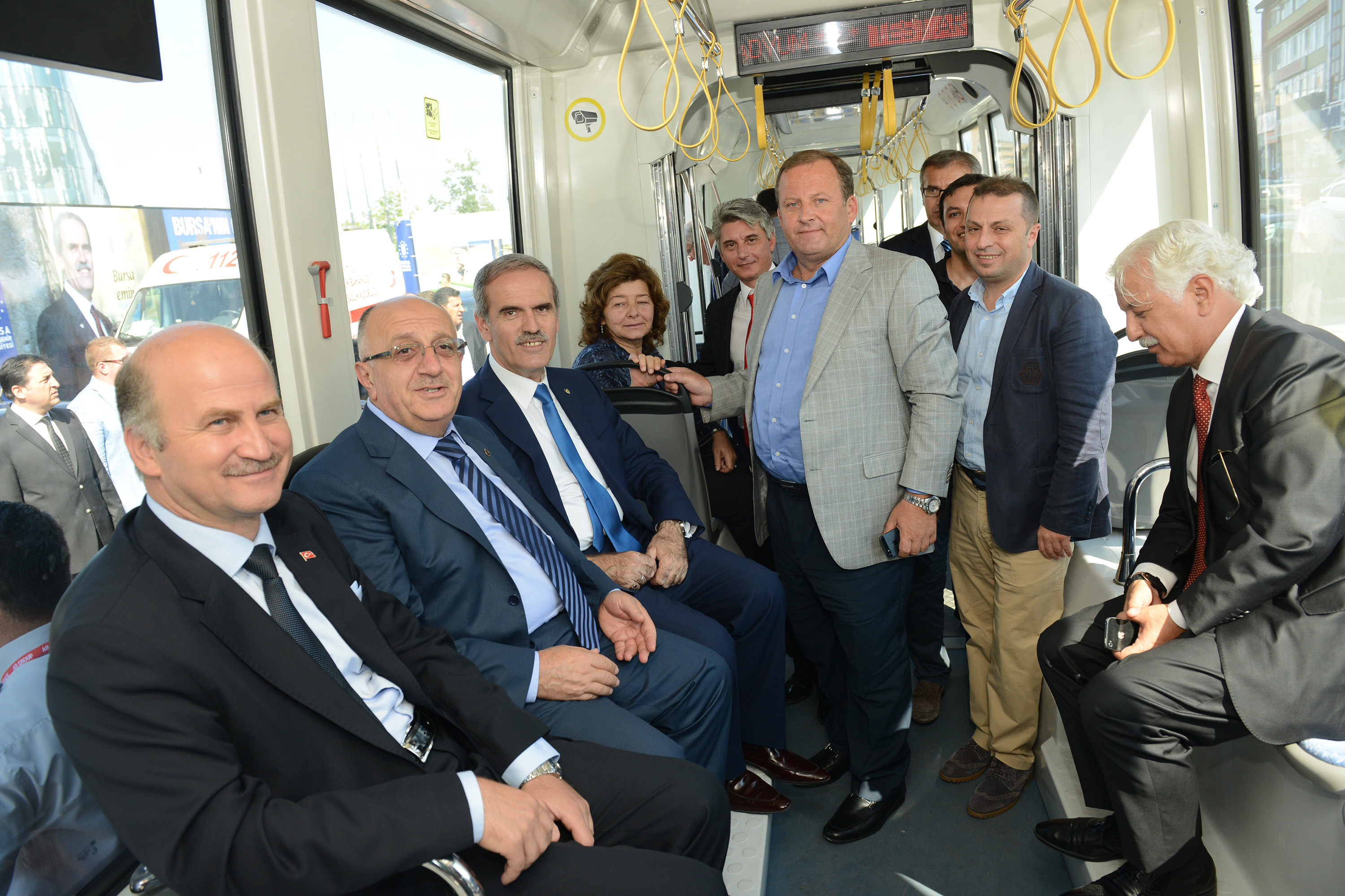 Ulaştırma Bakan Yardımcısı Yahya Baş, bakanlık yetkilileriyle birlikte geldiği Bursa’da ipekböceği tramvayının test sürüşüne katıldı. Kent merkezini raylı sistem ağıyla buluşturan Heykel – Garaj T1 hattı güzergahında gerçekleşen test sürüşüne katılmaktan keyif aldığını belirten Bakan Yardımcısı Baş, “Türkiye’de ilk kez imal edilen ve yerli sertifikasyonu olan bir araçta böyle bir denemeyi gerçekleştirmek mutluluk verici. Çok eğimli rampalarda bile problemsiz bir seyahat gerçekleştirdik. Bu sanayinin Bursa’da başlayıp ülke çapına yayılarak hızlı bir şekilde gelişmesini istiyoruz. Bu konuda gayreti olan, işe öncülük eden Bursa Büyükşehir Belediye Başkanı Recep Altepe’ye, üretici firma yetkililerine ve emeği geçenlere teşekkür ediyorum” diye konuştu.