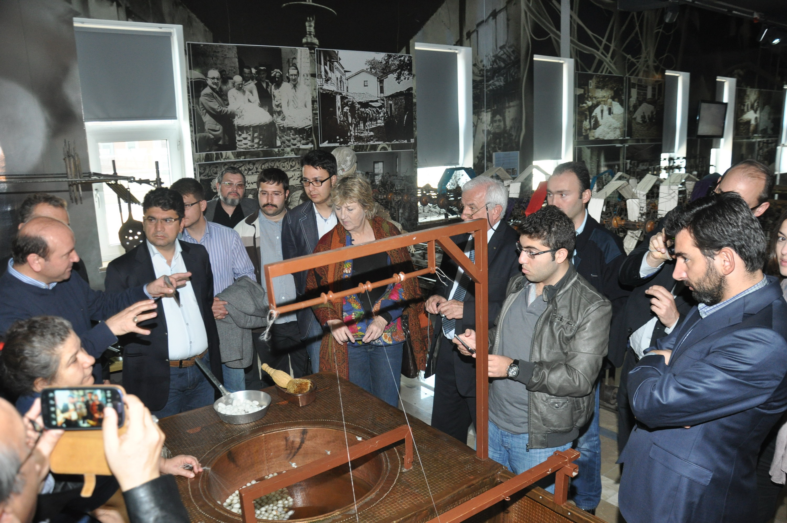 ‘Uluslararası İpekyolu Kongresi’ nedeniyle yurtiçi ve yurtdışından İstanbul’a gelen akademisyenler, kongre sonrasında İpekyolu’nun en önemli duraklarından olan Bursa’yı da ziyaret ettiler. Bursa’da, Büyükşehir Belediyesi bünyesinde oluşturulan Tekstil Müzesi’nde incelemelerde bulunan akademisyenler, kentin ipekçilik tarihini de yakından gözlemleme şansı buldular. Müzedeki ipekçilik bölümünde ipek üretiminde kullanılan makineleri de ilgiyle inceleyip fotoğraflayan akademisyenler, merak ettikleri konularda detaylı bilgiler aldılar.