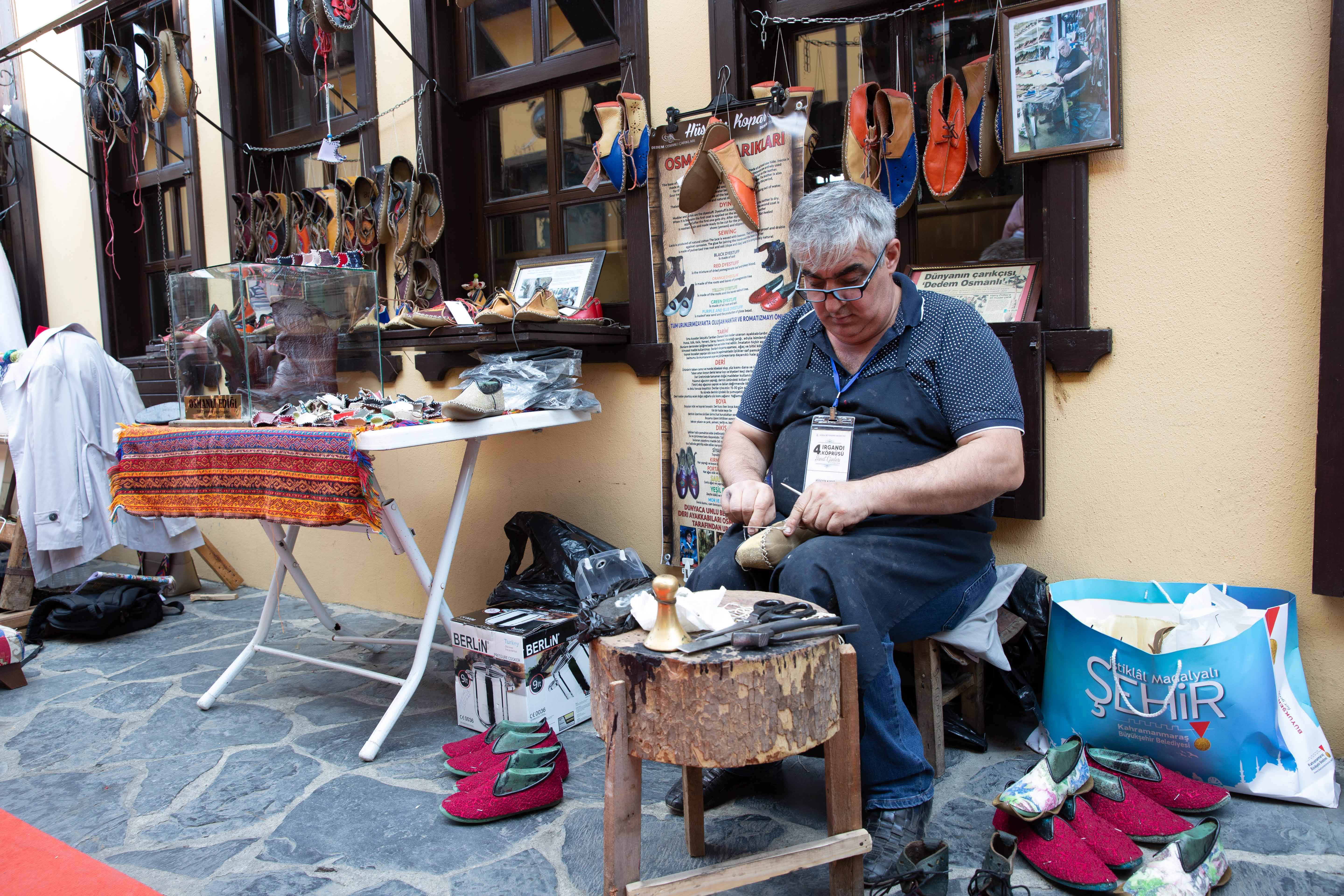 Programın, 12-14 Ekim tarihleri arasında gerçekleştirildiğini belirten Kocabıyık, “Sanat günlerimize bu yıl Türkiye’nin çeşitli illerinden, Kültür Bakanlığı’na bağlı, alanında tanınmış farklı sanat dallarından sanatçılar katılım sağlıyor. Bu kapsamda Eskişehir, Yalova, Tokat, İzmir, İstanbul, Edirne, Burdur, Mardin ve Kahramanmaraş’tan gelen konuklarımız var. Sanatçılarımız burada Osmanlı Çarıkları, cam süsleme, ipekçilik, Bursa bıçağı, keçe, yazma, boynuz işleme, telkâri, talika, lüle taşı, tel kırma, ebru, tezhip, minyatür, ahşap oymacılığı, nakkaşlık, neyzen, resim sanatları ve çini gibi geleneksel Türk el sanatları branşlarında ürünlerini sergiliyor” diye konuştu.