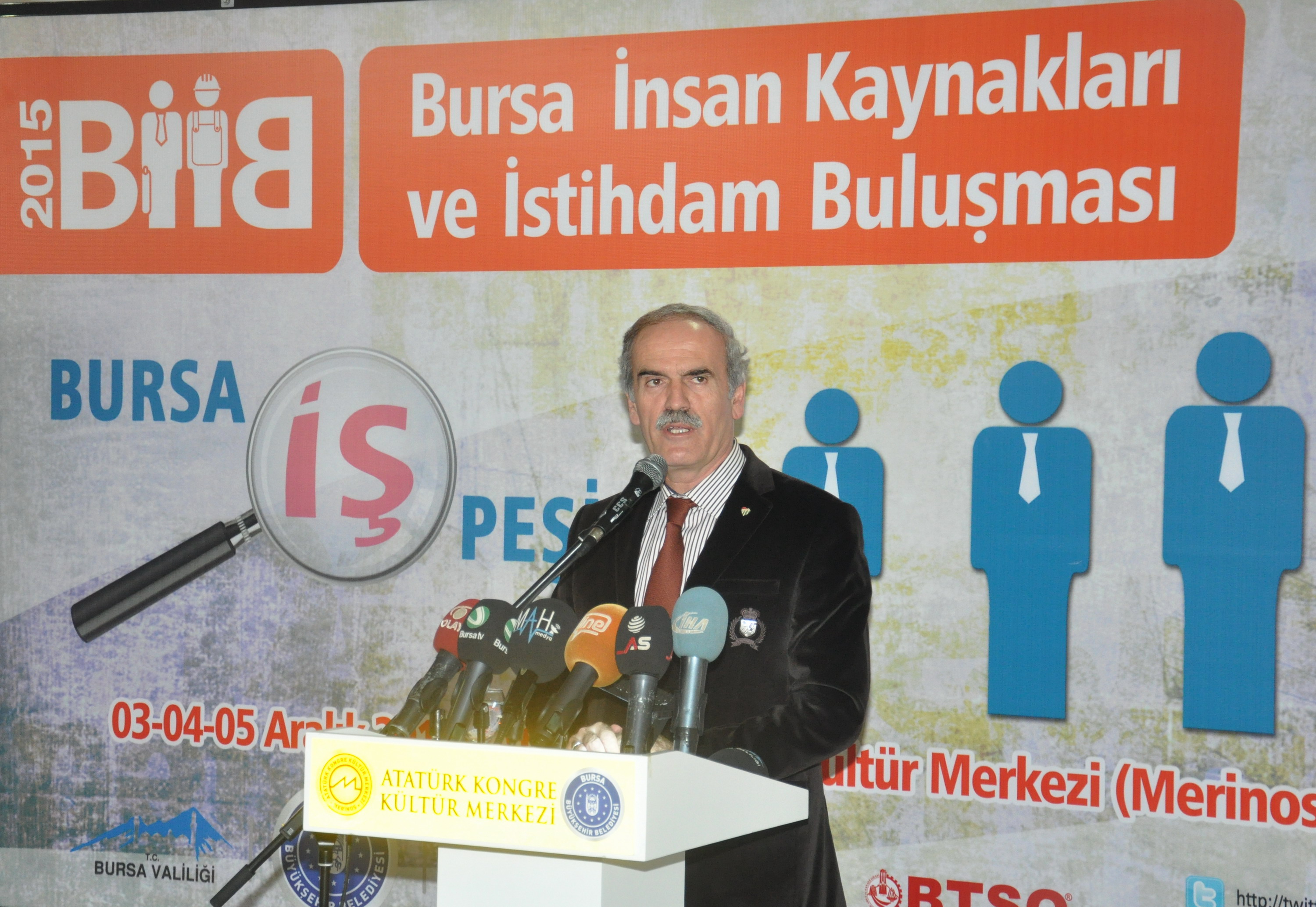 - BÜYÜKŞEHİR BELEDİYESİ, BURSA VALİLİĞİ, BURSA KENT KONSEYİ, İŞ-KUR BURSA VE BTSO ORTAKLIĞINDA HAZIRLANAN BURSA İNSAN KAYNAKLARI VE İSTİHDAM BULUŞMASI (BİİB’2015), MERİNOS AKKM FUAR ALANI’NDA KAPILARINI AÇTI.