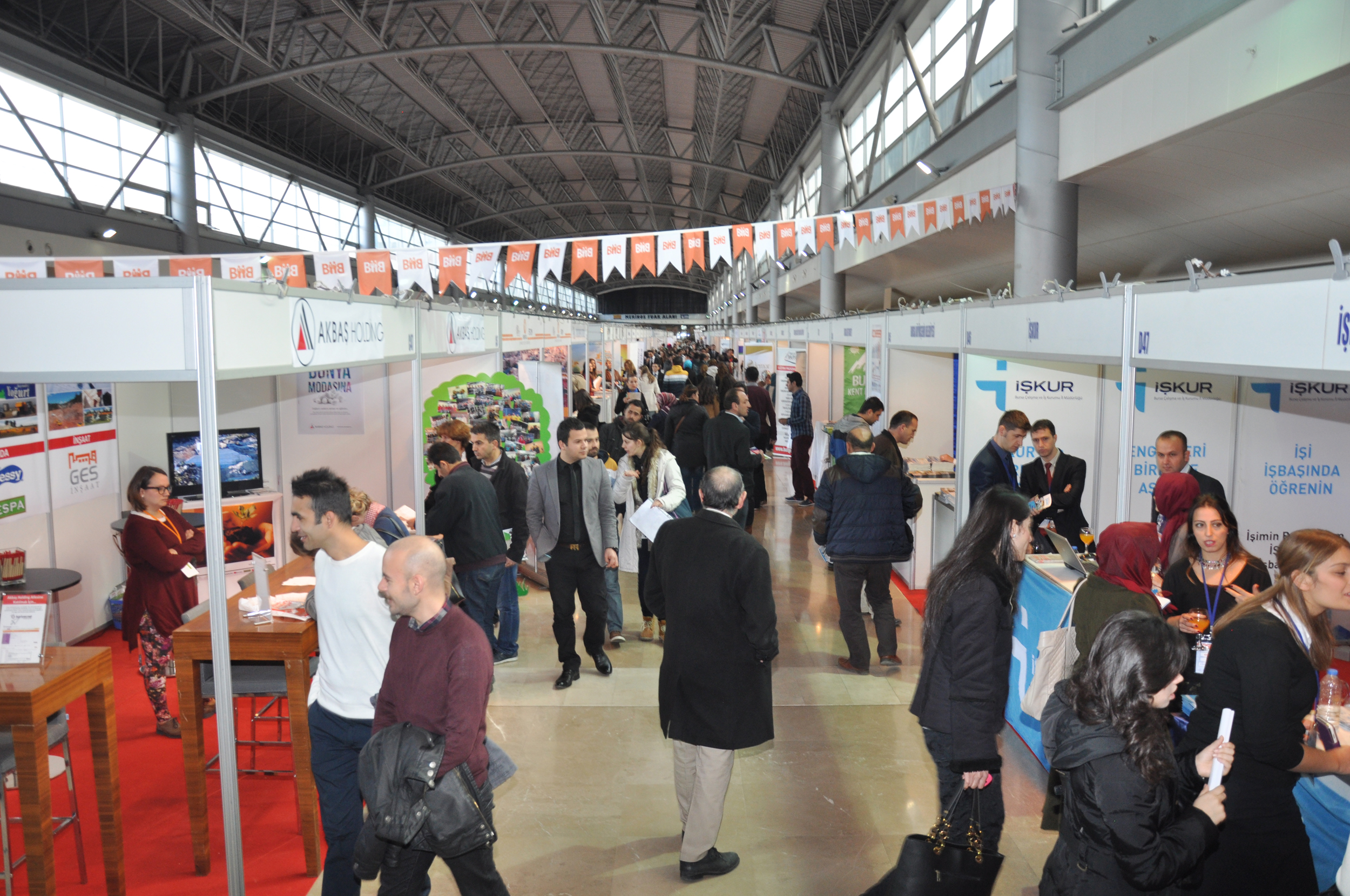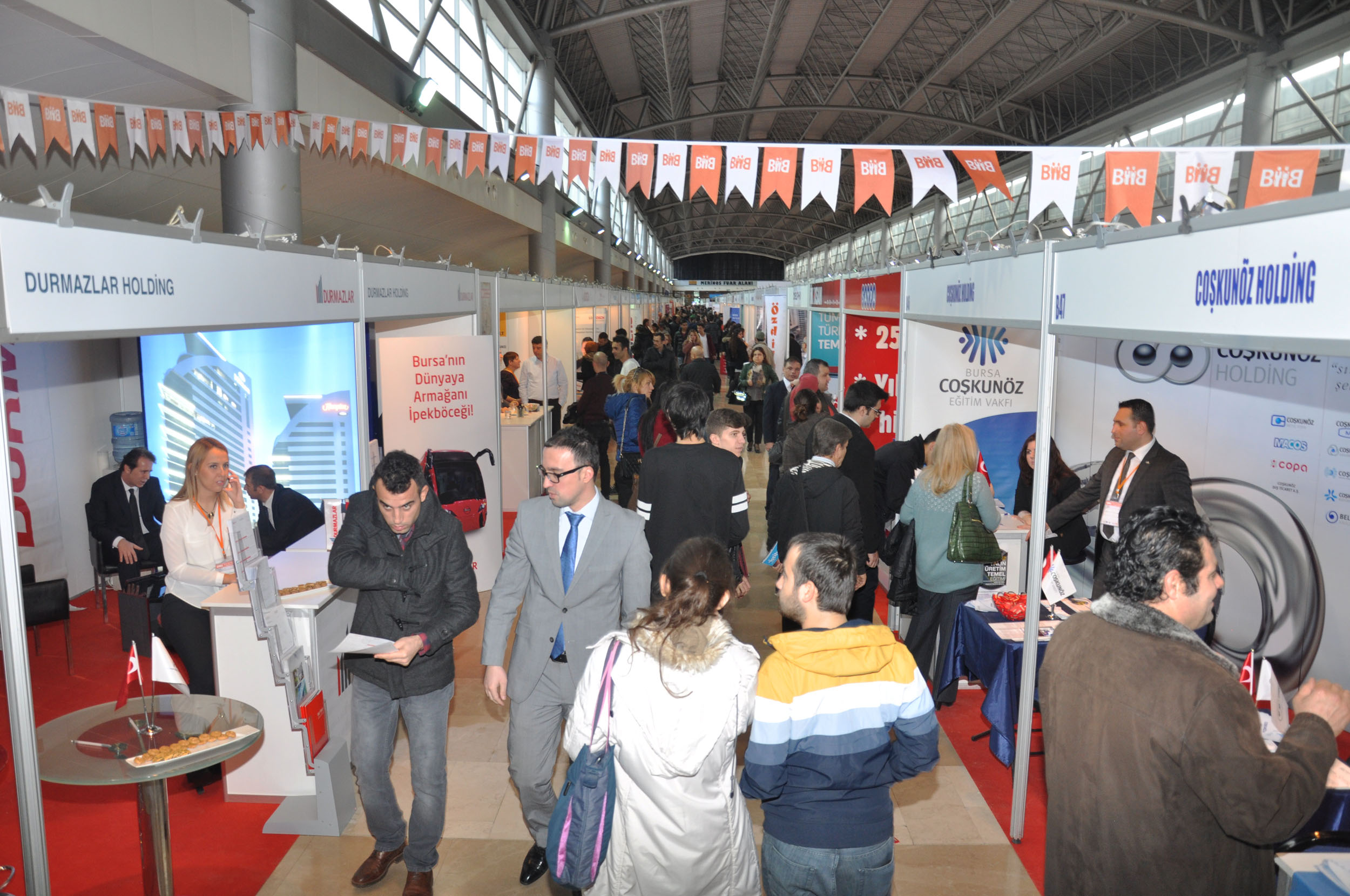 Bursa Valiliği, Bursa Büyükşehir Belediyesi, Bursa Kent Konseyi (BKK), Bursa Çalışma ve İş Kurumu (İŞKUR Bursa) ve Bursa Ticaret ve Sanayi Odası’nın (BTSO) işbirliğiyle bu yıl 3’üncüsü yapılan BİİB, Atatürk Kongre Kültür Merkezi (Merinos AKKM) Fuar Alanı’nda kapılarını açtı. Toplam 163 firmanın 187 stantla yer aldığı BİİB, 3 gün boyunca işverenlerle iş arayanları buluşturacak. 3 konferans ve 11 sertifikalı eğitim programının yanı sıra 36 firma da çeşitli alanlarda sunumlar yapacak.