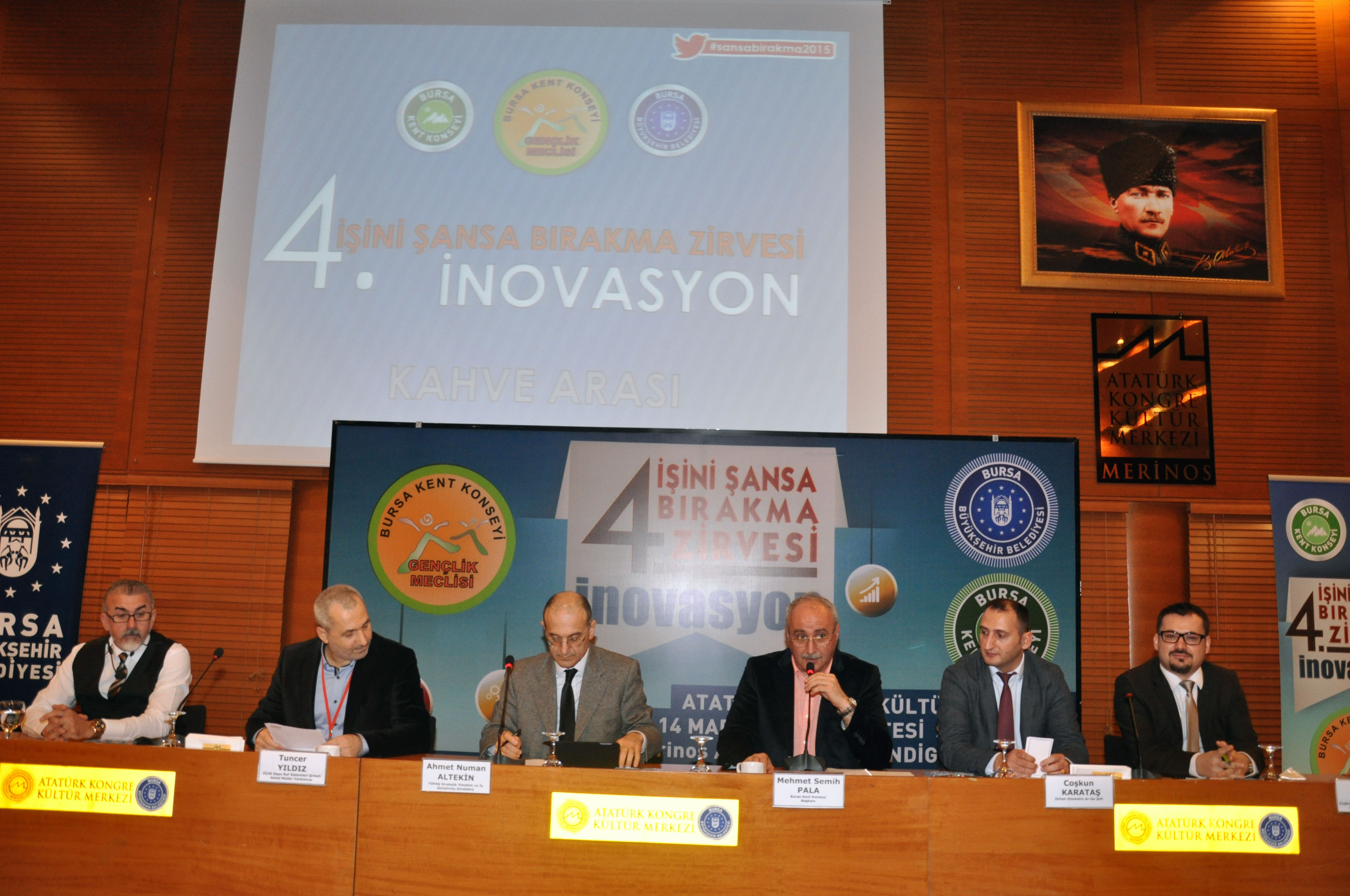 Oturumun moderatörlüğünü üstlenen Bursa Kent Konseyi (BKK) Başkanı Semih Pala, Bursa Kent Konseyi ve Büyükşehir Belediyesi’nin her zaman gençlere destek olduğunu söyledi. Türk sanayisinin önemli kuruluşlarının üst düzey yöneticilerinin de gençlere katkıda bulunmak üzere programa katıldığı belirten Pala, gençlerin de paylaşılan deneyimlerden yararlanarak kendilerine yön çizeceğini ifade etti. Gençlerin artık nerede ve nasıl konuşacağını bilen insanlar olduğunu aktaran Pala, yeni nesille Türkiye’nin daha da büyüyeceğini dile getirdi. Pala, inovasyonu yeni bir fikir ve değer kazandıran uygulama olarak değerlendirdi.