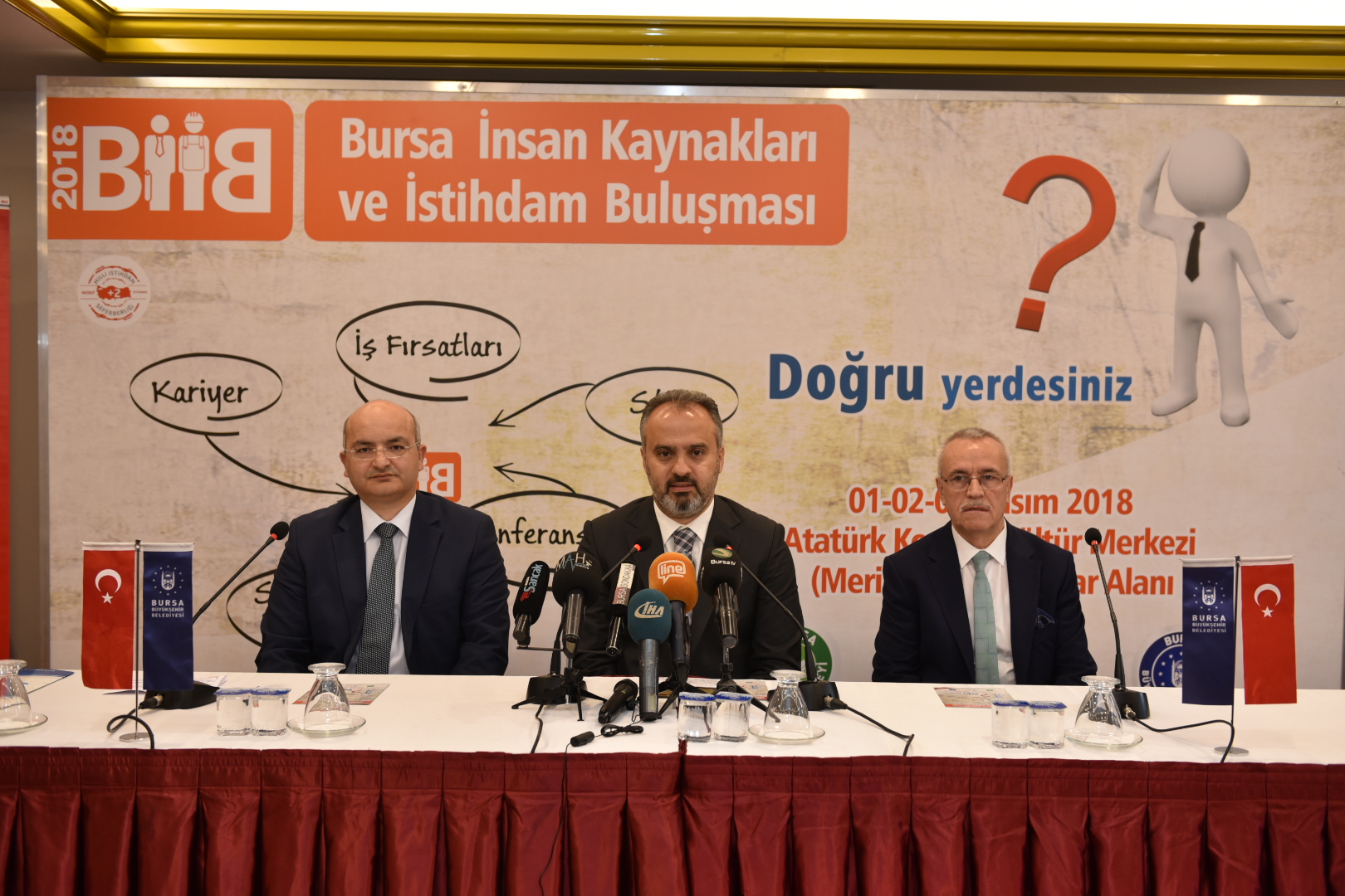 Bursa Büyükşehir Belediyesi, Bursa Kent Konseyi (BKK), Bursa Çalışma ve İş Kurumu (İŞKUR) tarafından düzenlenen Bursa İnsan Kaynakları ve İstihdam Buluşması, bu yıl da iş arayanlarla işverenlerini bir araya getirecek. İnsan kaynakları ve istihdam alanında Türkiye’nin en kapsamlı organizasyonlarından biri olan etkinliğe 10 holding ve 20 şirketler grubunun da yer aldığı toplamda 191 firma 200 stantla katılacak. Katılımcıların firmalarla iş görüşmeleri yapmalarına imkan sunacak organizasyonda aynı zamanda Hakan Mengüç, Şermin Yaşar ve Ahmet Şerif İzgören’in katılımları ile 3 önemli konferans gerçekleştirilecek. Katılımcıların kişisel gelişmelerine katkı sağlamak amacıyla 30 sertifikalı seminer yapılacak. Katılımcıların, fuar alanına, konferanslara ve sertifikalı seminerlere ücretsiz olarak katılabileceği dev organizasyonunun tanıtım toplantısı, Tayyare Kültür Merkezi’nde yapıldı. Bursa Çalışma ve İş Kurumu İl Müdürü Feyzullah Eren Türkmen ile Bursa Kent Konseyi Başkanvekili Şuayip Toprak’ın da katıldığı toplantıda konuşan Bursa Büyükşehir Belediye Başkanı Alinur Aktaş, nitelikli insan gücünün önemine dikkat çekti.