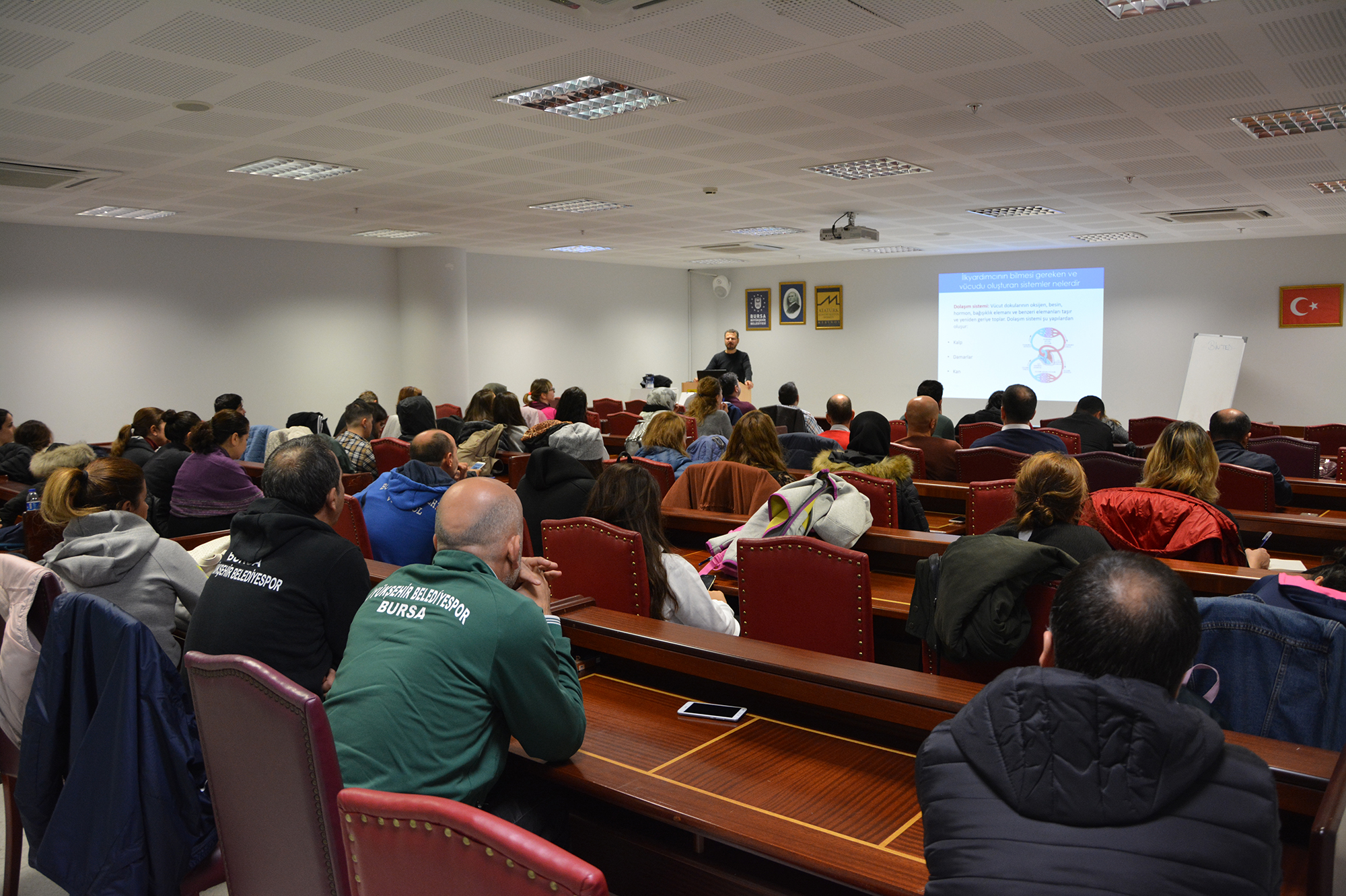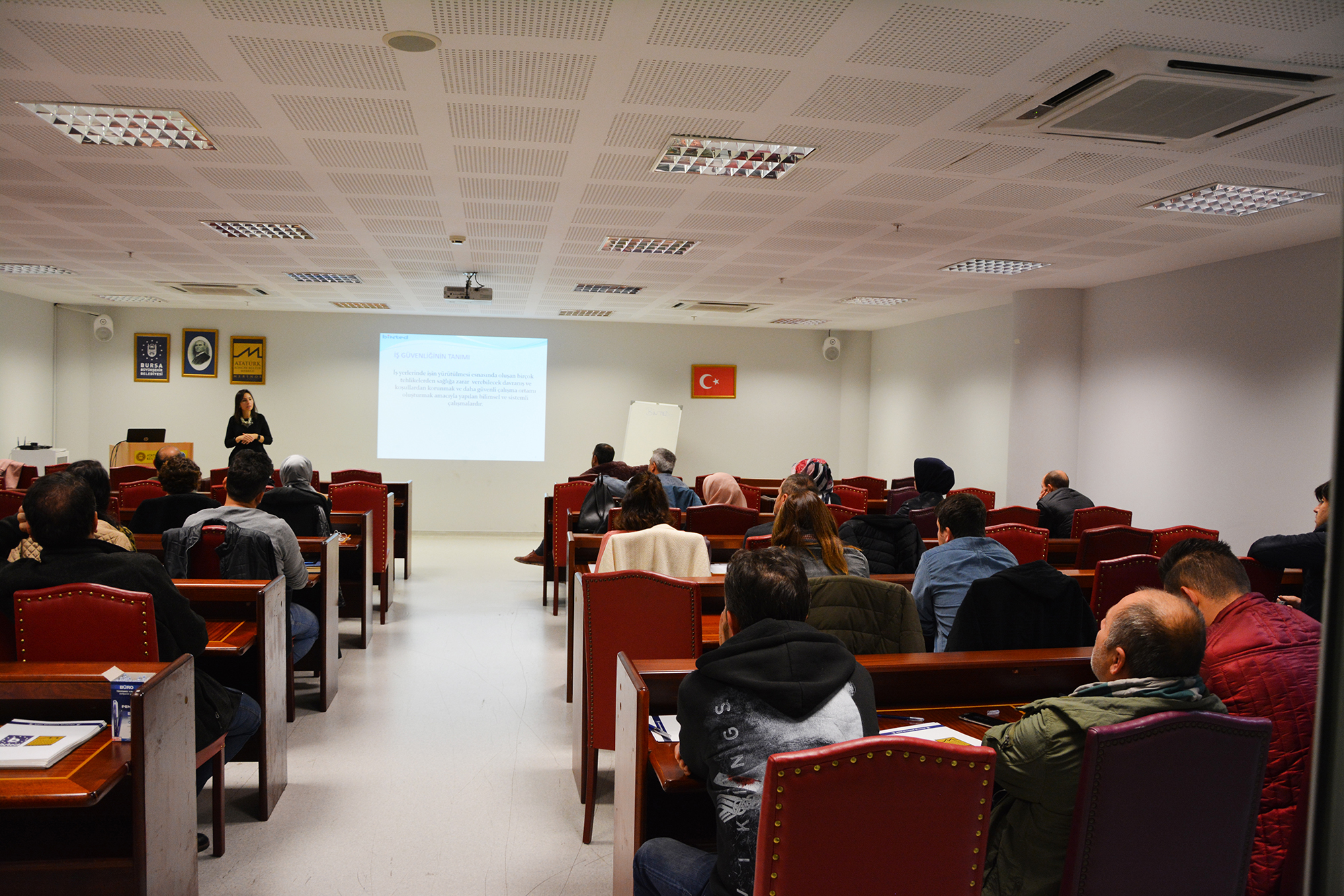 Atatürk Kongre Kültür Merkezi Seminer salonundaki eğitime Bursa Büyükşehir Belediyesi Gençlik ve Spor Hizmetleri Şube Müdürlüğü, Engelliler Şube Müdürlüğü ve Müzeler Şube Müdürlüğü bünyesinde çalışan BİNTED personeli katıldı. Genel, teknik ve sağlık konularını içeren eğitimde, iş sağlığı ve güvenliğin sağlanması için dikkat edilecek konular üzerinde duruldu.
