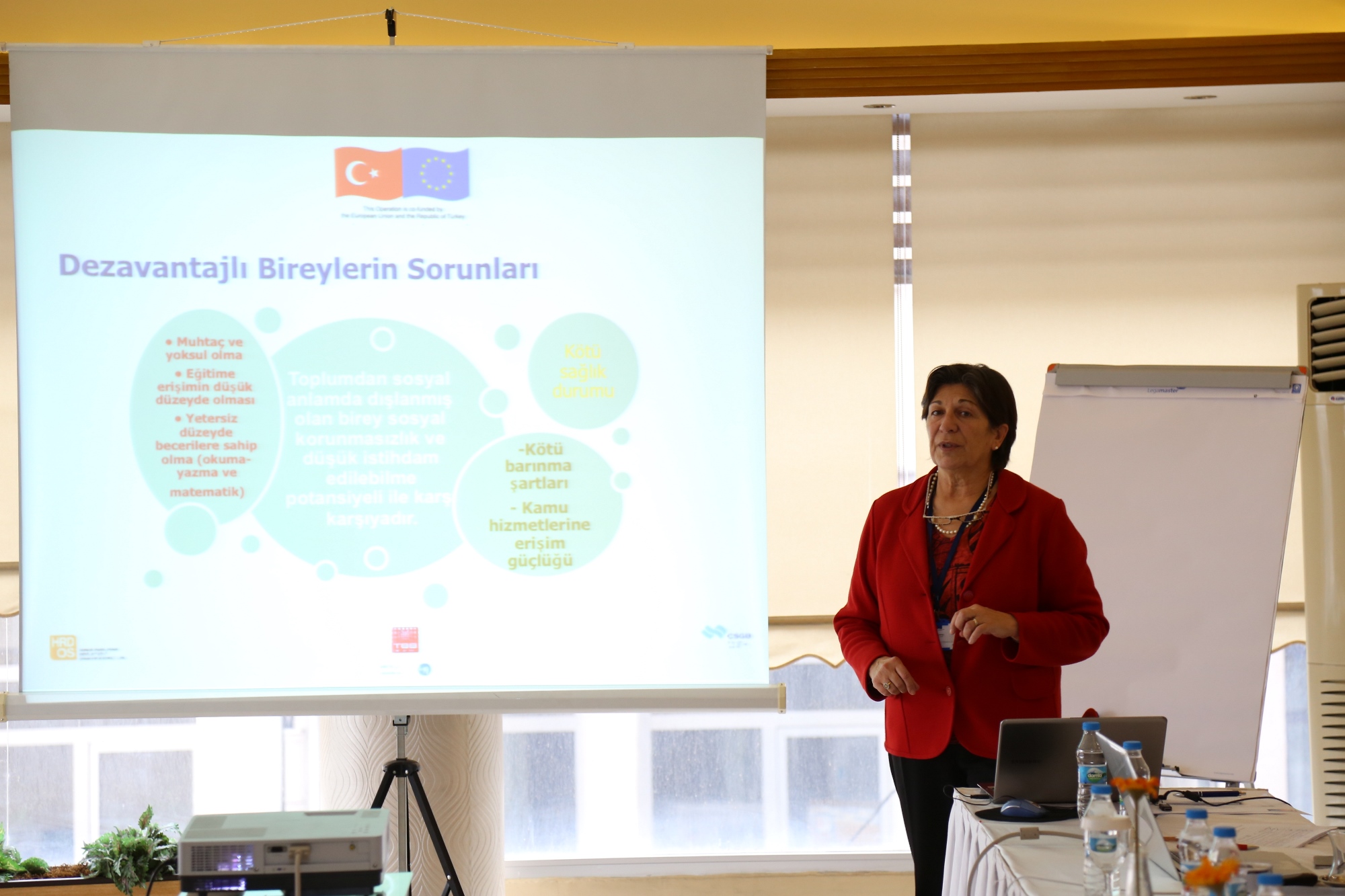 Başkanvekili Karlık’ın ardından Proje Koordinatörü Cleofe Guardigli tarafından projenin nasıl yürütüleceğine ilişkin bilgiler verildi. Cleofe, birebir ihtiyaç analizi yapmak suretiyle dezavantajlı bireyleri eğitime ve istihdama yönlendirmek istediklerini, ayrıca kamuoyu ile işverenlere yönelik farkındalık çalışmaları yapacaklarını söyledi.