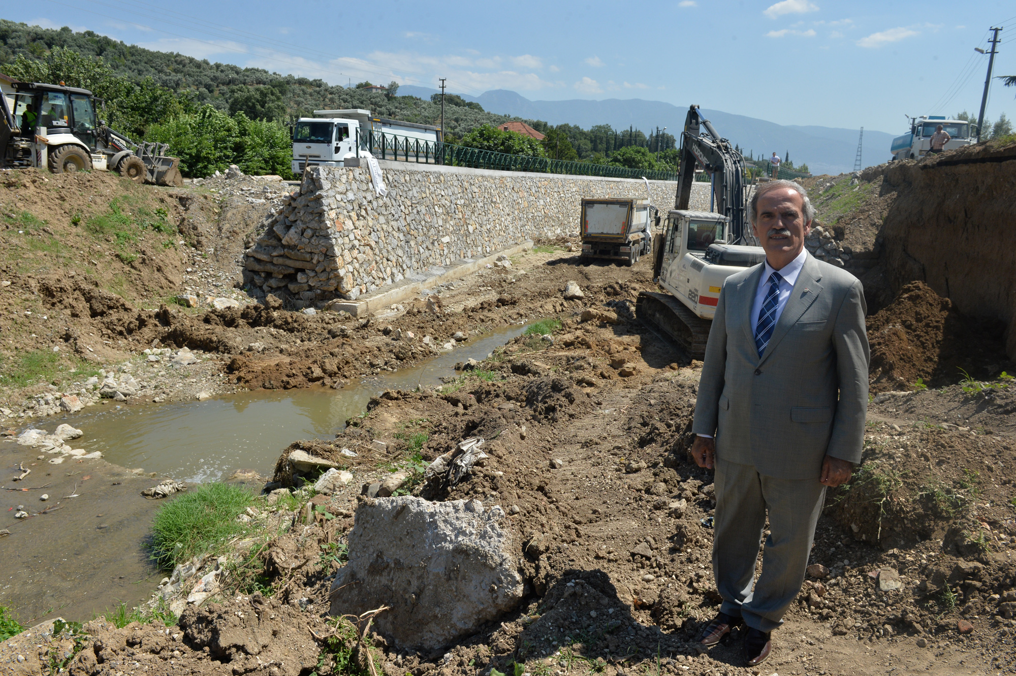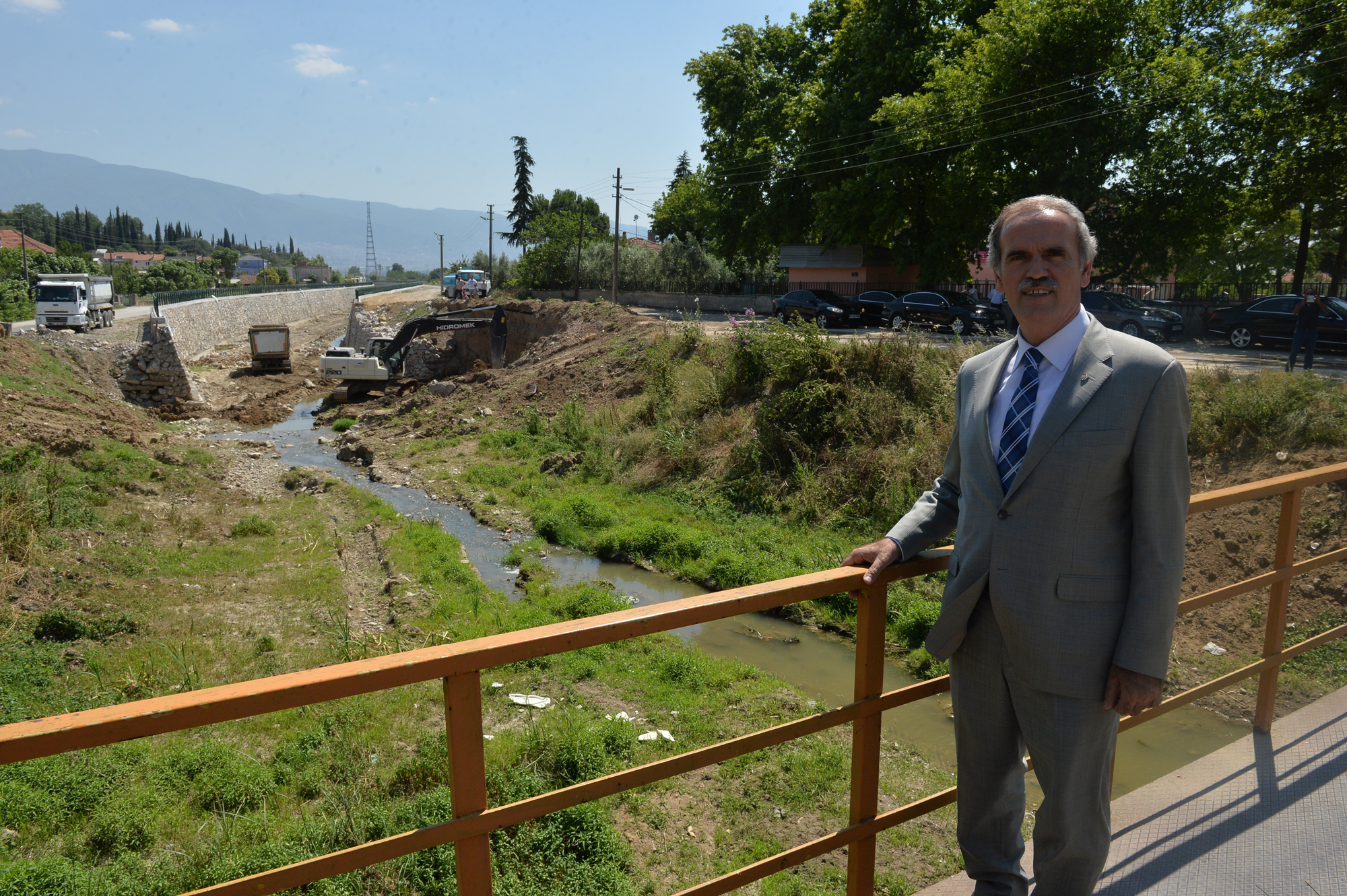 Büyükşehir Belediye Başkanı Recep Altepe, beraberindeki Büyükşehir Belediyesi Genel Sekreteri Seyfettin Avşar ile birlikte İsmetiye Deresi’nde devam eden çalışmaları yerinde inceledi. Çalışmalar hakkında BUSKİ Genel Müdürü İsmail Hakkı Çetinavcı’dan bilgi alan Başkan Altepe, Bursa’nın daha sağlıklı ve yaşanabilir bir kent olması hedefiyle altyapı ve dere ıslah çalışmalarına büyük önem verdiklerinin altını çizdi. Çevredeki yerleşim birimlerinin yanı sıra sanayi tesislerinin atıklarına da maruz kalan İsmetiye Deresi’ndeki ıslah çalışmalarının da startını verdiklerini dile getiren Başkan Altepe, “Gökdere, Hacivat Deresi ve Yunuseli Kanalı’nda olduğu gibi burada da ıslah çalışmasının yanında derenin her iki yanında yürüyüş yolları ve rekreasyon alanları olacak. Gerek dere yatağının sağlıklı hale getirilmesi, korkuluk çalışmaları ve gerekse rekreasyon çalışmaları ile İsmetiye Mahallesi prestij kazanacak” dedi.