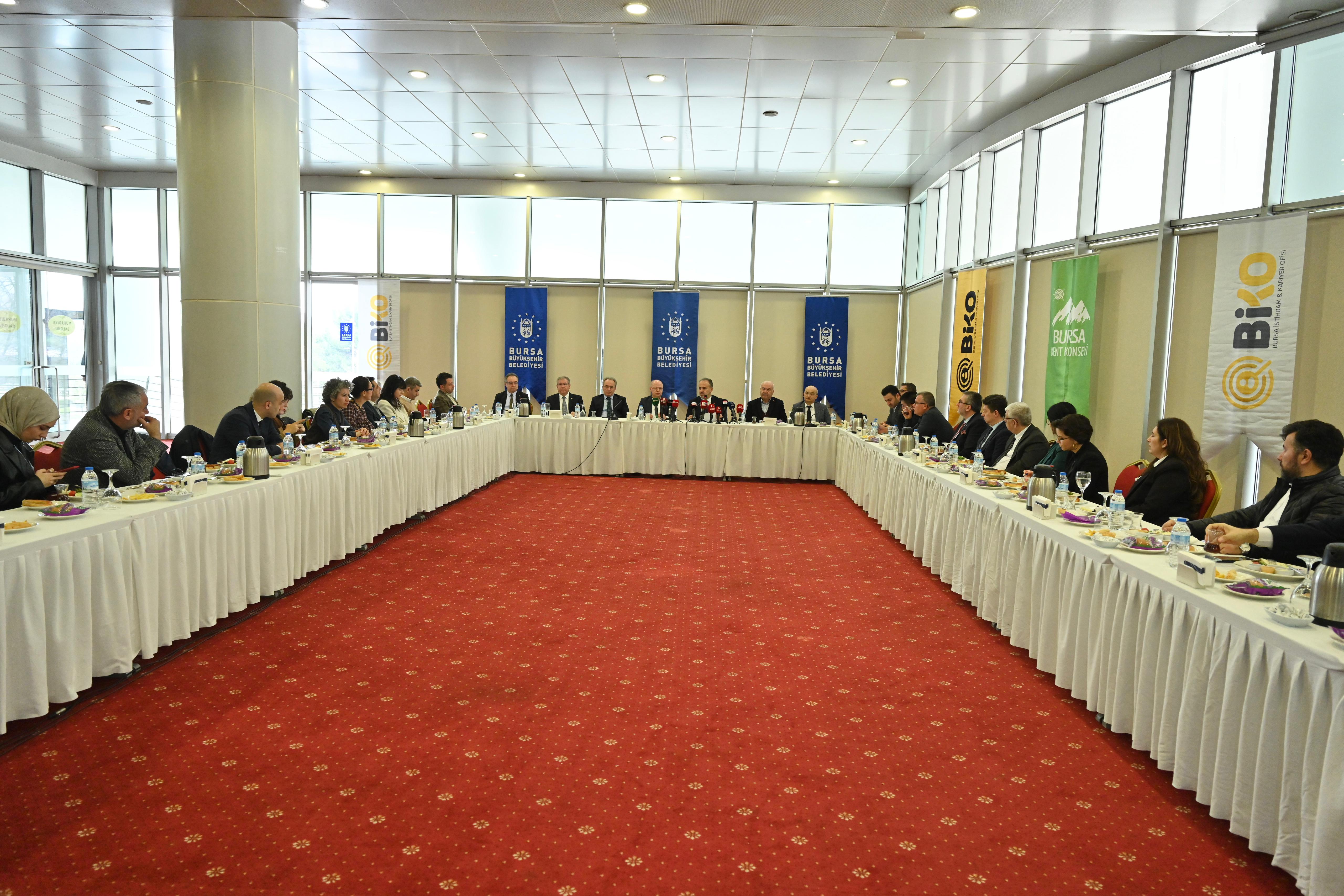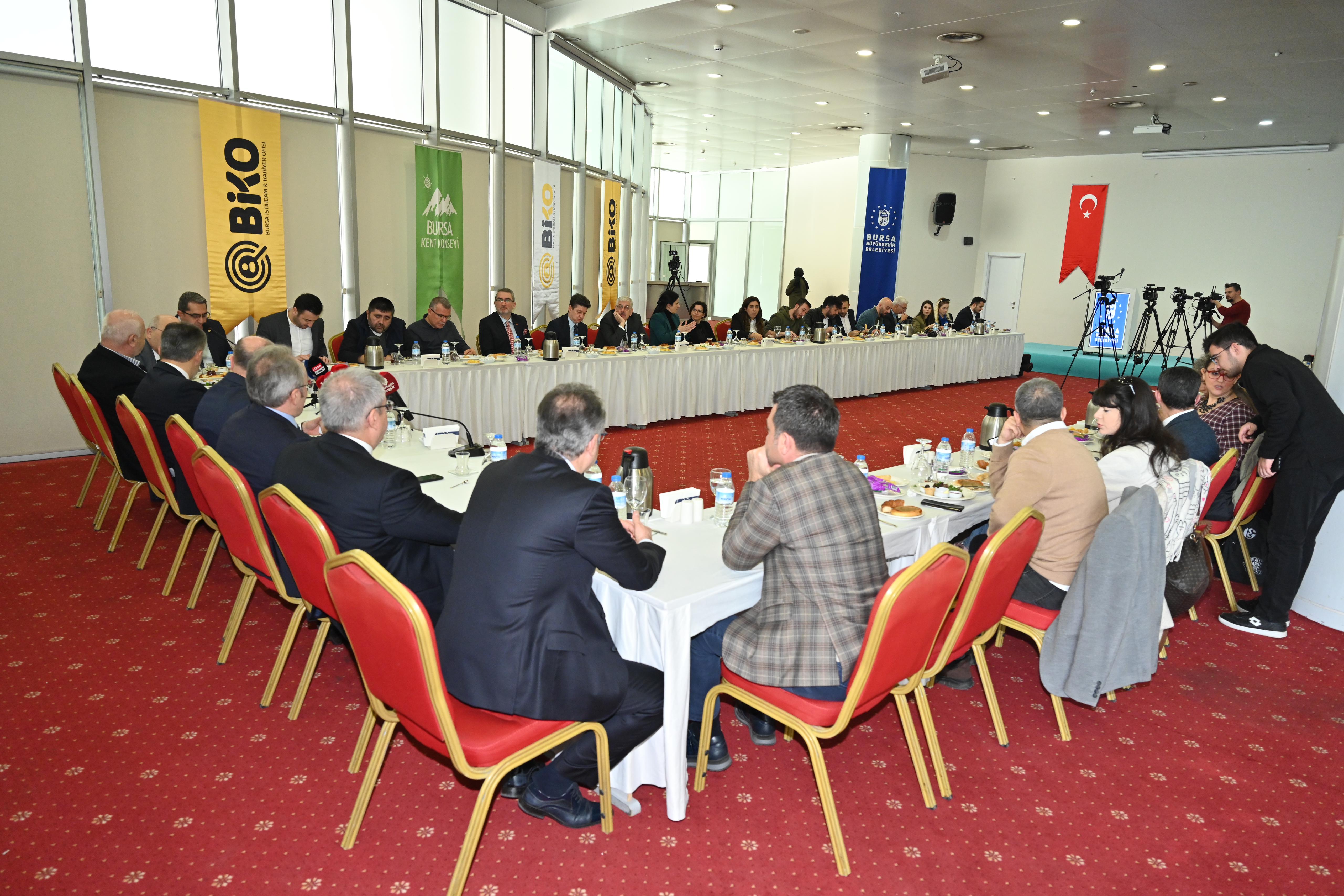 Bu yıl 7’ncisi gerçekleştirilecek Bursa İnsan Kaynakları ve İstihdam Buluşması’nın tanıtım toplantısı, Atatürk Kongre ve Kültür Merkezi’nde yapıldı. İl Milli Eğitim Müdürü Ahmet Alireisoğlu, İşkur Bursa Bölge Müdürü Feyzullah Eren Türkmen, BTSO Meclis Başkan Yardımcısı Metin Şenyurt, Bursa Kent Konseyi Başkanı Şevket Orhan ve AK Parti İl Başkanı Davut Gürkan'ın da katıldığı toplantıda konuşan Bursa Büyükşehir Belediye Başkanı Alinur Aktaş, işsizliğin sadece bireysel değil, toplumsal bir sorun olduğunu belirterek, istihdama katkı sunmayı amaçladıklarını söyledi. Bursa Büyükşehir Belediyesi olarak, kalkınma ve gelişme için istihdamının önemini çok iyi bildiklerini ifade eden Başkan Aktaş, “Bursa’mız, Türkiye'nin en önemli sanayi ve ticaret merkezlerinden biridir. Bu dinamik yapının bir sonucu olarak, şehrimizde her geçen gün yeni iş imkânları ortaya çıkmaktadır. İşte Bursa İnsan Kaynakları ve İstihdam Buluşması’yla bu iş imkânlarını iş arayanlarla buluşturarak şehrimizin istihdamına katkı sağlayacağız” dedi.