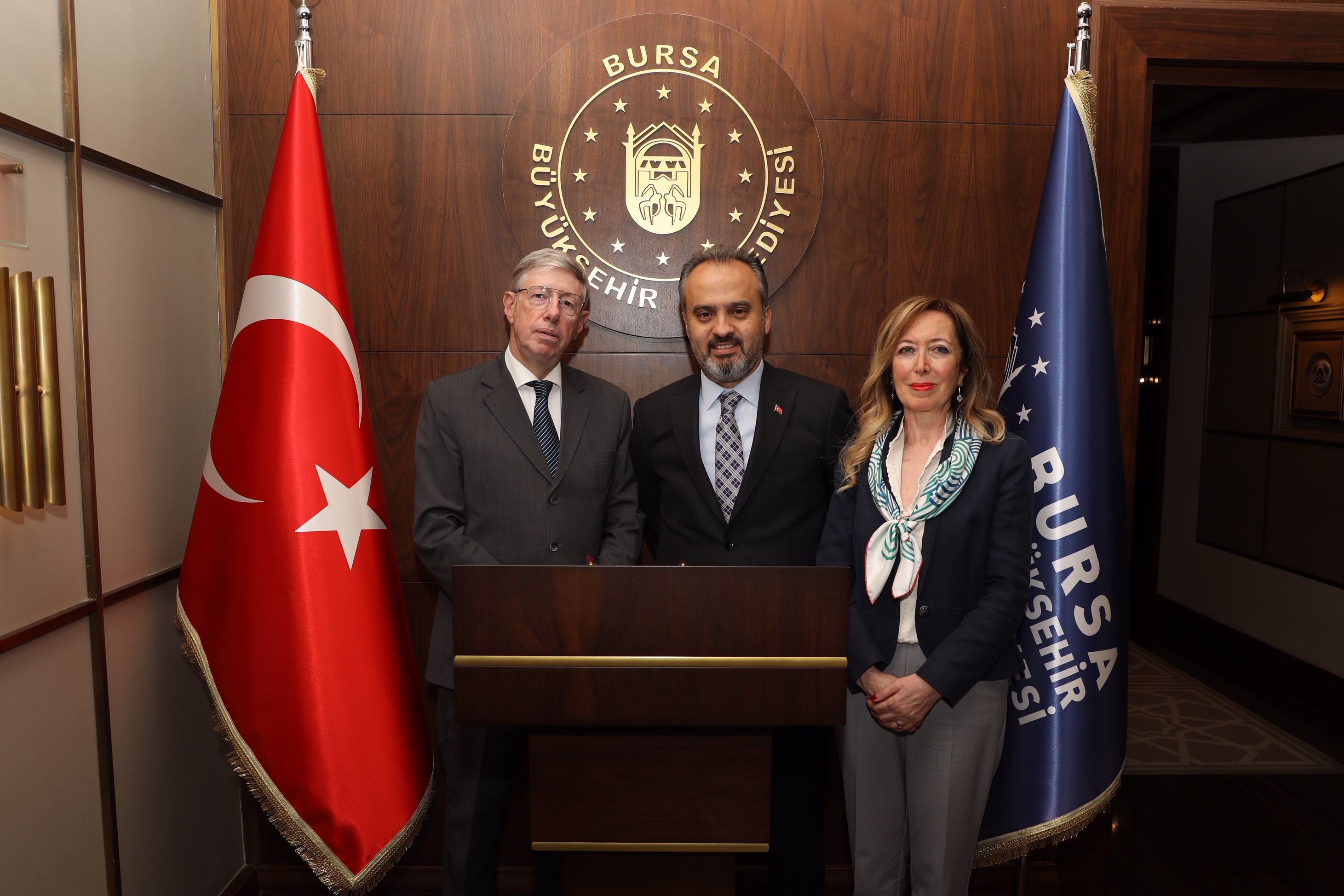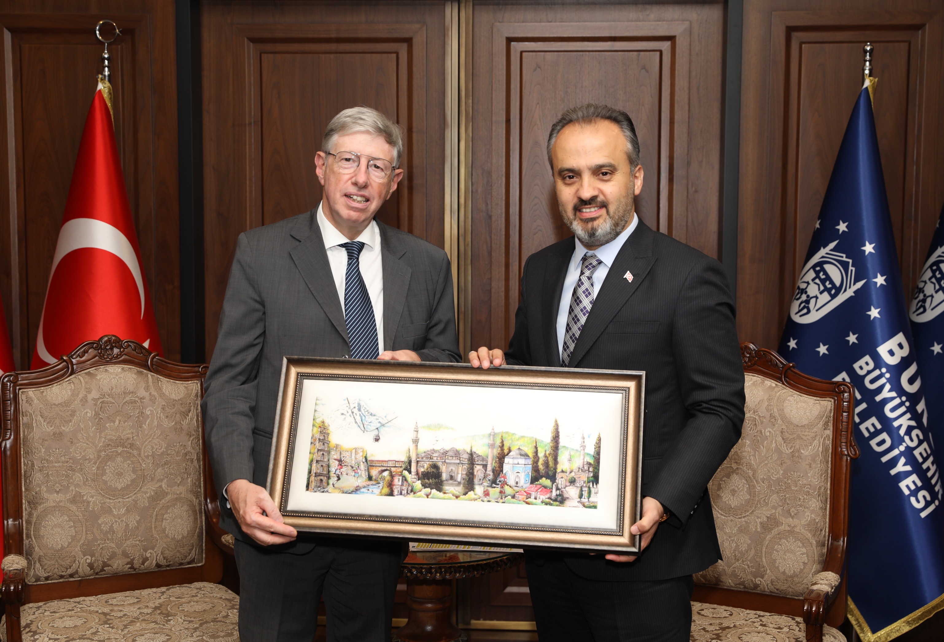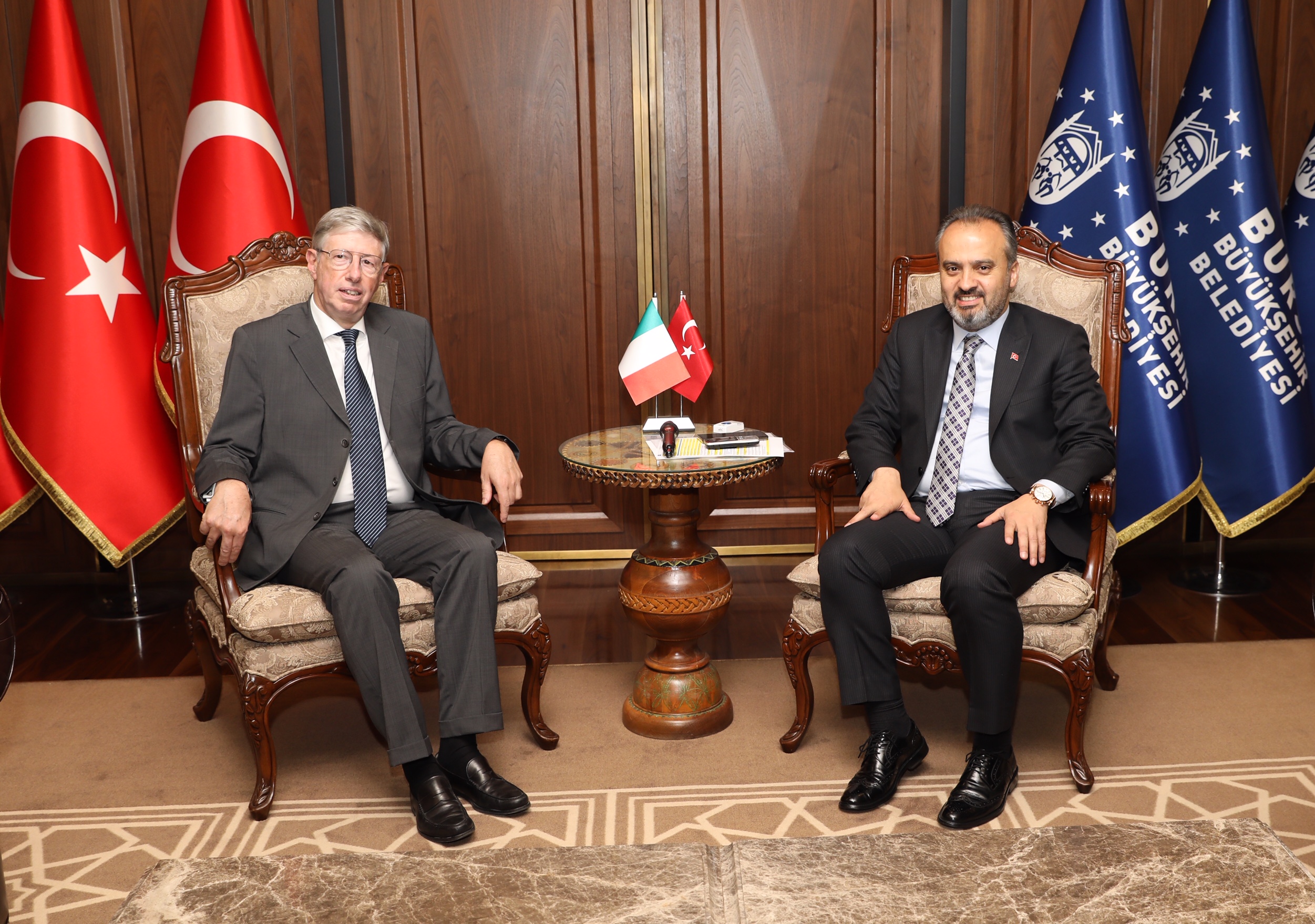 BURSA – Bursa Büyükşehir Belediye Başkanı Alinur Aktaş’ı ziyaret eden İtalya Türkiye Büyükelçisi Massimo Gaiani, iki ülke arasındaki ilişkilerin daha da gelişmesinden yana olduklarını söyledi.