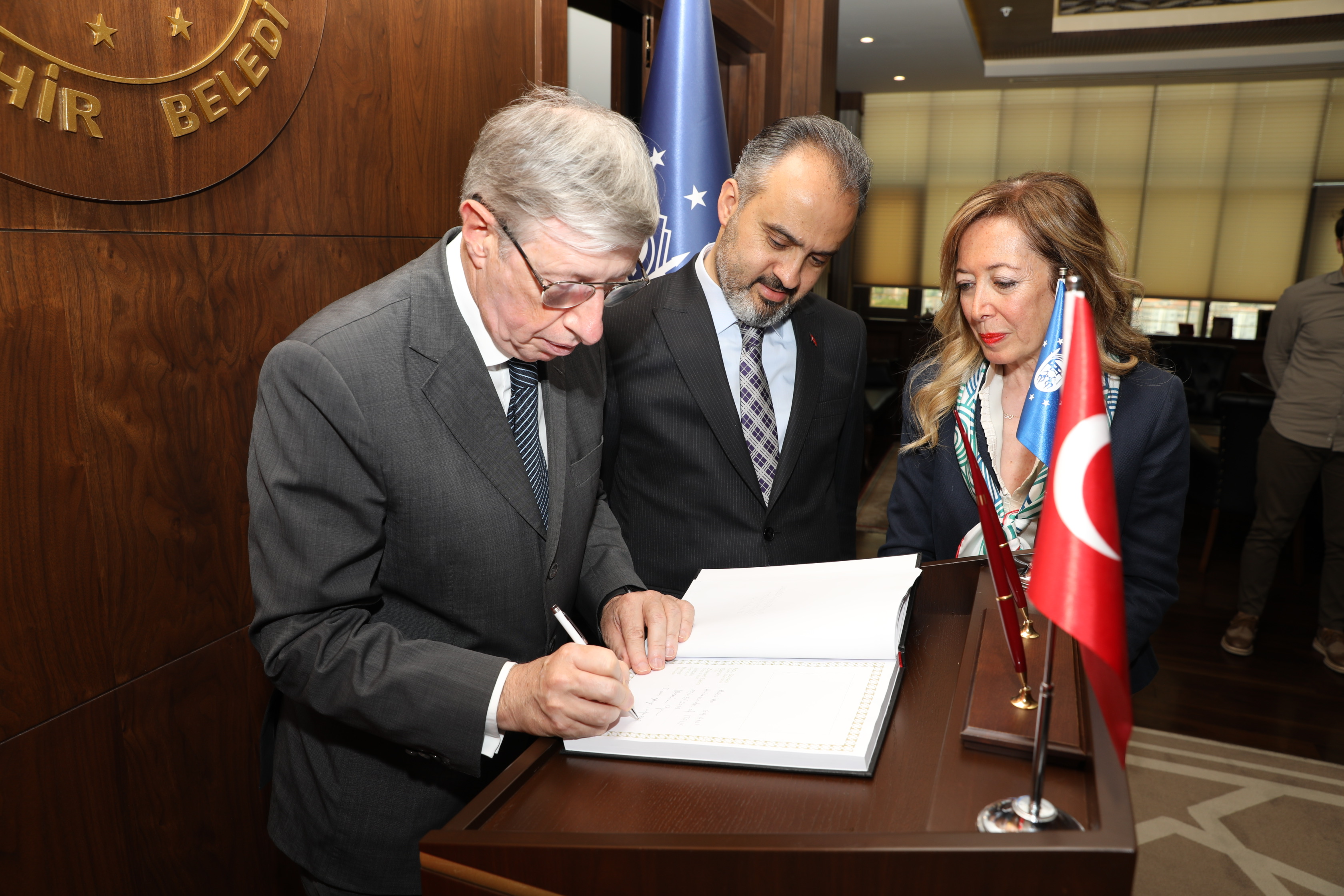 Bursa Büyükşehir Belediye Başkanı Alinur Aktaş, İtalya Türkiye Büyükelçisi Massimo Gaiani ve İtalya Bursa Fahri Konsolosu Oya İzmirli’yi Büyükşehir Belediyesi Başkanlık makamında ağırladı. Başkan Aktaş, Bursa’yı tanıttığı Büyükelçi Massimo Gaiani’nin ziyaretinden mutluluk duyduğunu ifade etti. İtalya’yı bildiğini ve orada daha önce fuarlara katıldığını anlatan Başkan Aktaş, İtalya’yı sıcak bir ülke olarak gördüğünü ve ilişkilerin geliştirilmesini desteklediğini ifade etti.