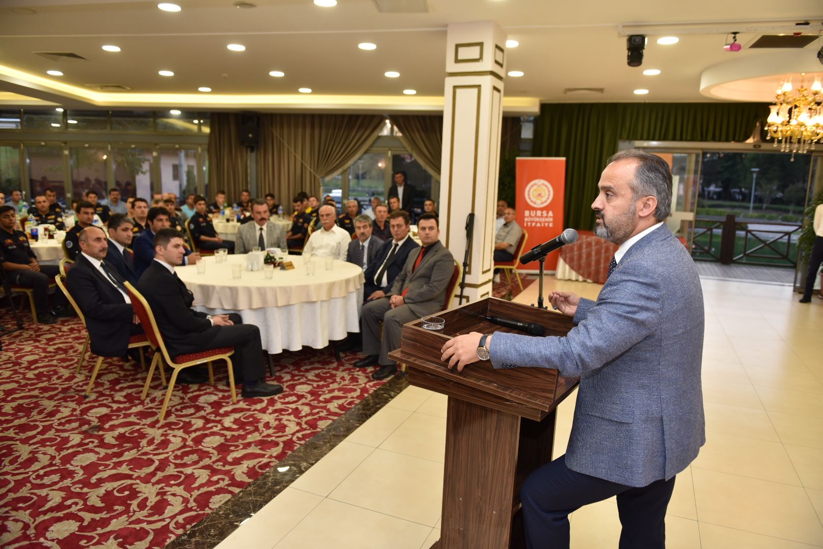Bursa Büyükşehir Belediye Başkanı Alinur Aktaş, İtfaiye Teşkilatı’nın kuruluşunun 304. kuruluş yıldönümü nedeniyle İtfaiye Dairesi Başkanlığı personeliyle Gölpark tesislerinde bir araya geldi. Programa, Genel Sekreter İsmail Yılmaz, Genel Sekreter Yardımcısı Ahmet Aka, İtfaiye Dairesi Başkanı Muhammed Emin Tarım, şube müdürleri, birim amirleri ve saha elemanları katıldı. İtfaiye Haftası’nın kutlu olmasını temenni eden Büyükşehir Belediye Başkanı Alinur Aktaş, çarkın dişlileri gibi herkesin bir görevi bulunduğunu, meselenin görevleri sağlıklı bir şekilde yerine getirmek olduğu söyledi. İtfaiye teşkilatını ayrı bir şekilde önemsediklerini belirten Başkan Alinur Aktaş, itfaiyecilerin insanların en zor anlarında yardımcı olarak çok hayır dua aldıklarını ifade etti.