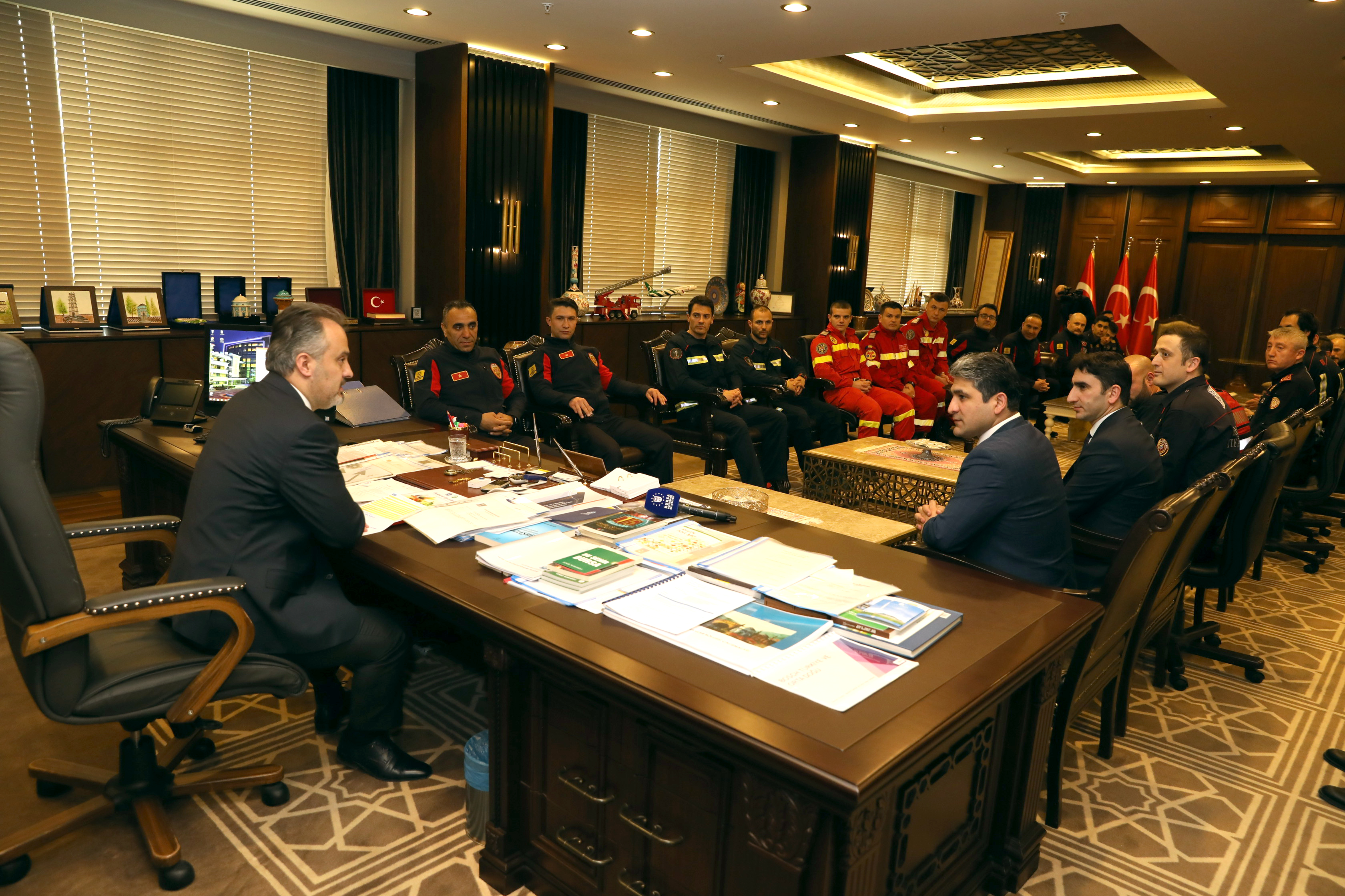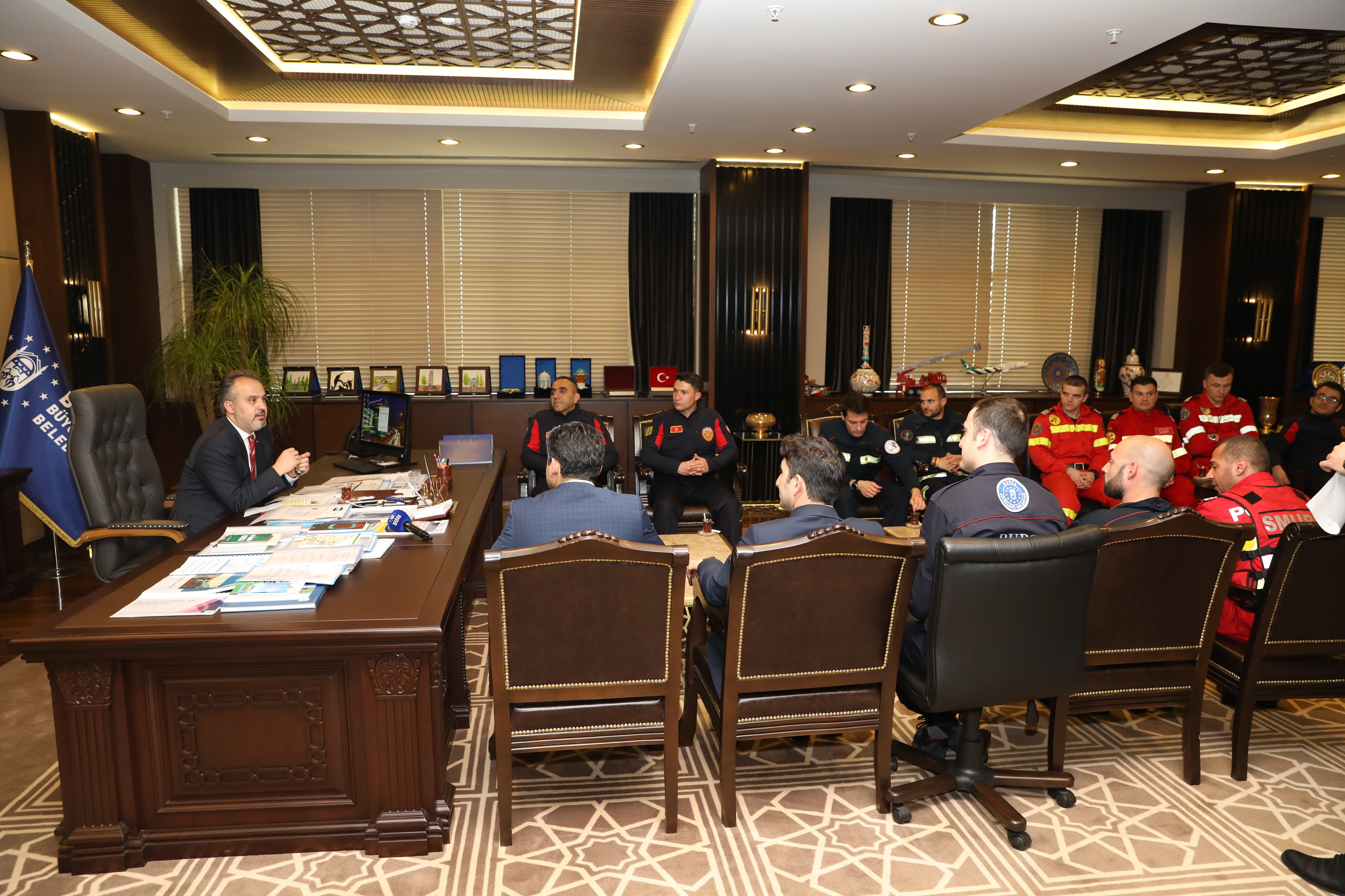 İtfaiye Daire Başkanlığı tarafından hazırlanan ve gönüllü-aktif itfaiyecilerin mesleki eğitimlerini dijital ortam üzerinden yapmalarına imkan sağlayan Digi-FIRE projesinin ulusal ve uluslararası bileşenleri, Bursa programında ilk olarak Büyükşehir Belediye Başkanı Alinur Aktaş’ı ziyaret etti. Bursa, Konya, İspanya ve Romanya’dan projeye katılan itfaiye erlerinin de katıldığı toplantıda belediye hizmetleri içinde en hayati önem taşıyan itfaiyecilik alanında uluslararası bilgi ve tecrübe paylaşımlarının önemine vurgu yapıldı.