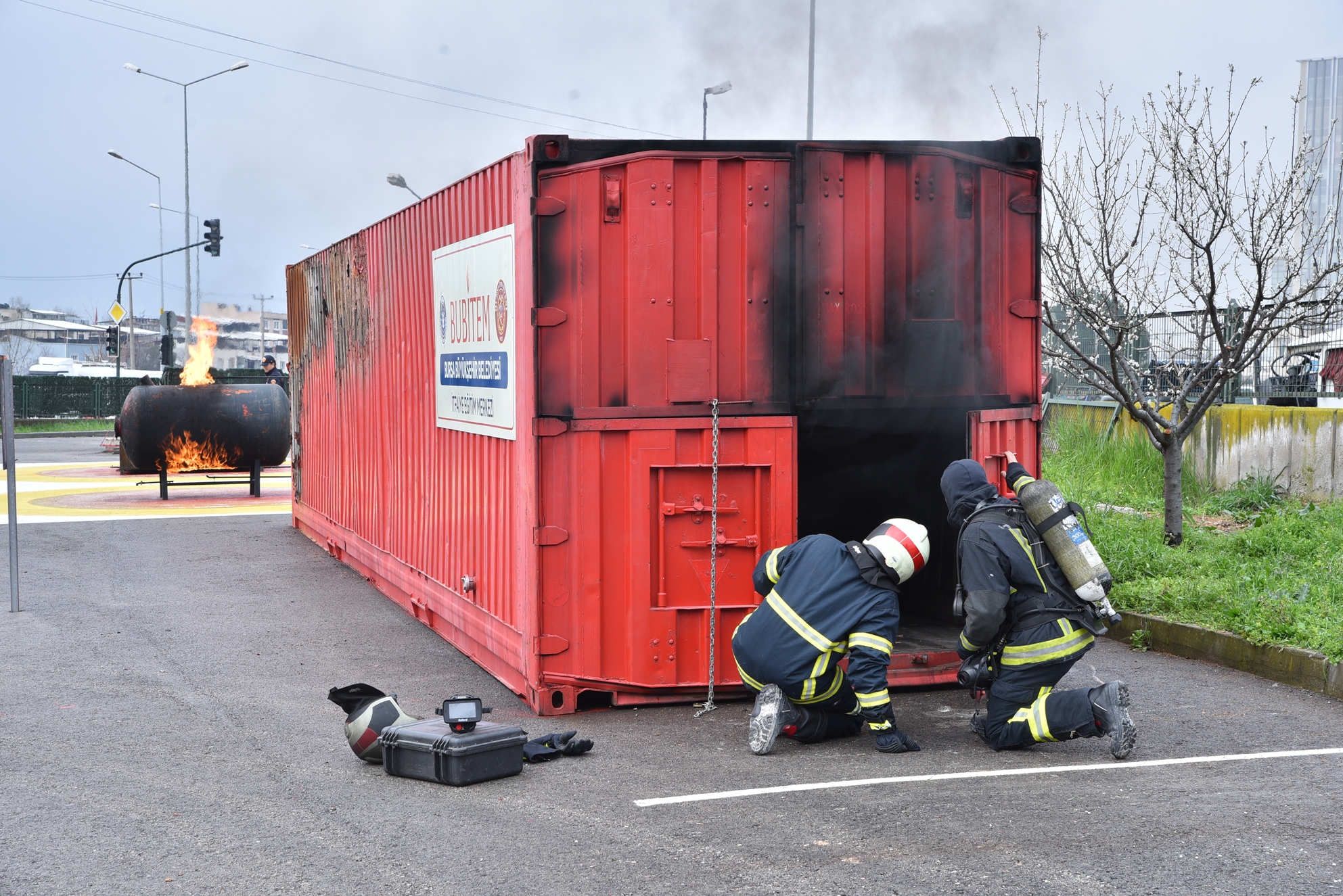 İtfaiye Daire Başkanlığı tarafından hazırlanan ve gönüllü-aktif itfaiyecilerin mesleki eğitimlerini dijital ortam üzerinden yapmalarına imkan sağlayan Digi-FIRE projesinin ulusal ve uluslararası bileşenleri, Bursa'da bir araya geldi. Bursa, Konya, İspanya ve Romanya’dan projeye katılan itfaiye erlerinin 5 gün süren eğitim programı, Büyükşehir Belediyesi'nin İtfaiye Eğitim Merkezi'ndeki ortak tatbikatla sona erdi. Tatbikatı, Büyükşehir Belediyesi Genel Sekreteri Ulaş Akhan da İtfaiye Daire Başkanı Muhammed Emin Tarım ile birlikte izledi.