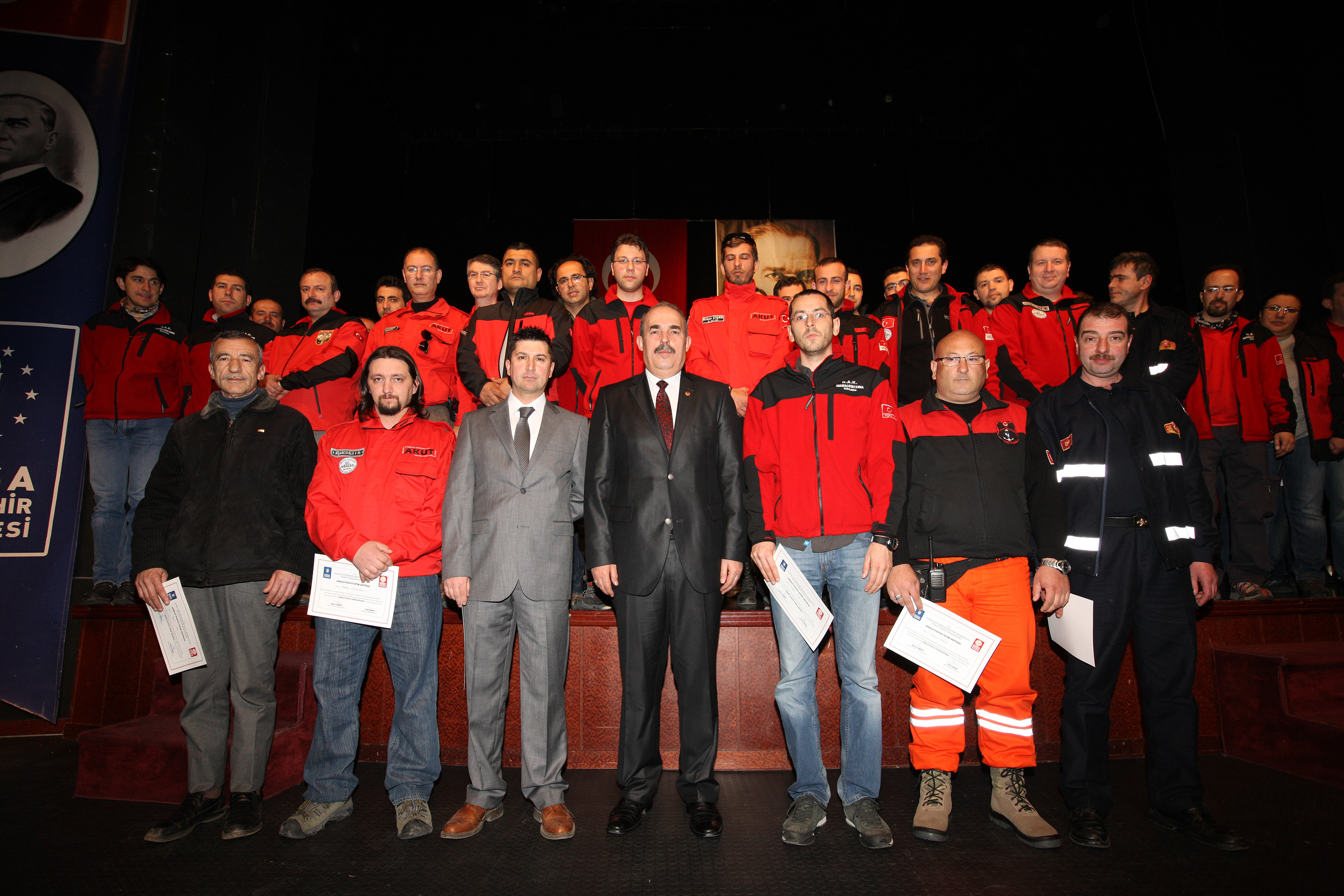 Konuşmaların ardından eğitimlerini başarıyla tamamlayan 102 gönüllü itfaiyeciye sertifikaları verildi.