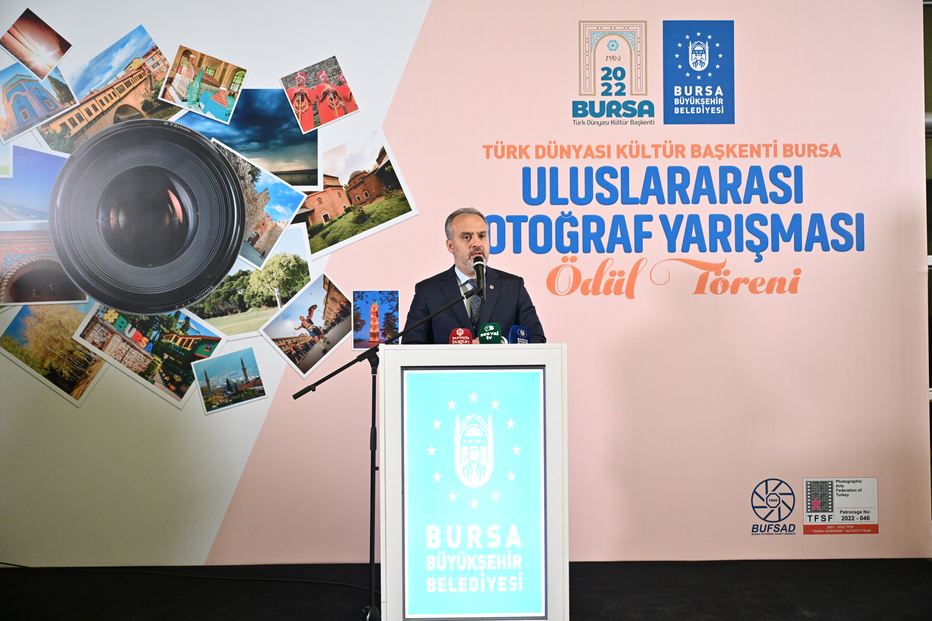 Uluslararası Fotoğraf Yarışması’nın ödül töreninde konuşan Büyükşehir Belediye Başkanı Alinur Aktaş, Bursa’yı Türk dünyasının kalbi yaptıklarını, uzun yıllar hafızalarda kalacak güzel işlere imza attıklarını kaydetti. Başkan Aktaş, “Farklı coğrafyalardaki Türklerin kardeşliğini güçlendirmek amacıyla güzel etkinlikler yaptık. Bursa’mızı tanıtma fırsatını bulduk. Bu sene Türk Dünyası Kültür Başkenti olarak gerçekleştirdiğimiz fotoğraf yarışmamız da sonuçlandı. Birbirinden kıymetli eserlerin geldiği yarışmamıza katılan tüm fotoğraf gönüllülerine teşekkür ediyorum. Ödül kazanan katılımcılarımızı tebrik ediyorum. Artık Türk Dünyası Kültür Başkenti unvanımız, can Azerbaycan’ımıza, Şuşa’ya gidiyor. Azerbaycan’a destek vereceğiz ve bu birliktelik artarak devam edecek” dedi.