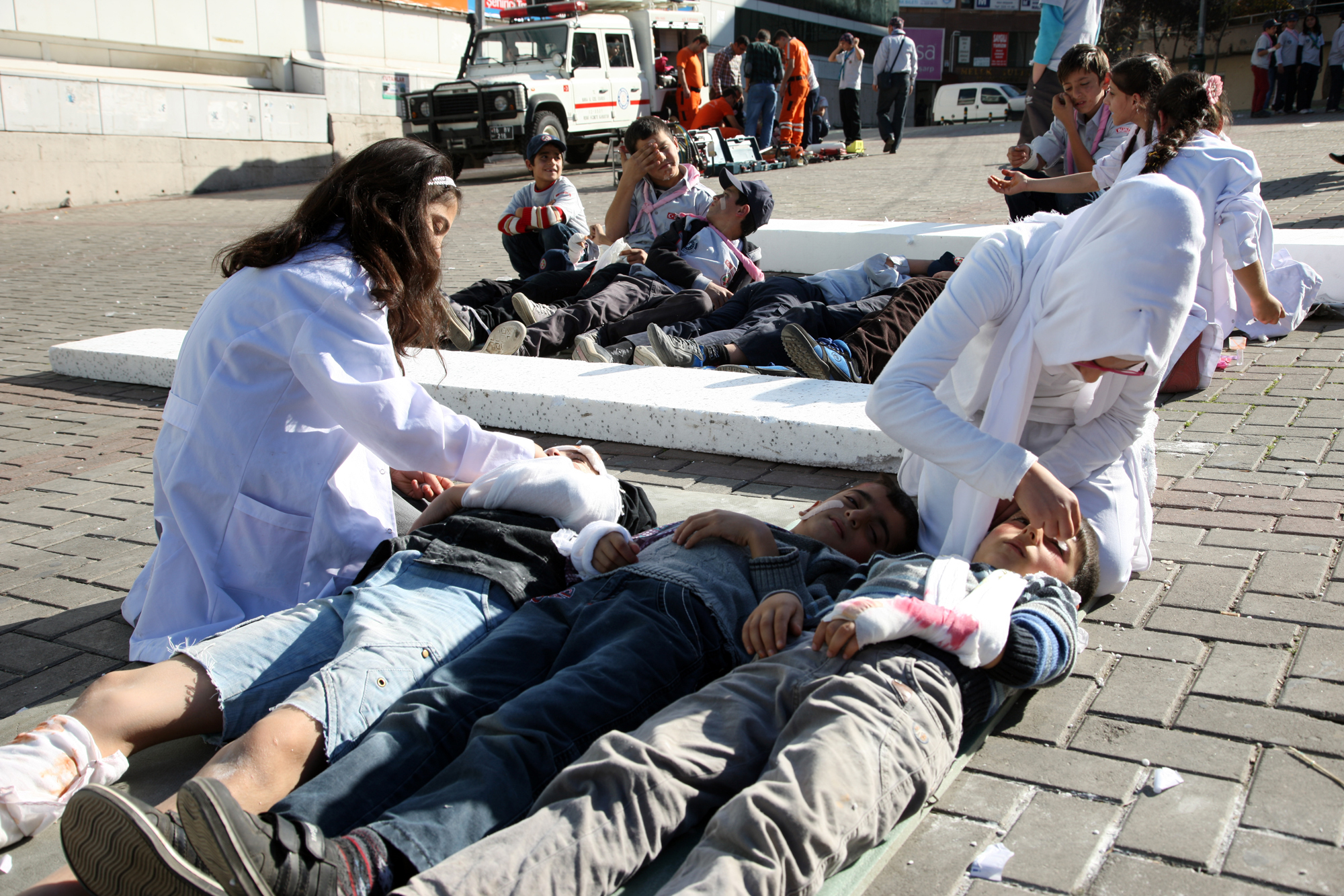 yaralanmış kişileri canlandıran izcilerden bir kısmı da doktor, hemşire, arama