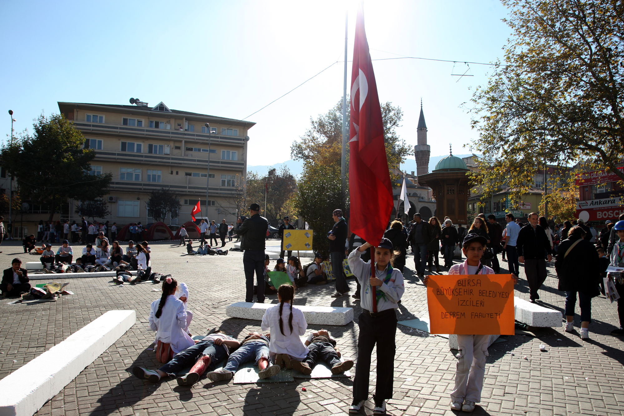 BURSA – Büyükşehir Belediyespor Kulübü bünyesinde çalışmalarını sürdüren izciler, 23 Ekim Van ve 12 Kasım Düzce depremlerine dikkati çekmek amacıyla bir tiyatro gösterisi sahneledi.